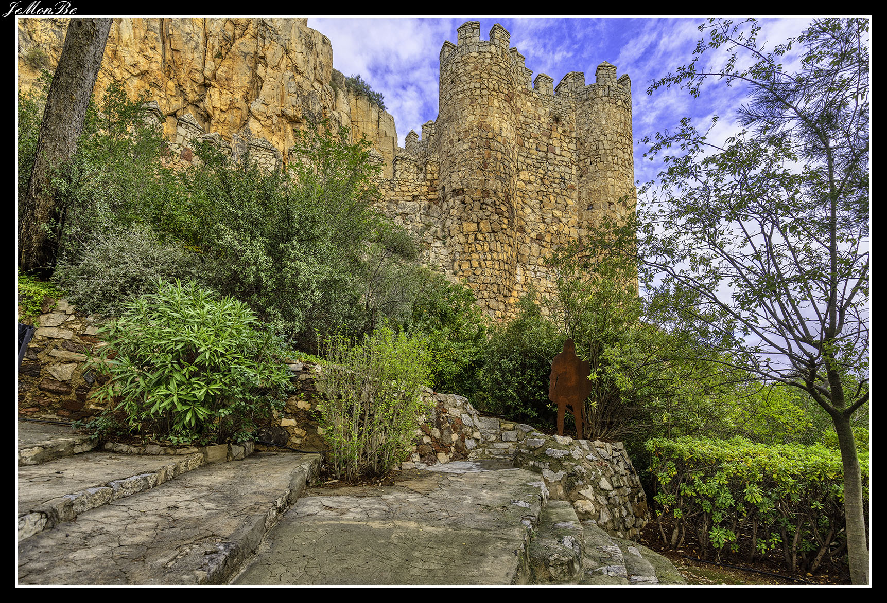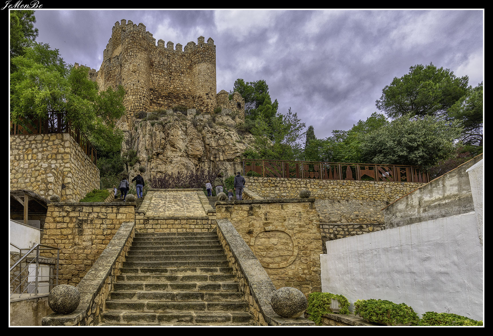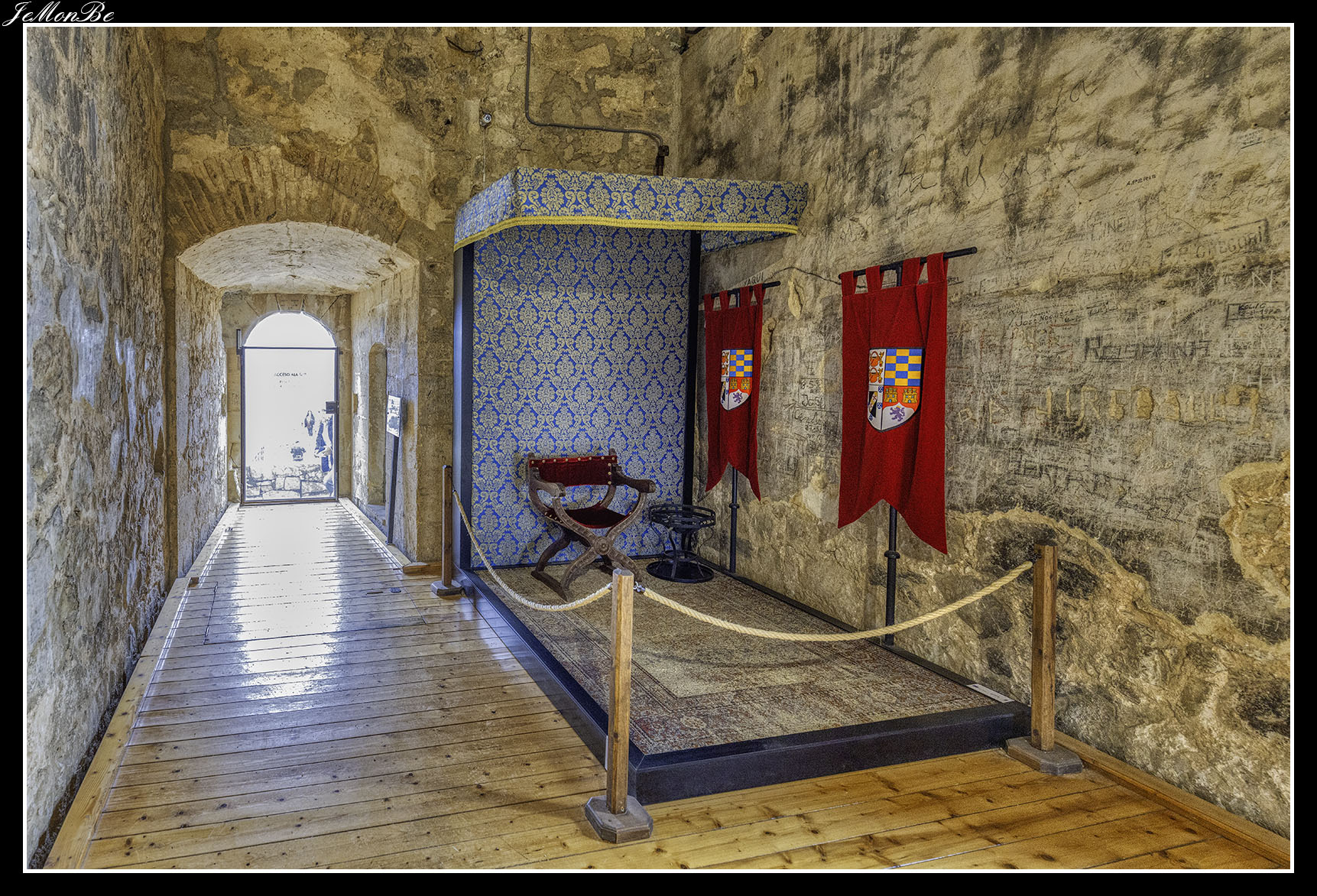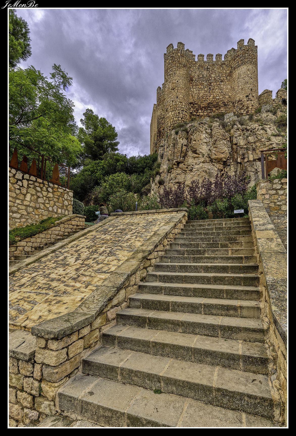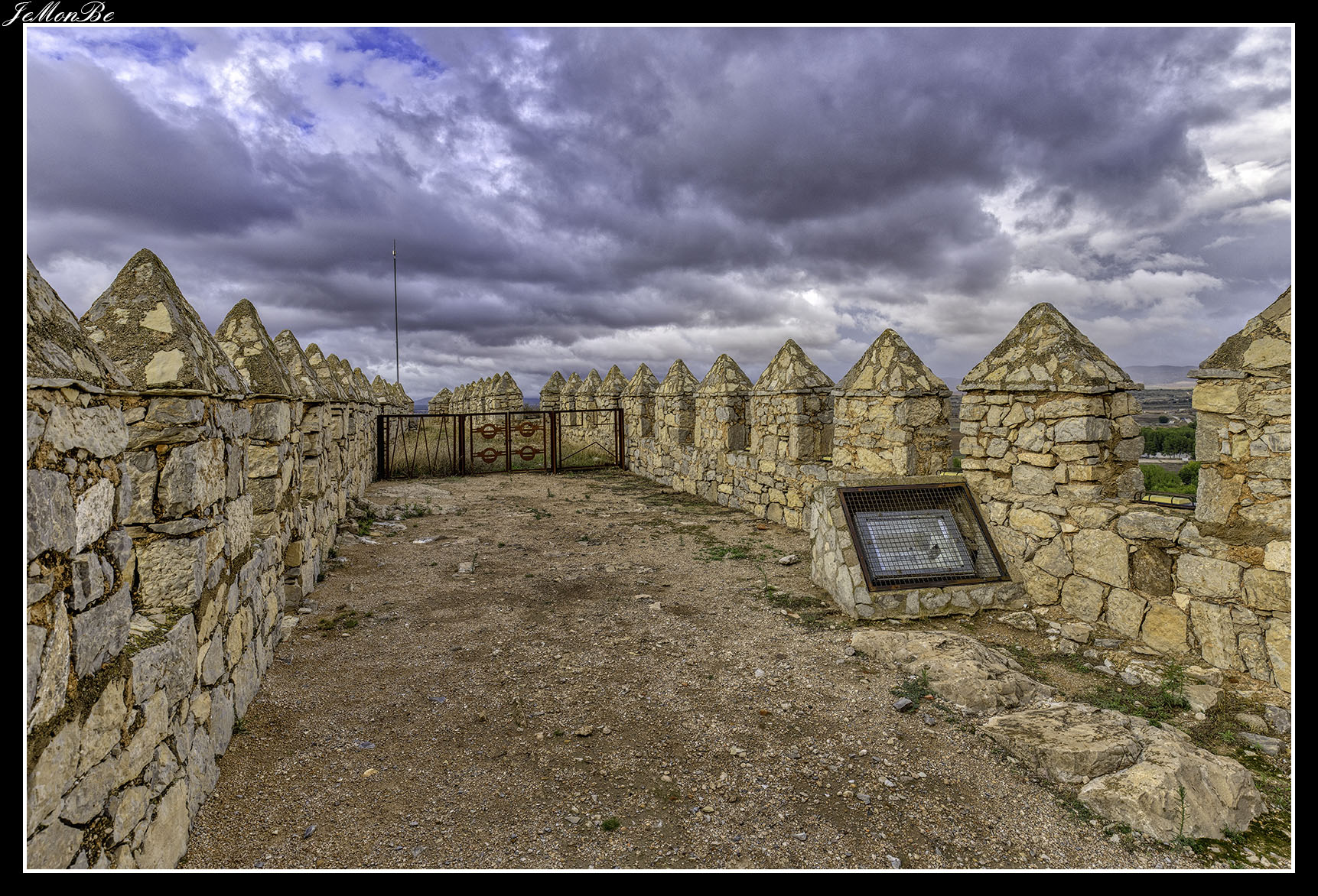 Cuando entramos estaremos en el patio de armas, que era una zona reservada para los artesanos y los almacenes. Desde este patio se accede a las distintas partes de la fortaleza, restos de la zona palaciega de la antigua fortaleza árabe, la puerta norte por donde subían los carros, las troneras para las armas de fuego y el acceso a las murallas que permitían la defensa.