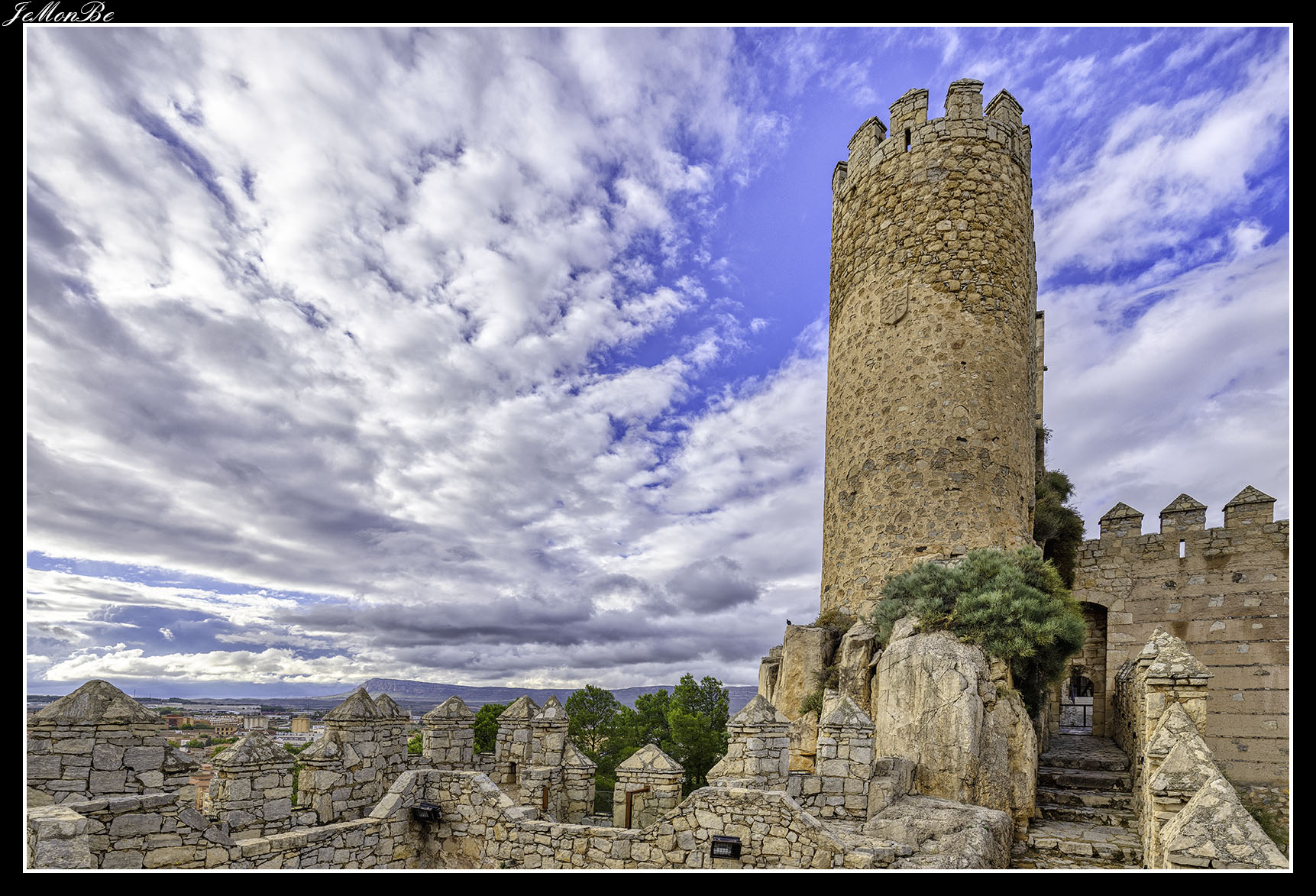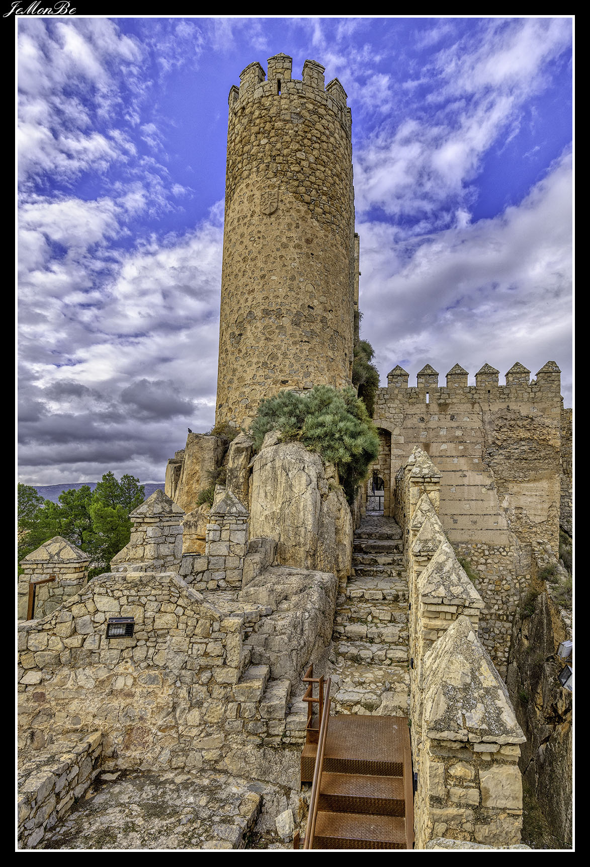 Escalera de caracol de ojo abierto en la torre del Homenaje del castillo de Almansa.