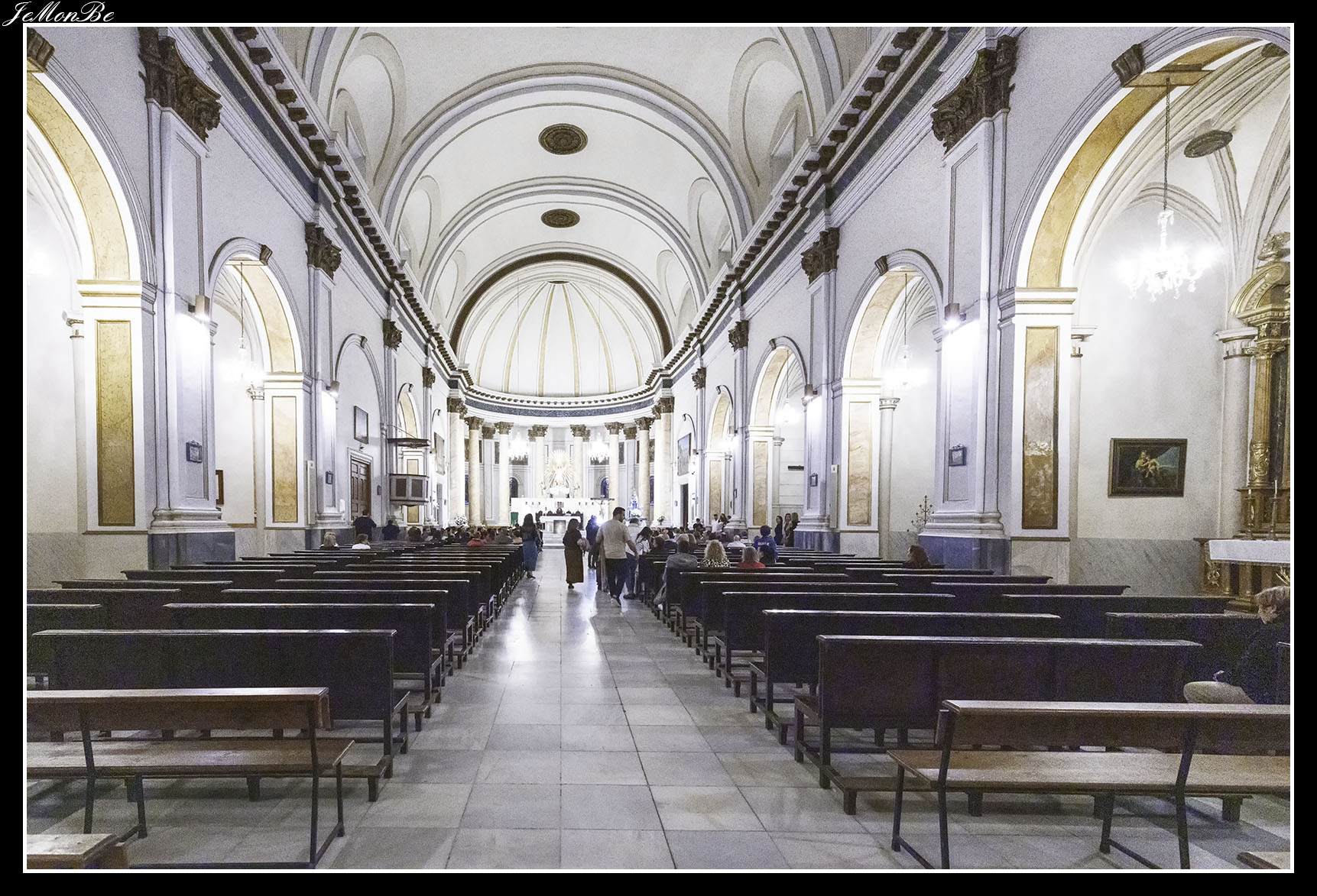 El templo consta de una sola nave, con capillas laterales y cubierta con bóveda de cañón. La portada principal, se encuentra alojada en un arco de triunfo de un clasicismo austero y el vano de entrada está alojado en un arco de medio punto, enmarcado por parejas de columnas dóricas sobre pedestales. En un lateral se alza una única torre de ladrillo visto, barroca, de la segunda mitad del siglo XVIII.
