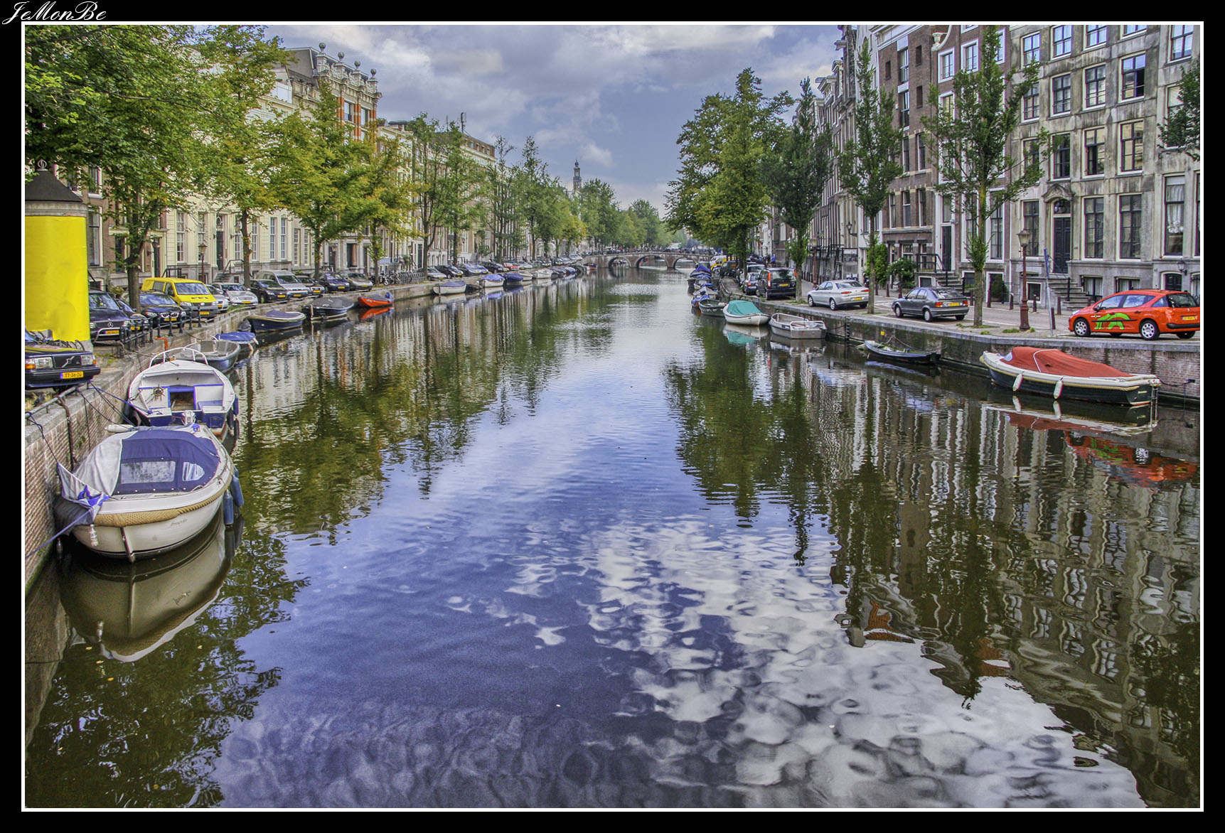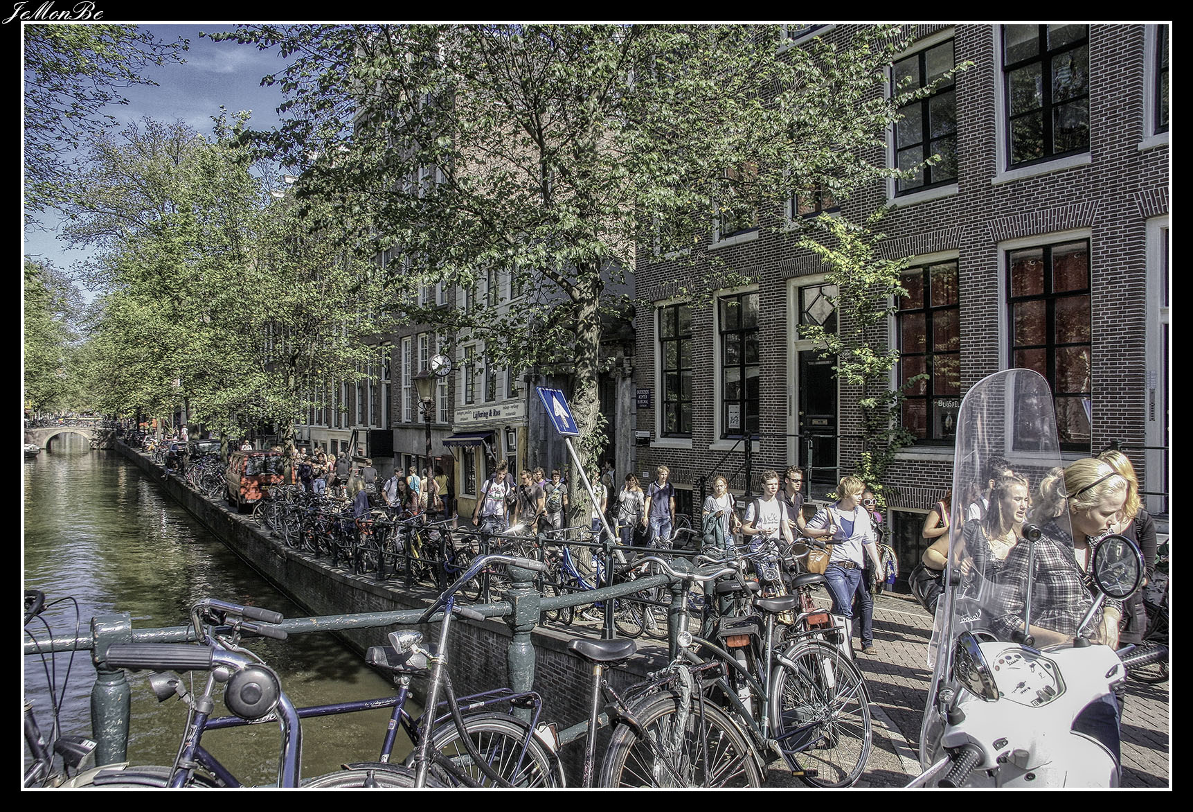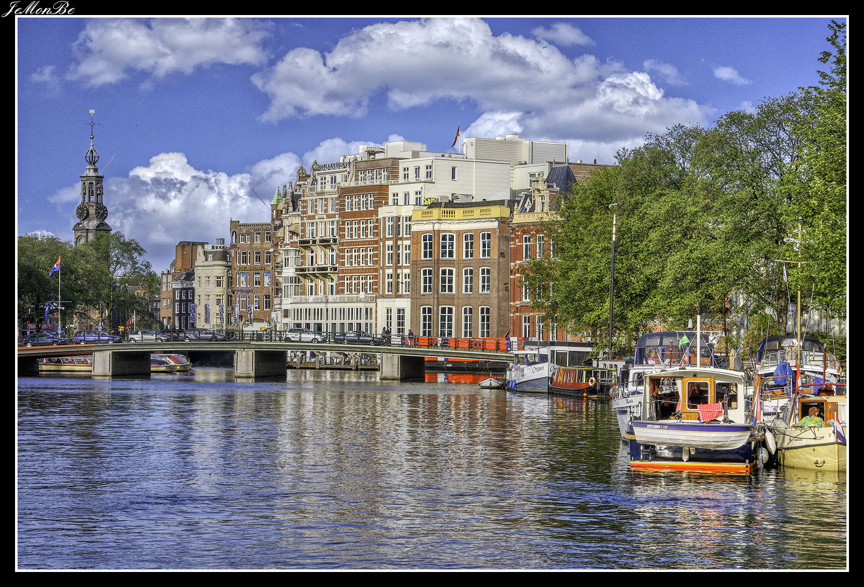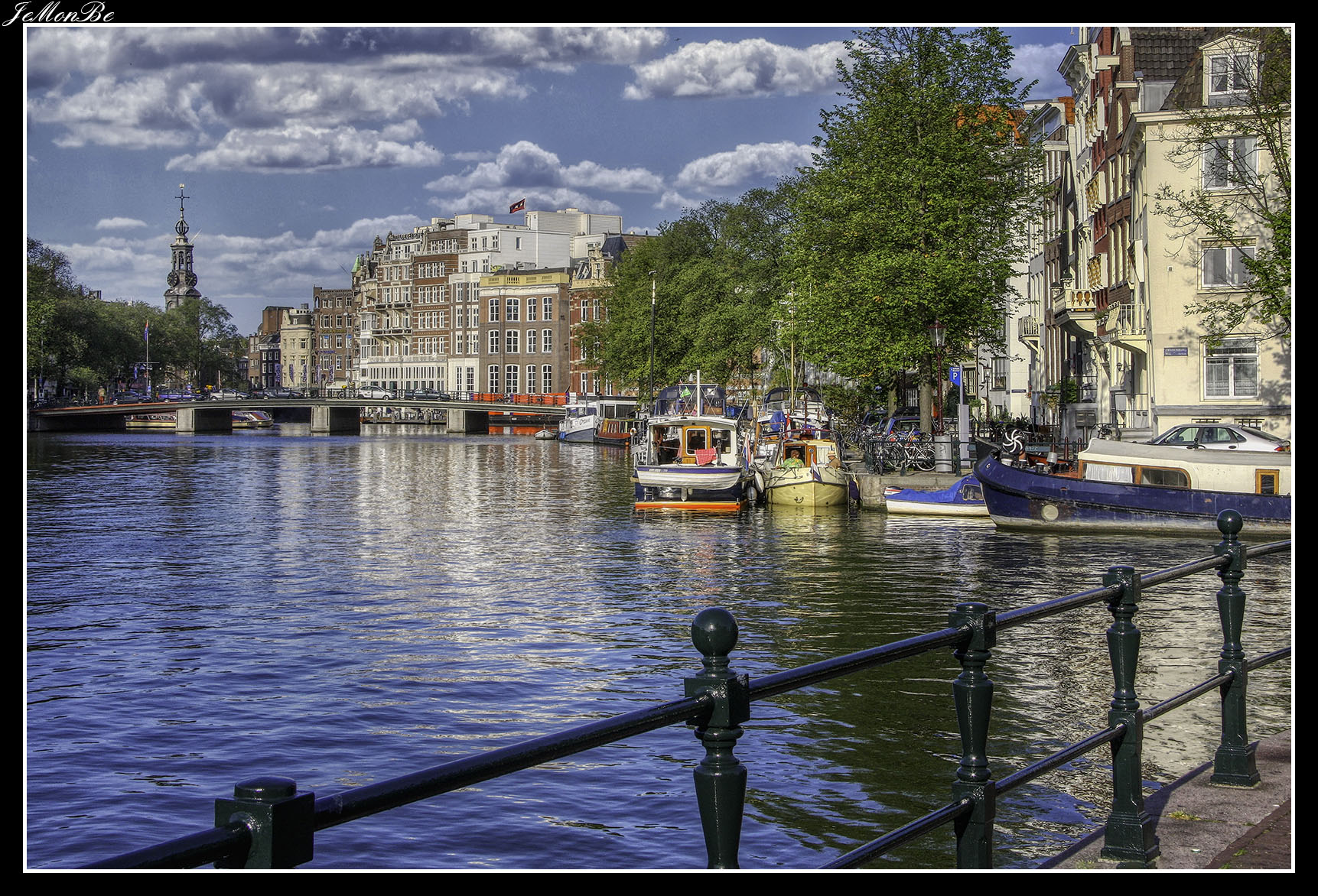El Singel es el canal que rodeaba la ciudad en la Edad Media y sirvió como foso hasta 1585, cuando la ciudad se extendió más allá del canal y este pasó a ser la división entre la ciudad medieval y las zonas nuevas. Hoy en día es el canal más cercano al centro de la red semicircular de canales concéntricos. Al fondo vemos la Torre de la Moneda.