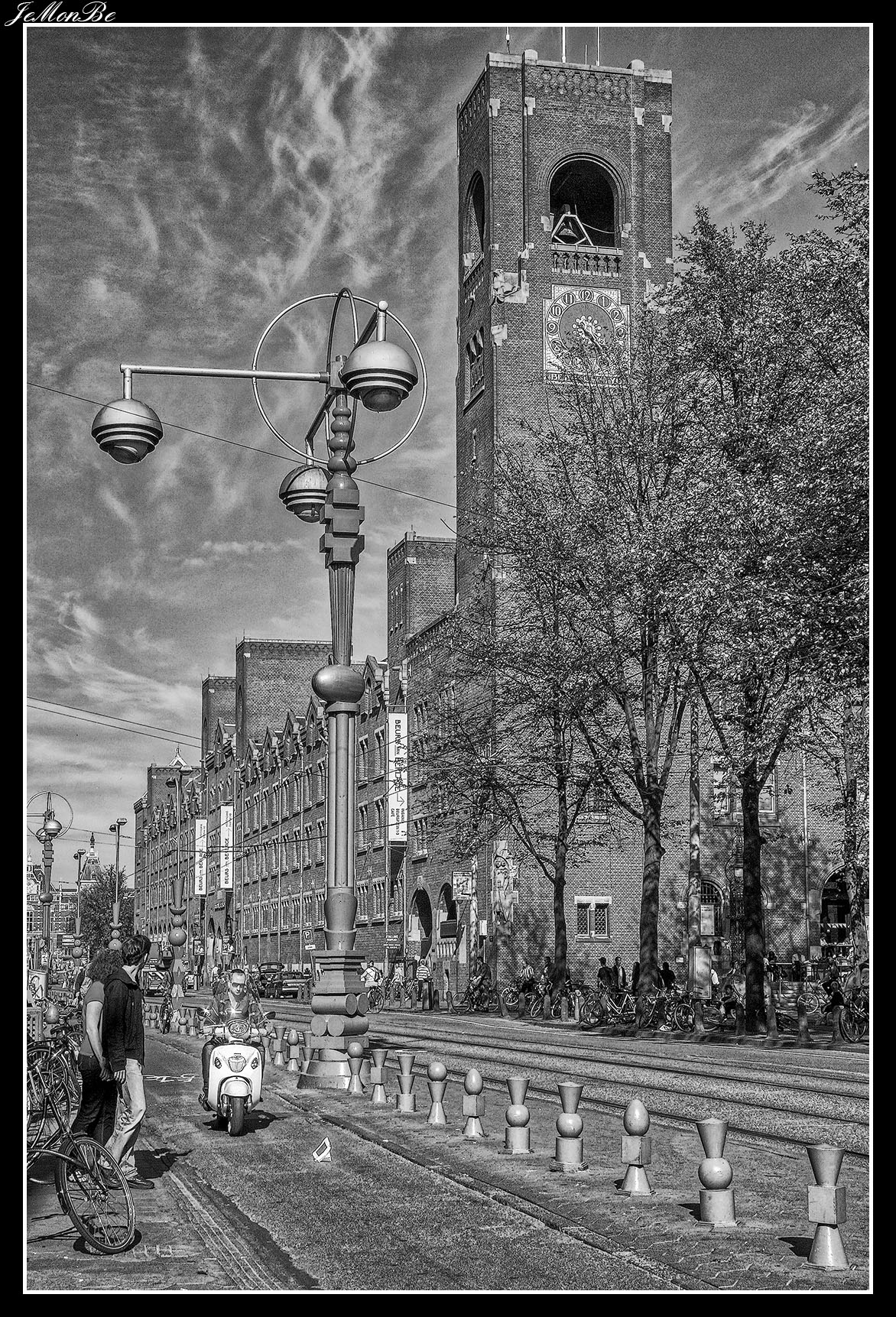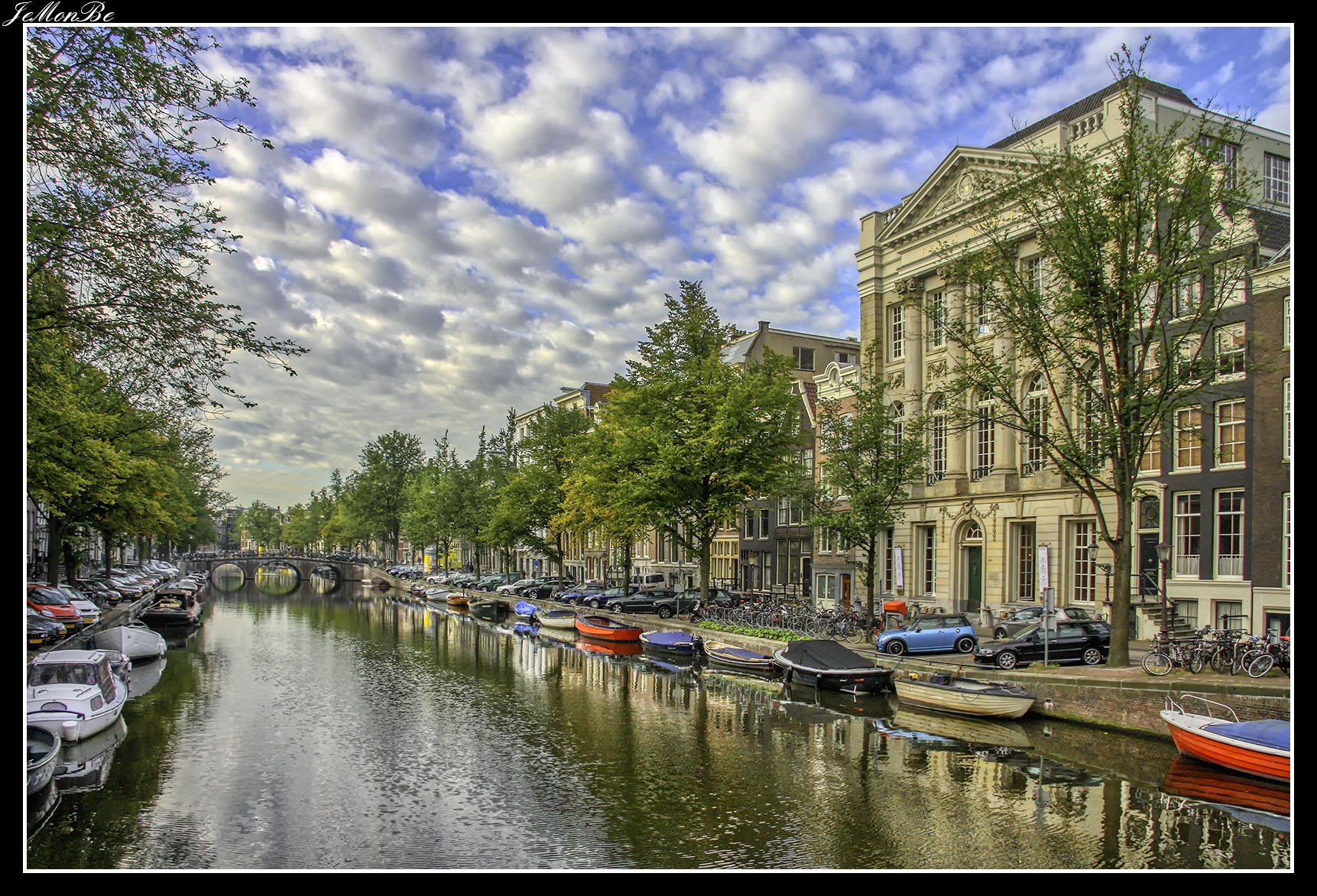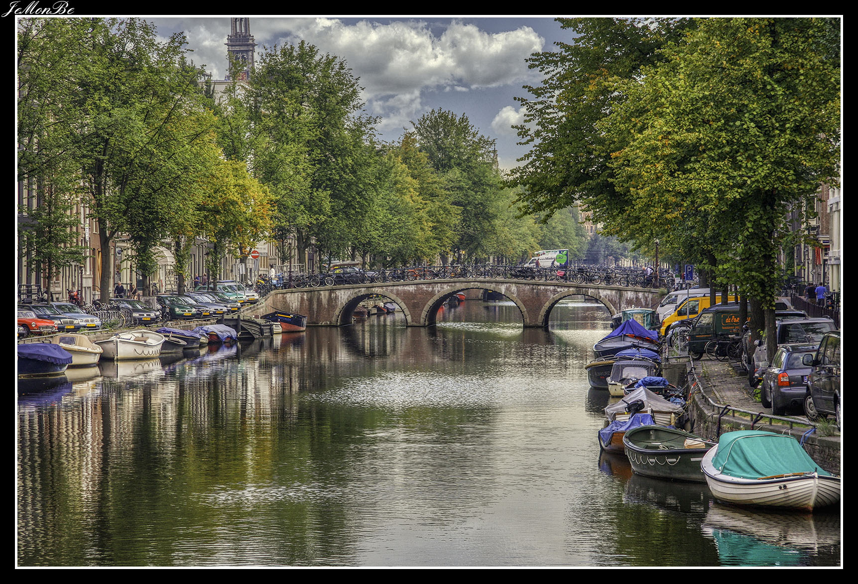 El Singel es el canal que rodeaba la ciudad en la Edad Media y sirvió como foso hasta 1585, cuando la ciudad se extendió más allá del canal y este pasó a ser la división entre la ciudad medieval y las zonas nuevas. Hoy en día es el canal más cercano al centro de la red semicircular de canales concéntricos. Al fondo vemos la Torre de la Moneda.