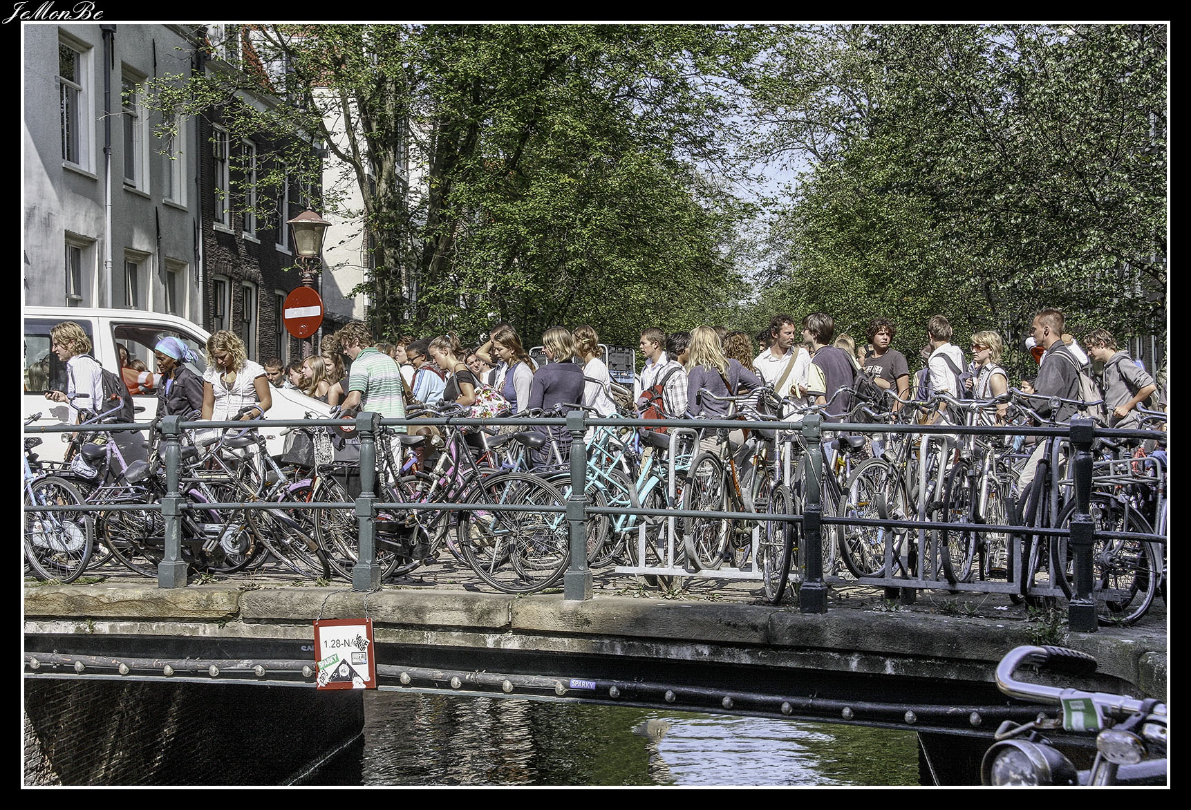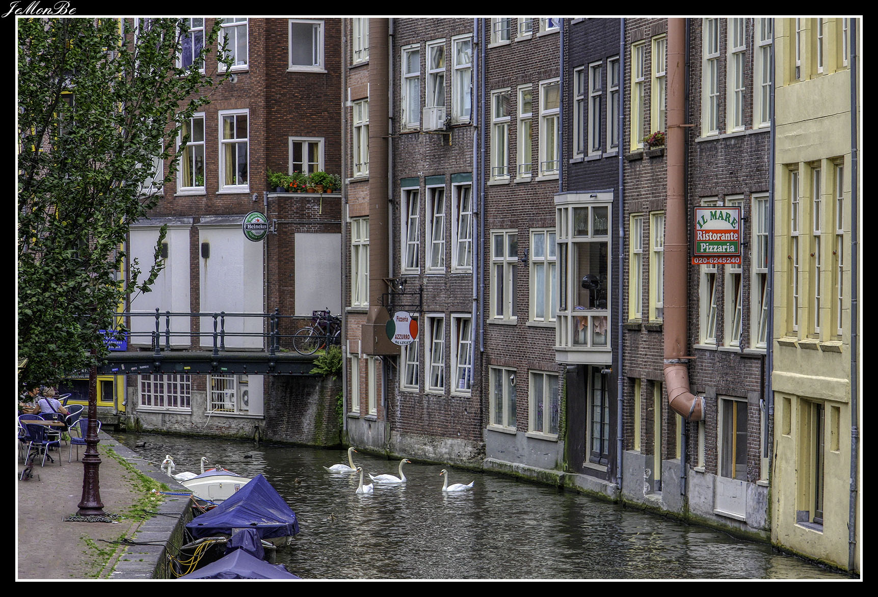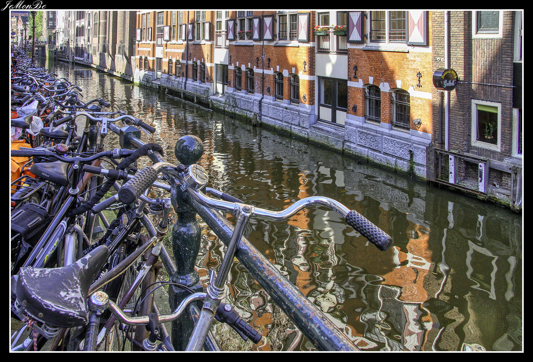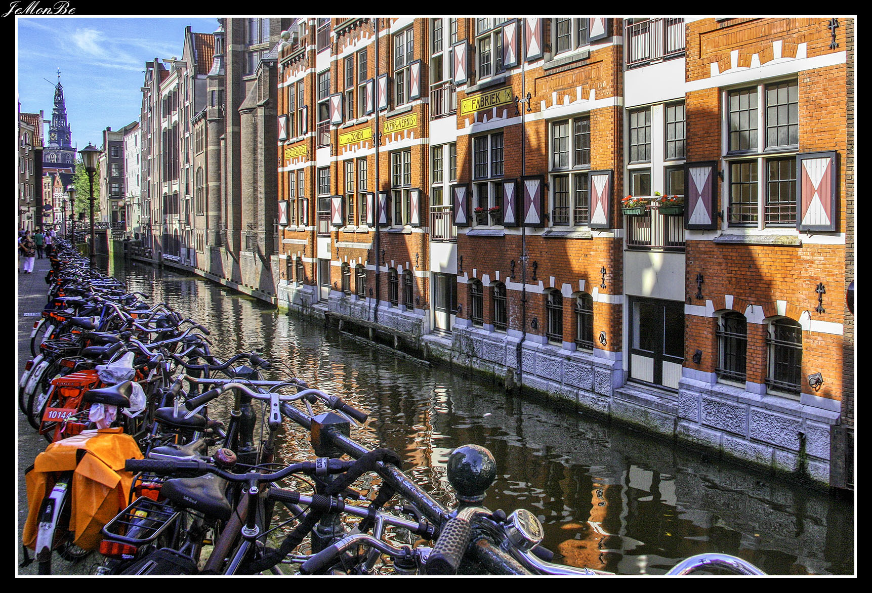 El Singel es el canal que rodeaba la ciudad en la Edad Media y sirvió como foso hasta 1585, cuando la ciudad se extendió más allá del canal y este pasó a ser la división entre la ciudad medieval y las zonas nuevas. Hoy en día es el canal más cercano al centro de la red semicircular de canales concéntricos. Al fondo vemos la Torre de la Moneda.