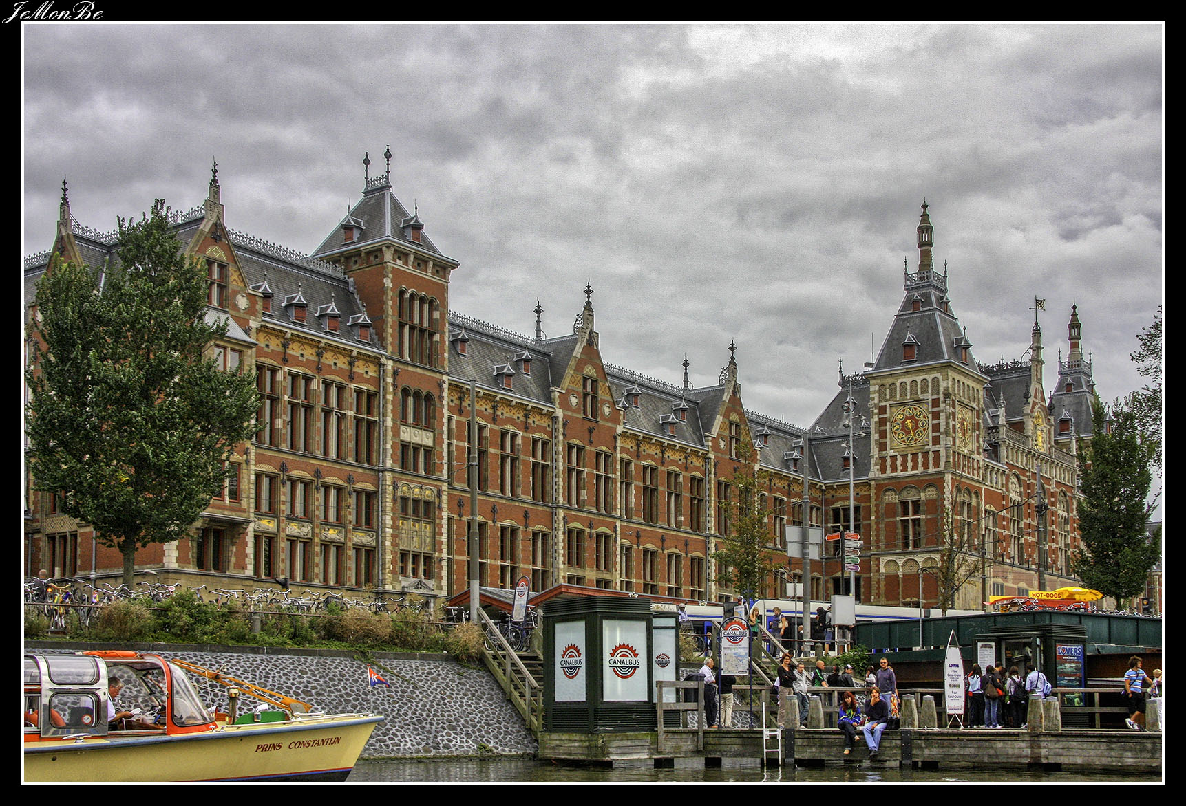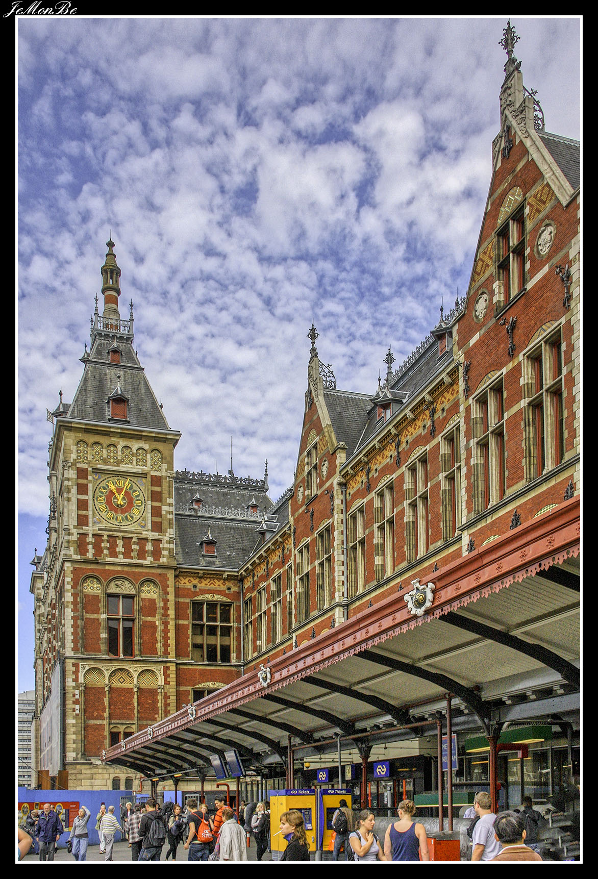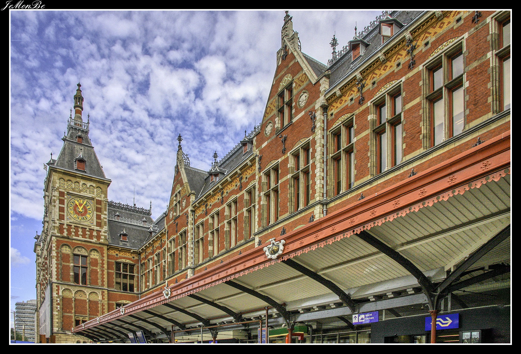 La Estación Central fue diseñada por el arquitecto Pierre Cuypers y construida entre 1881 y 1889. El estilo de la estación es una mezcla de neogótico y neorrenacentista, un estilo también conocido como neorrenacimiento holandés. La estación fusiona elementos del gótico (visible en sus torres y siluetas) con relieves y adornos, en línea con el estilo renacentista. Se utilizaron ladrillos de fabricación holandesa, haciendo un guiño a la arquitectura tradicional de los Países Bajos del siglo XVII.