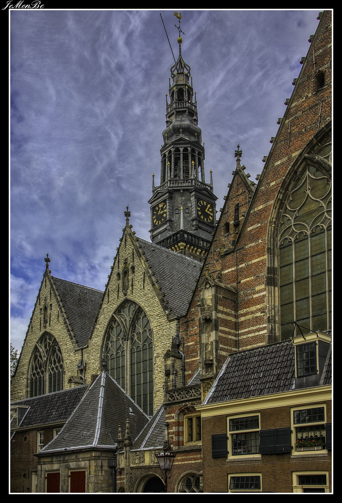La Oude Kerk (Iglesia Vieja) fue construida en 1302 y es el edificio más antiguo de la ciudad, se encuentra en pleno corazón del Barrio Rojo, rodeada de luces de neón y un sinfín de mujeres que se exponen en los escaparates. Ámsterdam es una ciudad tan liberal como religiosa.
