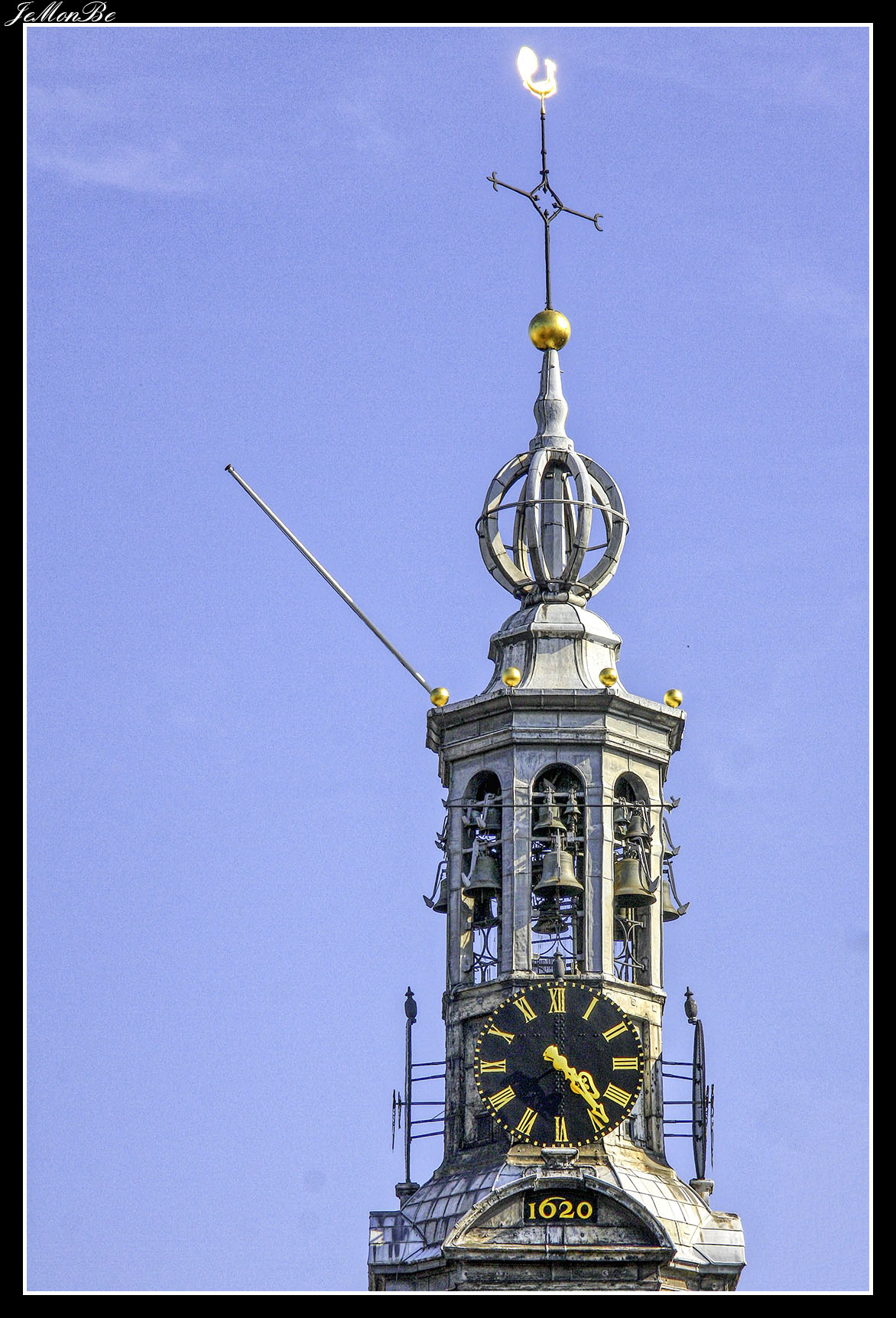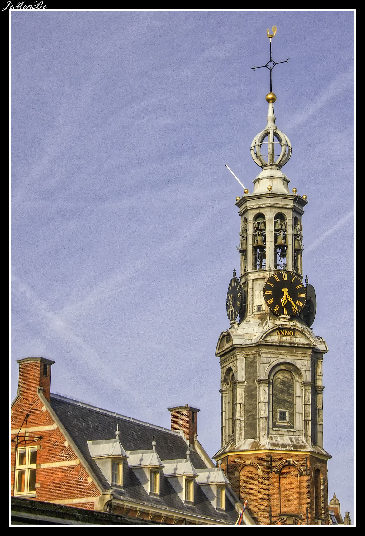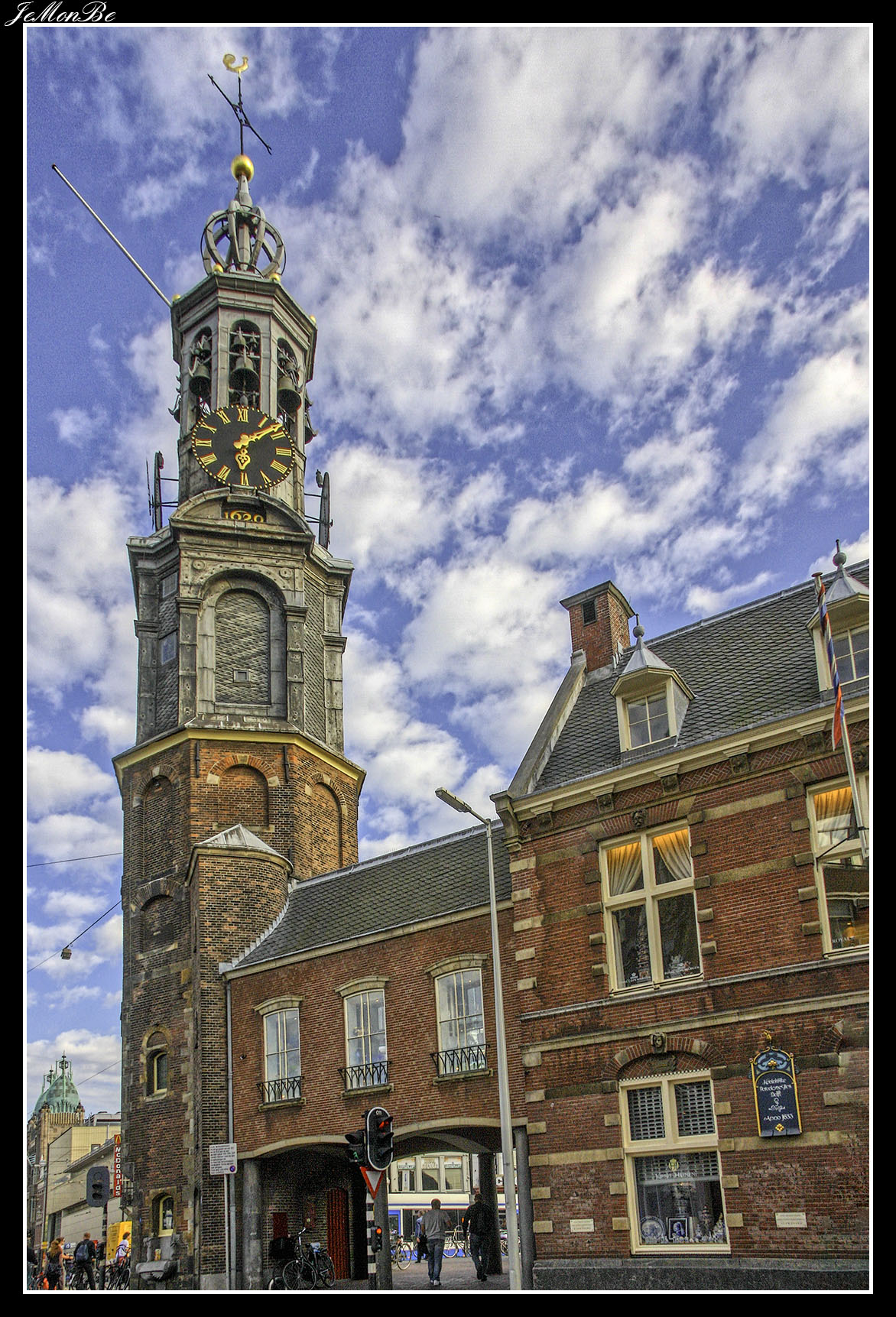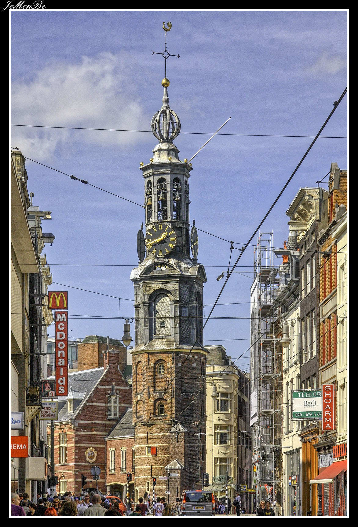 La Munttoren (Torre de la Moneda), se encuentra situada, donde confluyen el río Amstel y el canal Singel. La torre fue una de las principales puertas de la muralla medieval de la ciudad. La puerta, construida en la década de 1480, estaba compuesta de dos torres y un cuerpo de guardia. Después del incendio de 1618, se reconstruyó solo una en estilo renacentista, en 1620, con un cuerpo superior de forma octogonal y un chapitel abierto, con un reloj de cuatro caras y carillón de campanas.