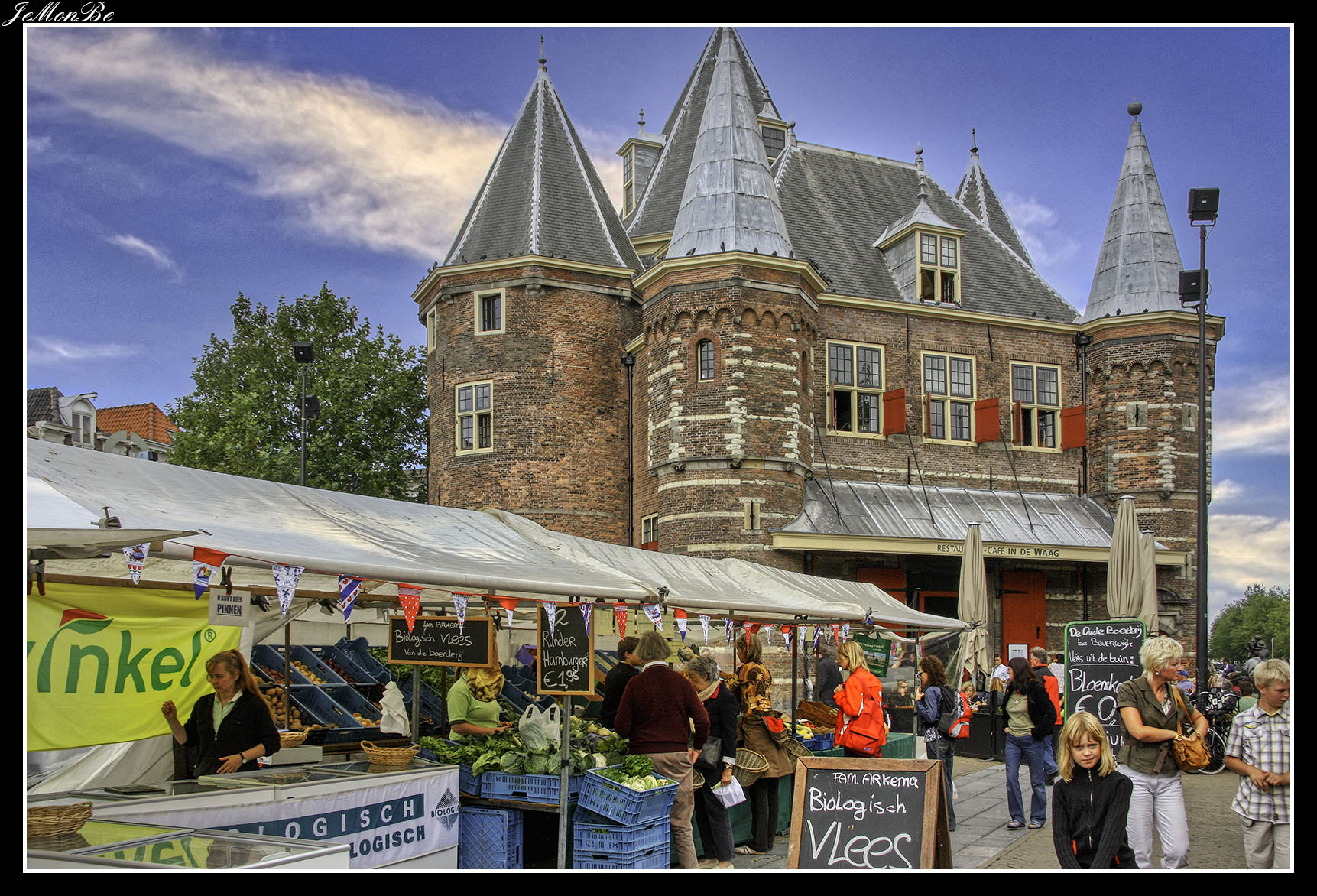 Nieuwmarkt (Nuevo mercado) es una plaza que está dominada por el edificio conocido como el Waag y que sigue realizando su función de mercado al aire libre.
