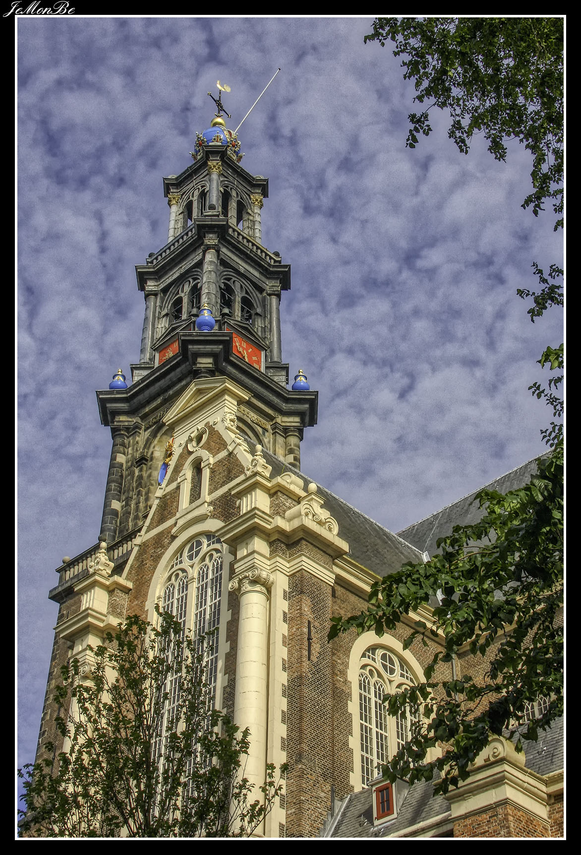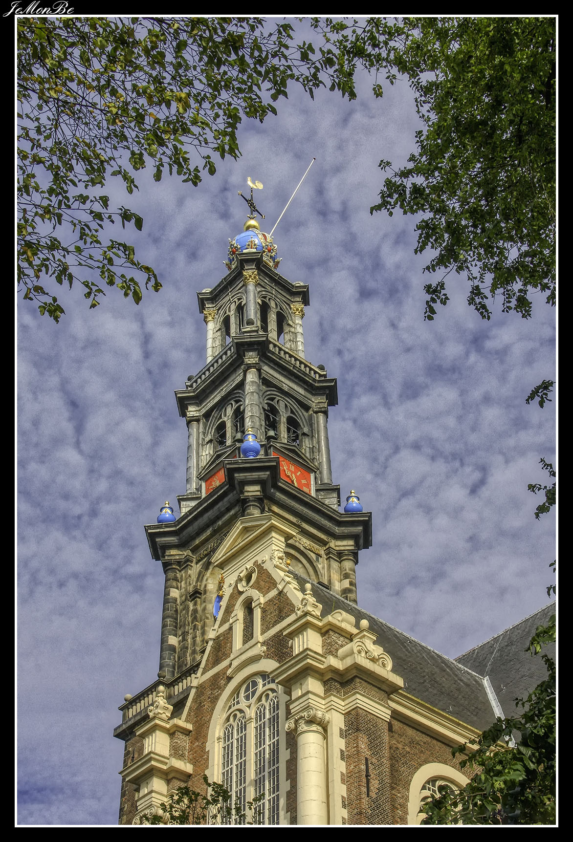 Junto al mismo canal tenemos la Iglesia Westerkerk, también conocida como Iglesia del Oeste. Fue inaugurada el día de pentecostés del año 1631. De estilo renacentista, cuenta con una torre de 85 metros de alto, adornada con la corona imperial de Maximiliano de Austria, la cual fue un obsequio de los monarcas en agradecimiento al apoyo de la ciudad.