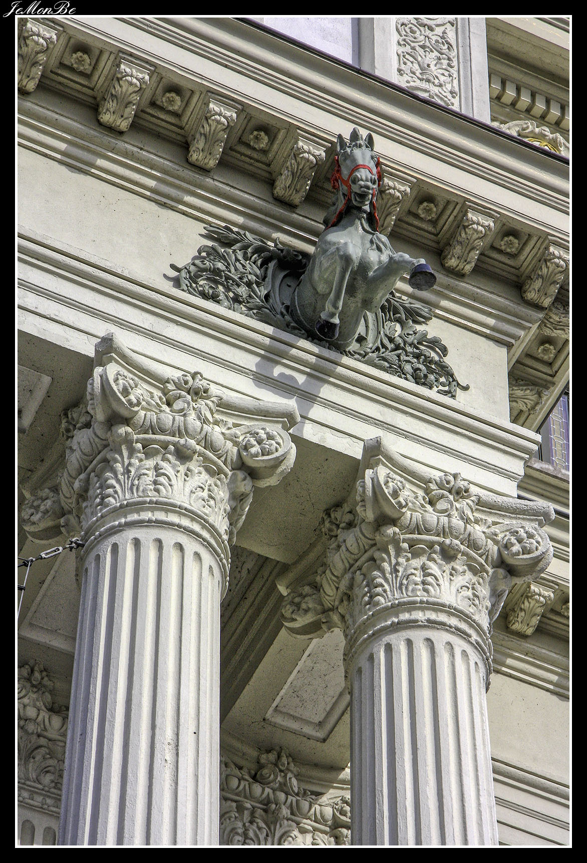 El edificio fue diseñado por Jacob Otten Husly en estilo neoclásico. La fachada presenta cuatro columnas corintias que dividen el frontal en cinco donde hay cinco relieves que representan las artes visuales y la arquitectura, la literatura, el comercio, las ciencias naturales y la música.