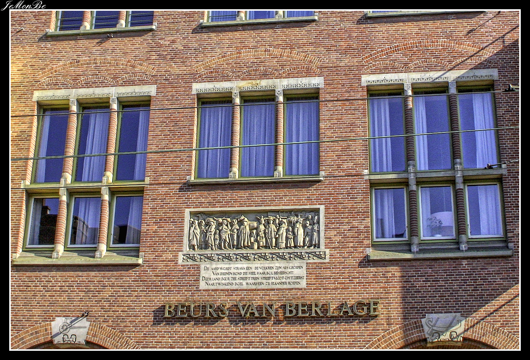 Beurs van Berlage: El antiguo edificio de la Bolsa de valores que ahora funciona como sala de conciertos y centro de exposiciones. El edificio está construido de ladrillo rojo, con tejado de hierro y cristal, su exterior es sólido, y totalmente austero, con frisos de cerámica, dominado por una alta torre con reloj.