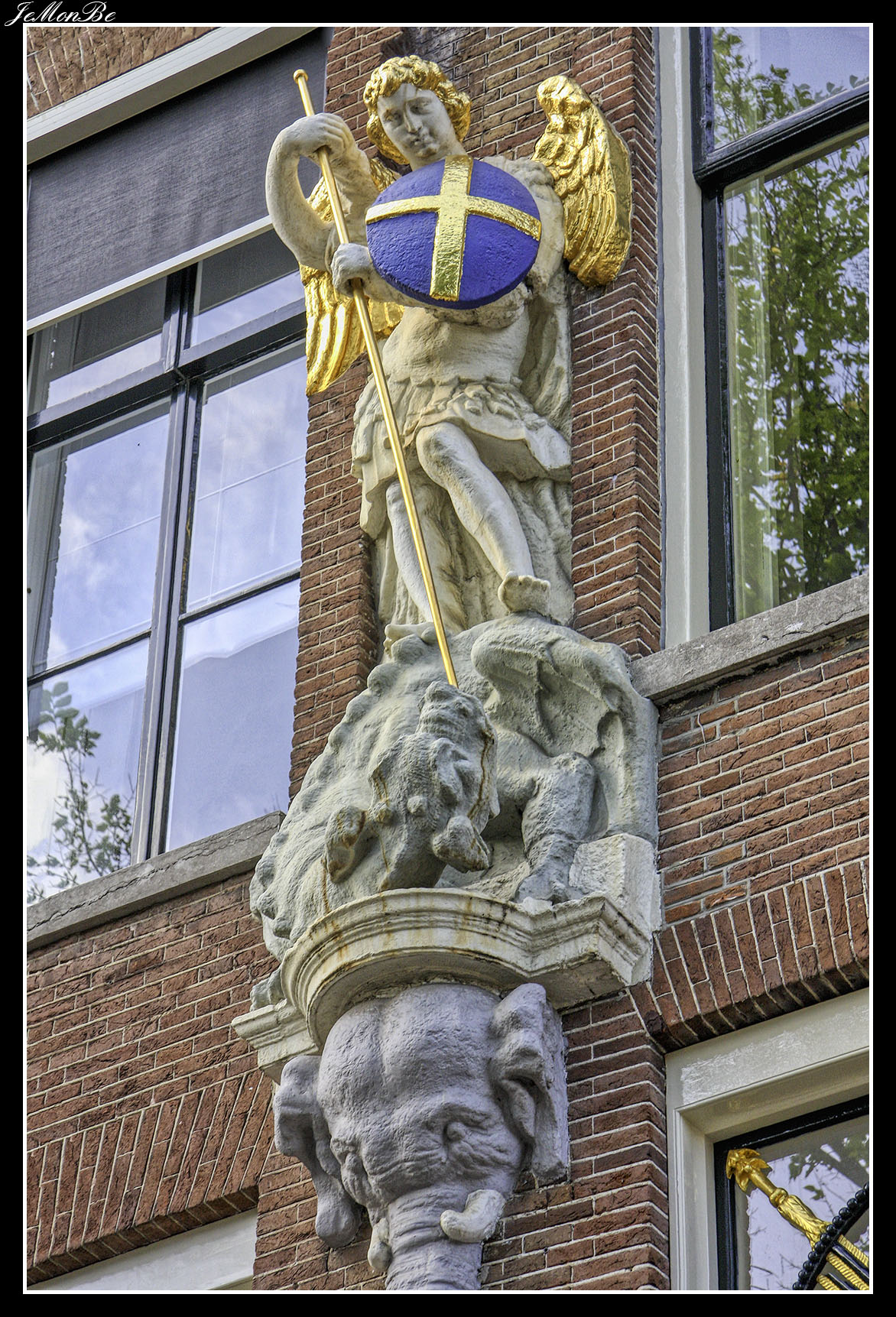 En la fachada del edificio ubicado en Herengracht 581, vemos al Arcángel San Miguel derrotando a un dragón o demonio y debajo una cabeza de elefante. El inmueble fue adquirido en 1664.