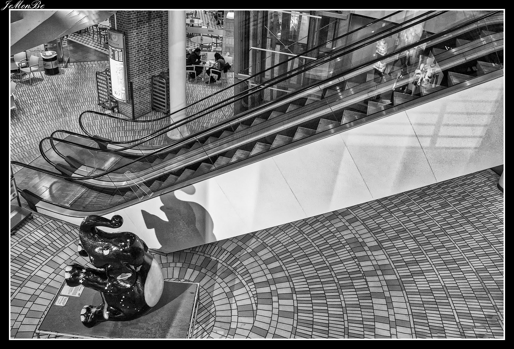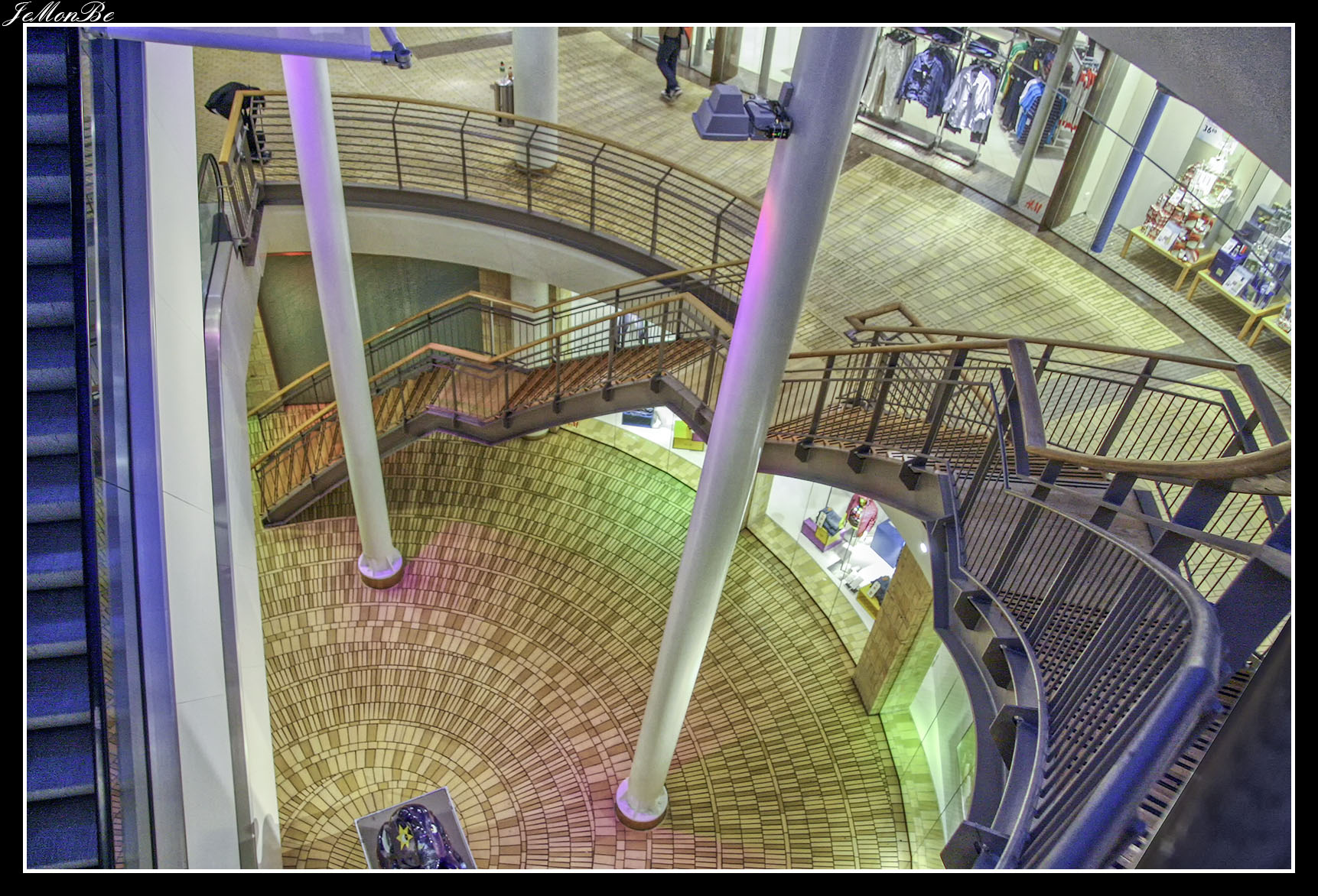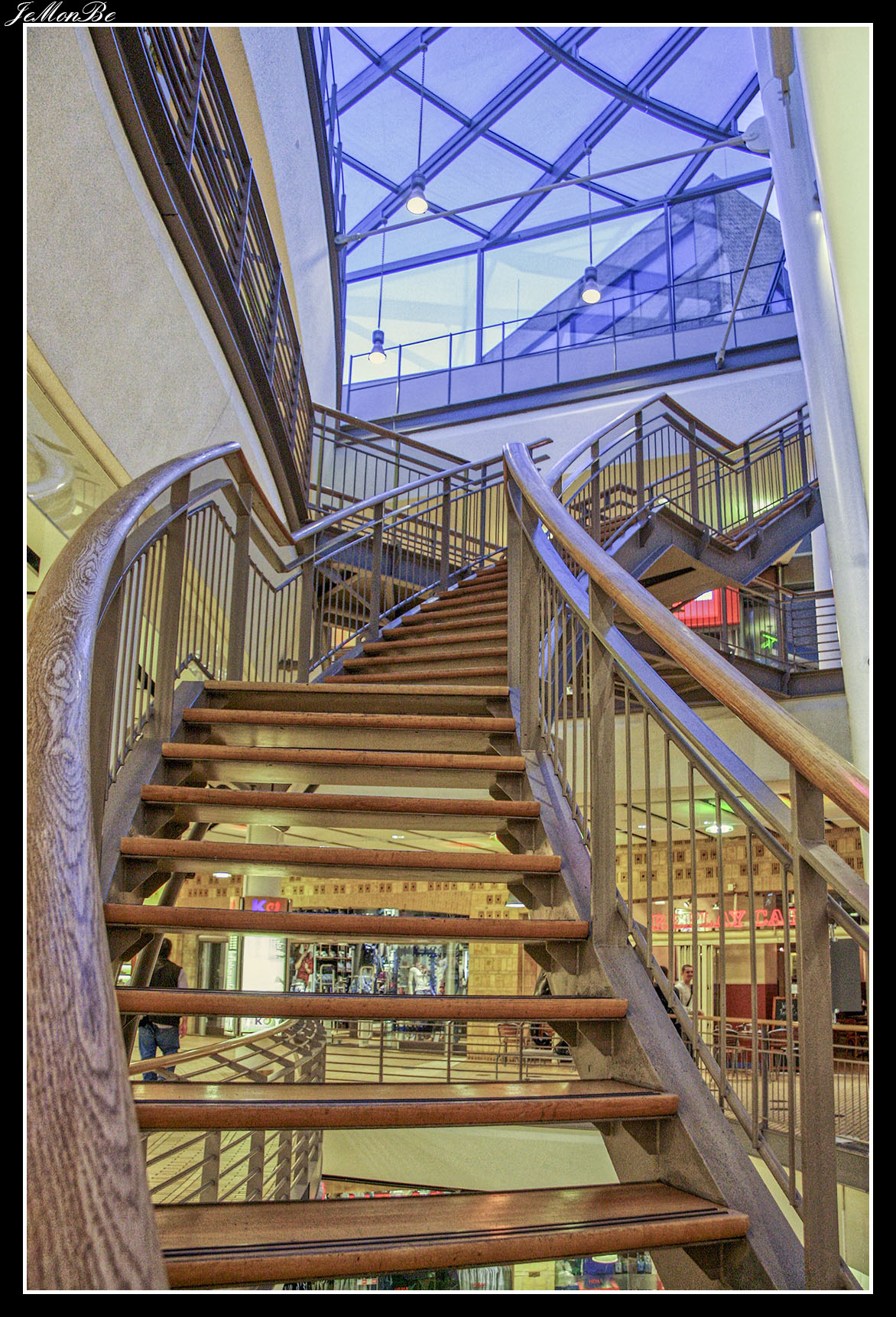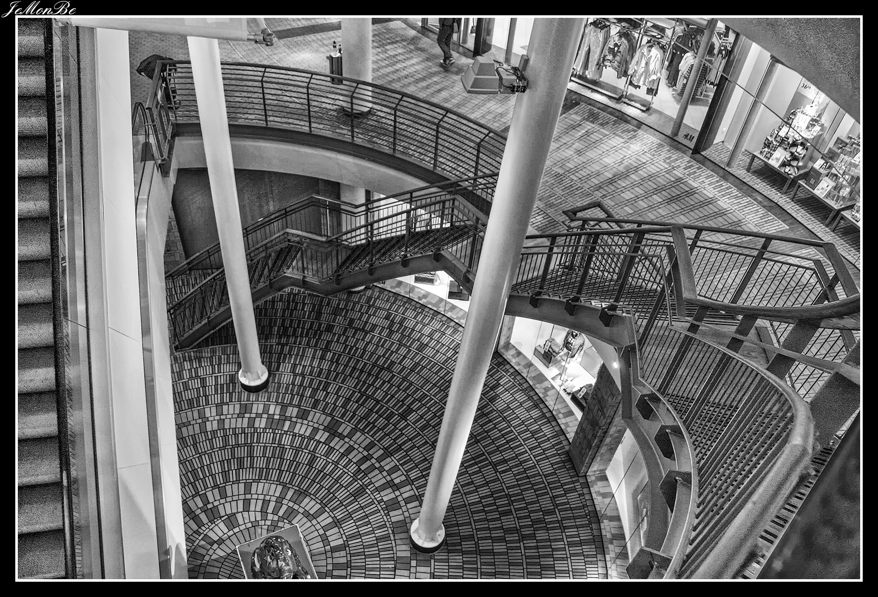 En la renovación se mantuvieron las escaleras existentes, dos como escaleras de emergencia y una como escalera pública. La superficie bruta para tiendas es de 5589 m² y 1420 m² de espacio de oficina en el ático.