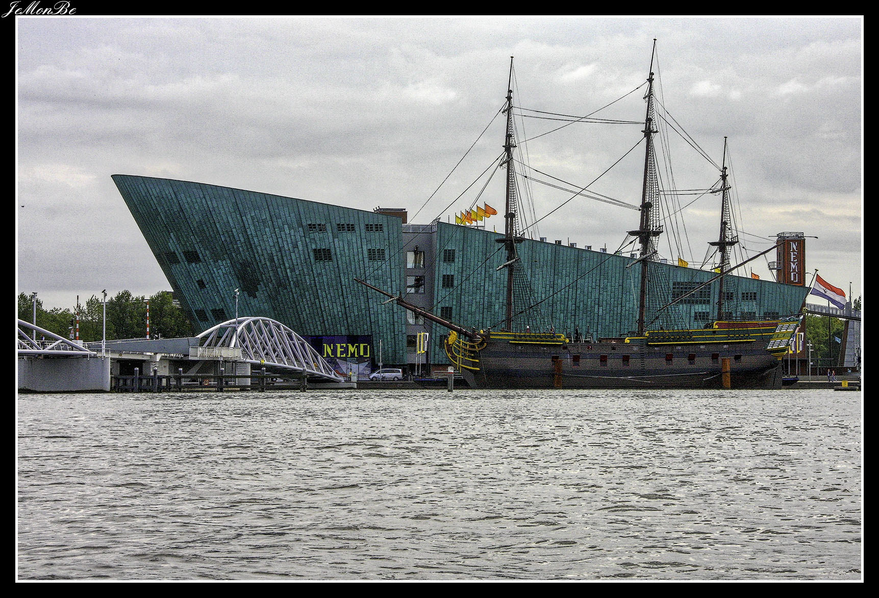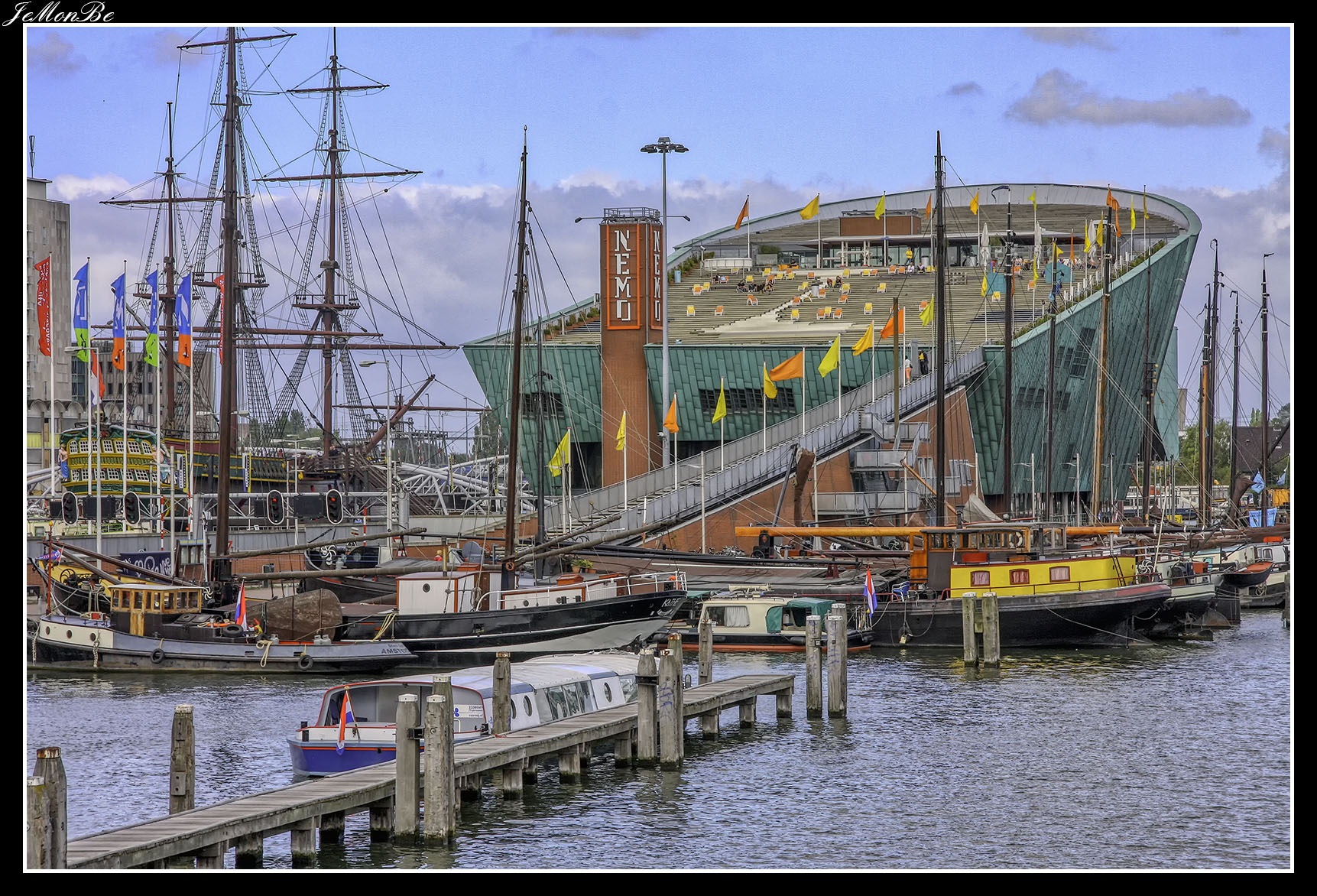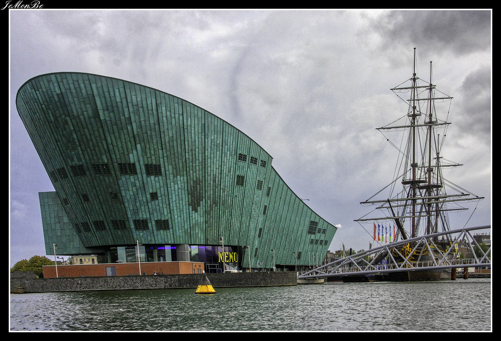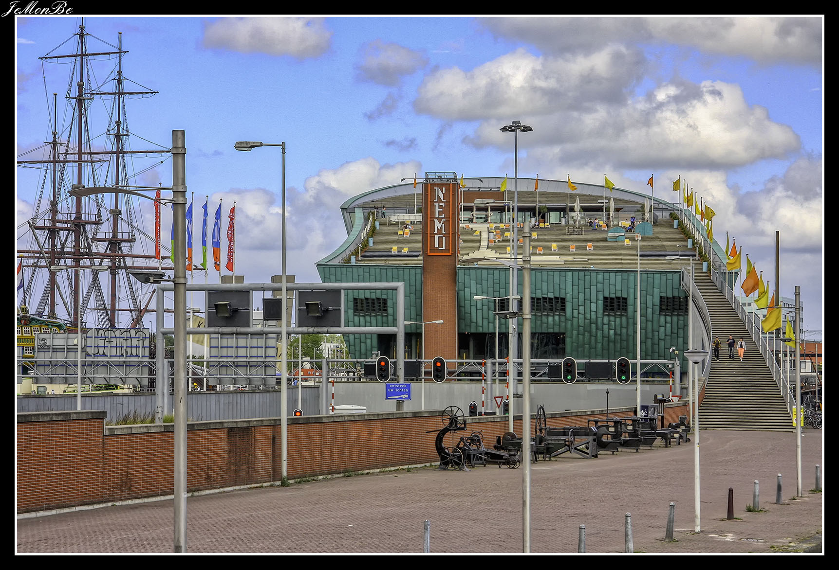 El Museo de Ciencias NEMO, diseñado por el arquitecto Renzo Piano, tiene una forma de barco y está revestido de cobre verde. La azotea del edificio funciona como una plaza pública escalonada con vistas panorámicas de la ciudad.