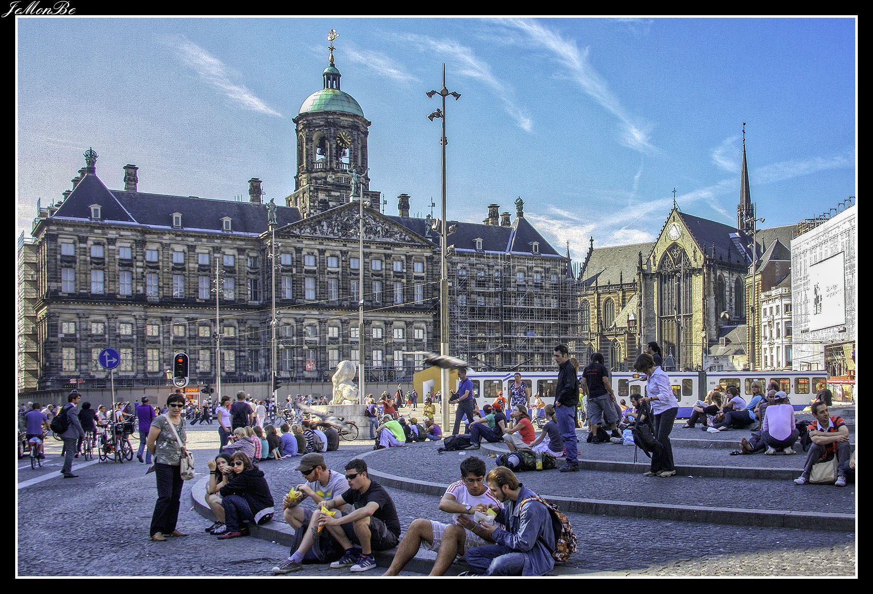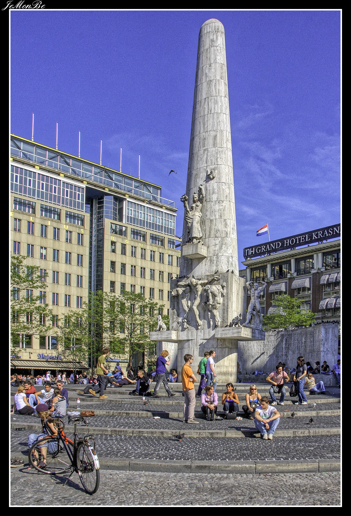 La Plaza Dam es la plaza central. Fundada en el siglo XIII, se encuentra en el corazón histórico de la ciudad y es un punto de encuentro clave, rodeada de edificios emblemáticos como el Palacio Real y la Nieuwe Kerk, además del Monumento Nacional, la Beurs van Berlage y una sucursal del museo de madame Tussaud.