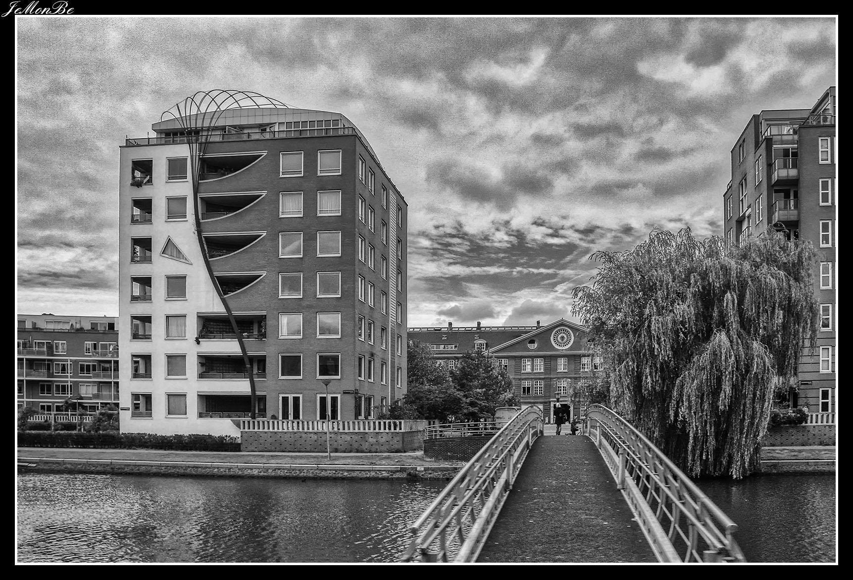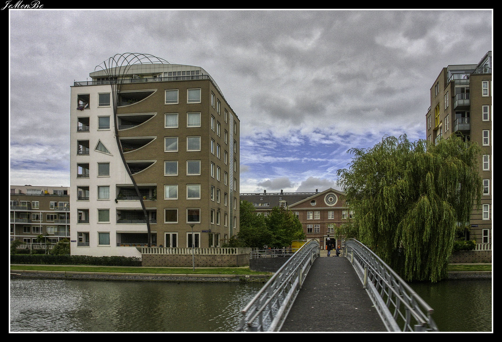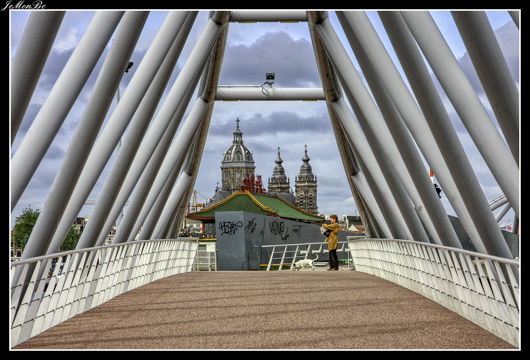 Esta es la parte del puente Nijlpaardenbrug, conocido popularmente como «Puente de los Hipopótamos».