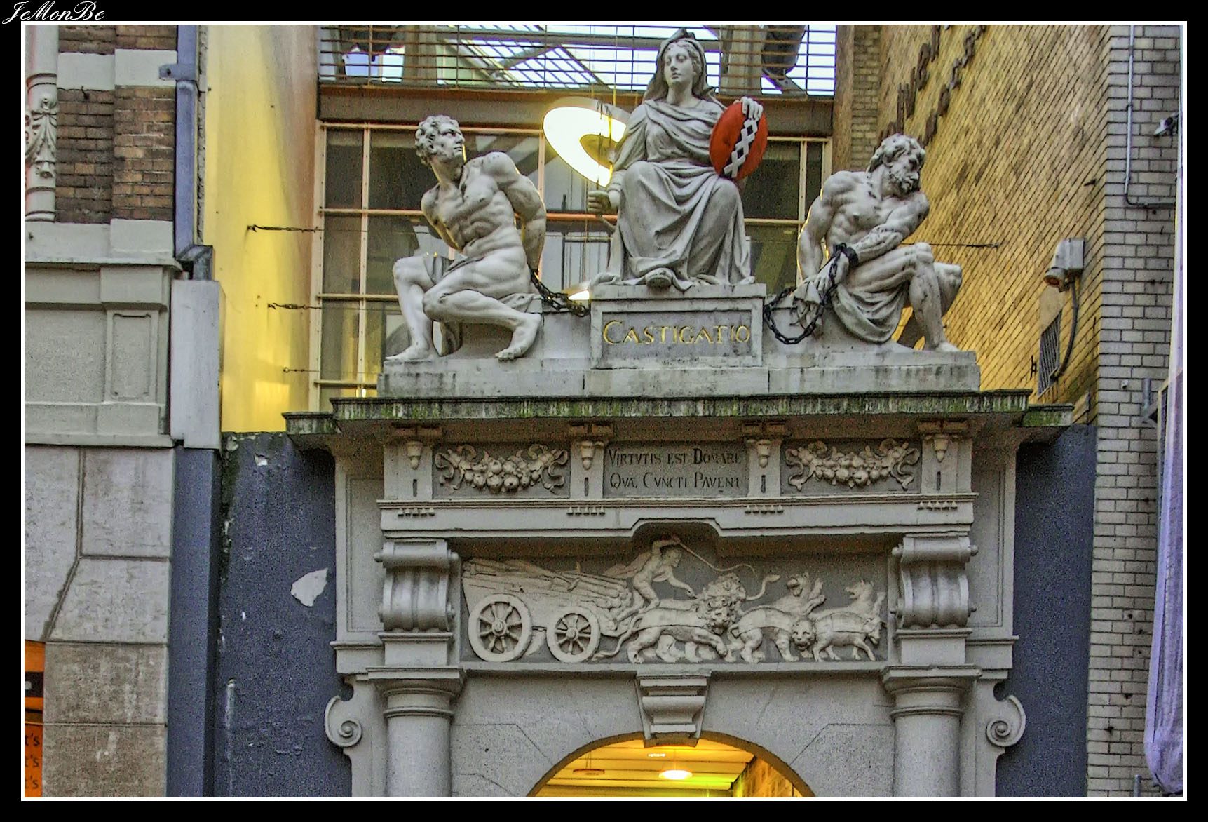La Rasphuispoort, puerta de entrada a la prisión de Rasphuis. En la parte superior del arco se pueden ver figuras de la justicia, la misericordia y el castigo.