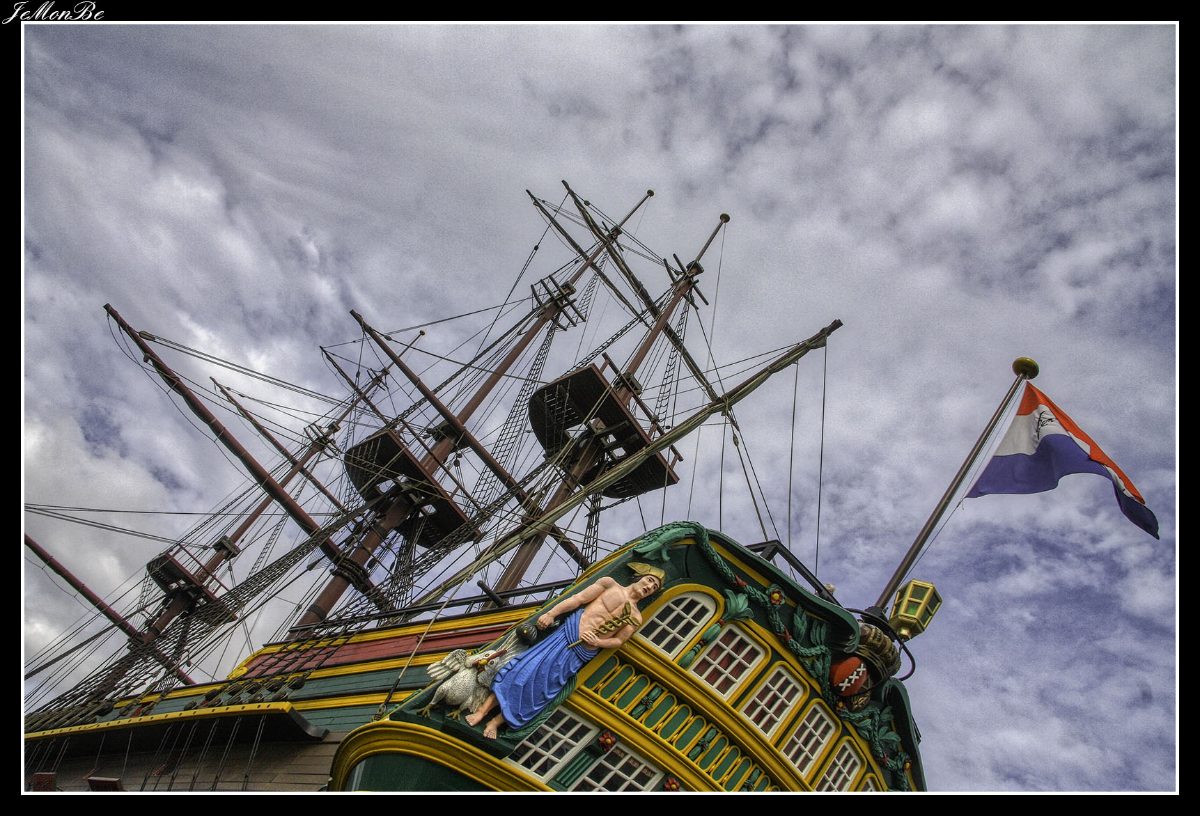 Réplica del carguero Amsterdam, buque de la Compañía Neerlandesa de las Indias Orientales (VOC) que naufragó durante su viaje inaugural en 1749.