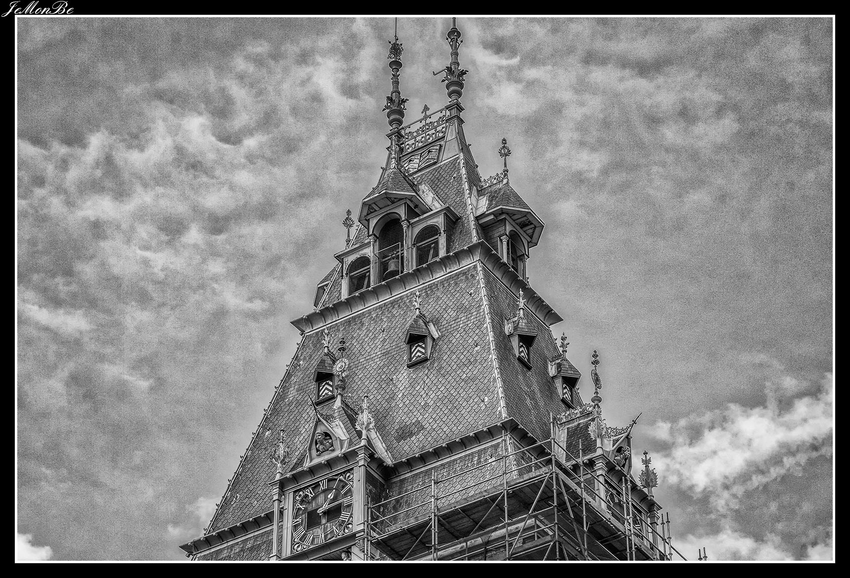 El exterior es de ladrillos policromados con detalles en piedra labrada, a lo largo de los bordes del tejado hay una gran cantidad de buhardillas, cada una con su propio gablete escalonado. Debido a las coronas en forma de pera en la parte superior de las torres, el edificio recibe el nombre coloquial de «Perenburg».