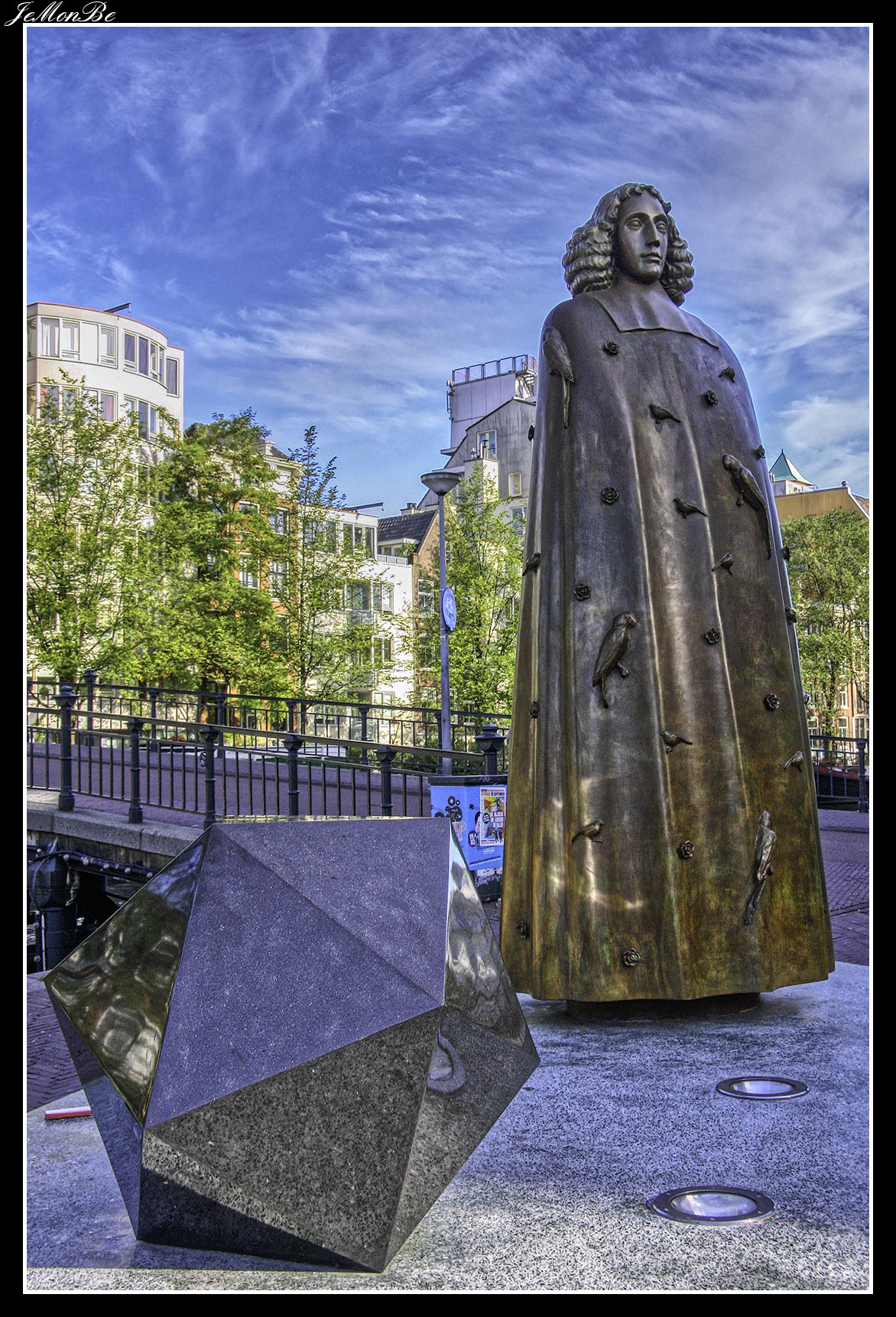 Monumento dedicado al filósofo holandés Benedictus de Spinoza, fue excomulgado de la comunidad judía de la ciudad a los 24 años por herejía debido a sus ideas filosóficas. Junto a la estatua hay un icosaedro, que simboliza el universo como un modelo creado por la mente humana.