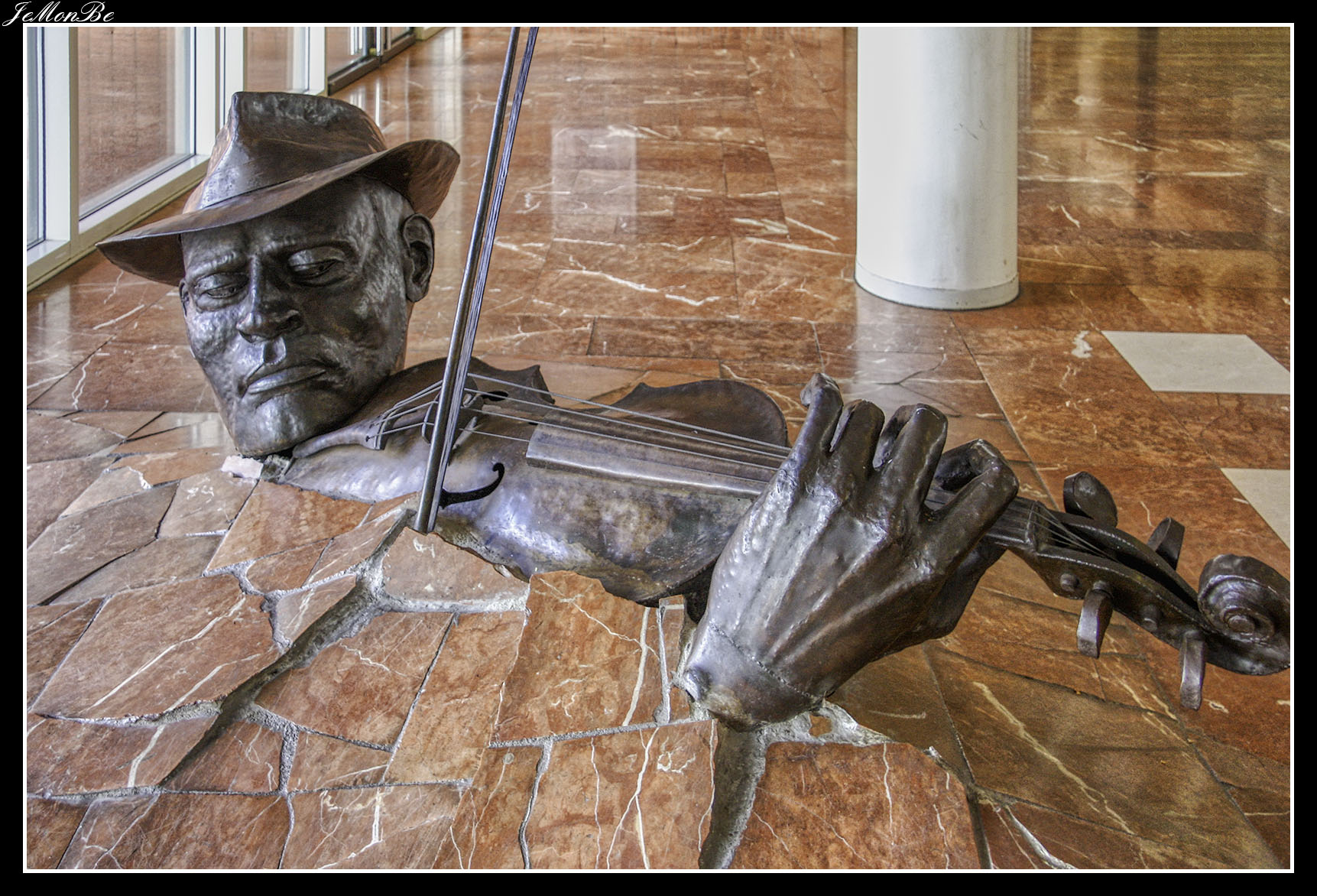 La escultura en bronce conocida como «Fiddler on the Ground» (Violinista en el suelo), fue creada por el artista belga Wim Tap, es un homenaje a los músicos callejeros que solían tocar en la plaza Waterlooplein, donde ahora se encuentra la Stopera.
