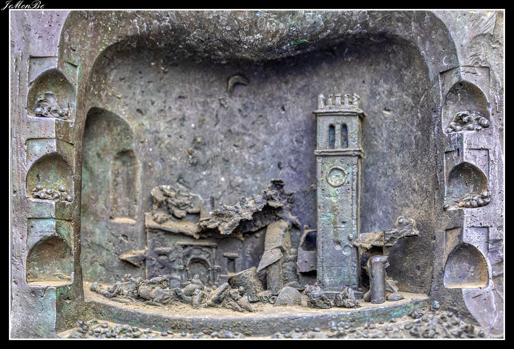 La Escultura al Teatro, es un bronce de pequeño formato, se encuentra sobre una columna de granito, junto a la iglesia de Santa María la Mayor. Homenajea al teatro representando por uno de sus lados una máscara o rostro que en su boca tiene la ciudad de Andújar y por otro una mujer desnuda (¿una musa?) a cuyos pies aparece el ayuntamiento.