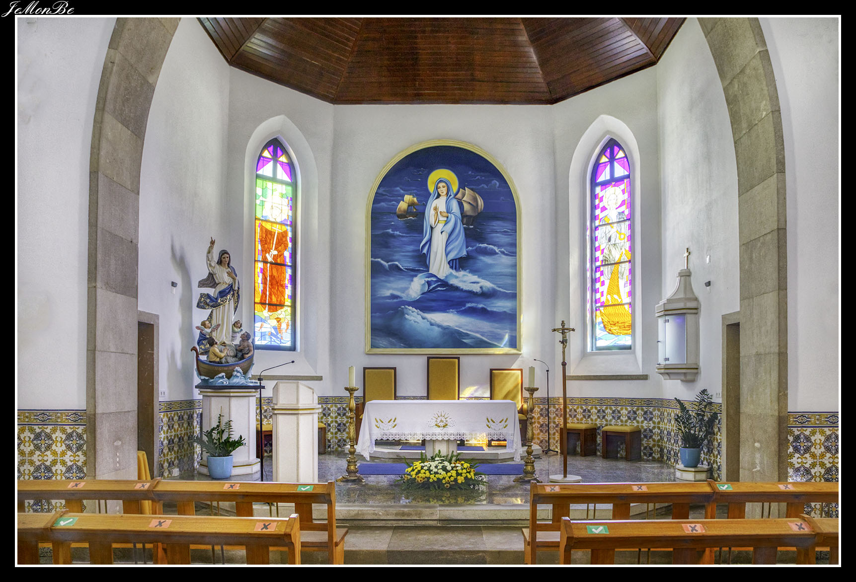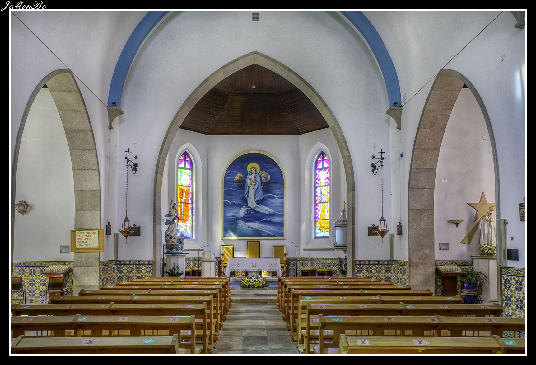 La iglesia principal del pueblo se encuentra en una pequeña plaza justo frente a la playa. La Igreja de Nossa Senhora dos Navegantes o Igreja Matriz de Armação de Pêra, como se la conoce más comúnmente, es una iglesia relativamente nueva construida solo a fines de la década de 1950.