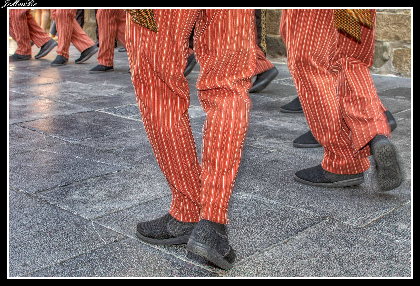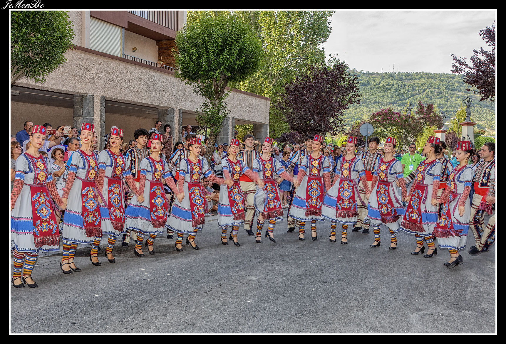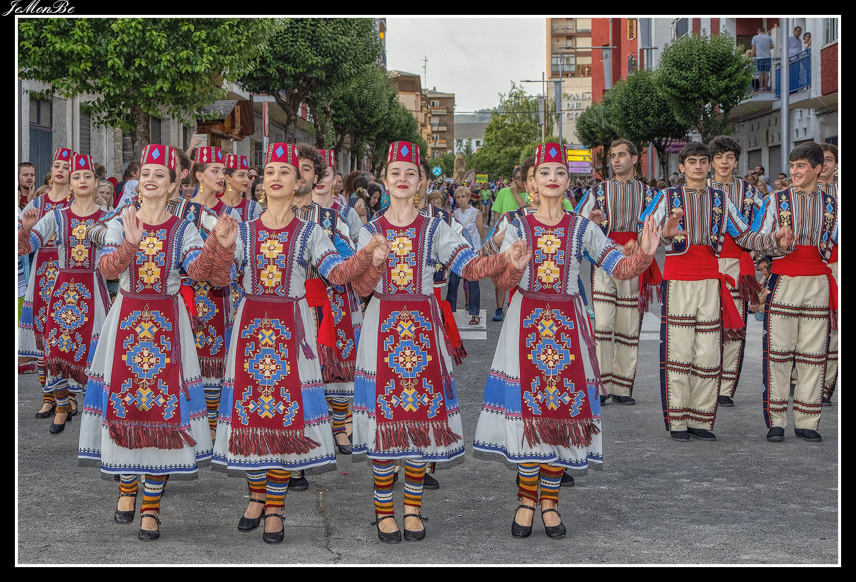 Las danzas de los bailarines son fogosas, impetuosas, rápidas, acrobáticas y viriles, se realizan saltos, quebradas en las rodillas, ruedas o pirámides. Los movimientos de las piernas los hacen gracias a resbalones, a puntas ejecutadas con los dedos de los pies en botas de cobre flexible, que recuerdan a los pasos de los caballos; mientras que los movimientos de los brazos evocan el vuelo del águila.