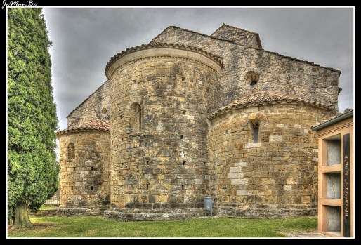 El templo tiene planta basilical con tres naves, que se hacen más estrechas a los pies de las naves, especialmente la del lado norte. La nave central, más alta que las otras dos, está cubierta con bóveda de cañón, mientras que las laterales tienen bóvedas de cuarto de círculo. Las tres naves se encuentran con un friso de dientes de sierra.