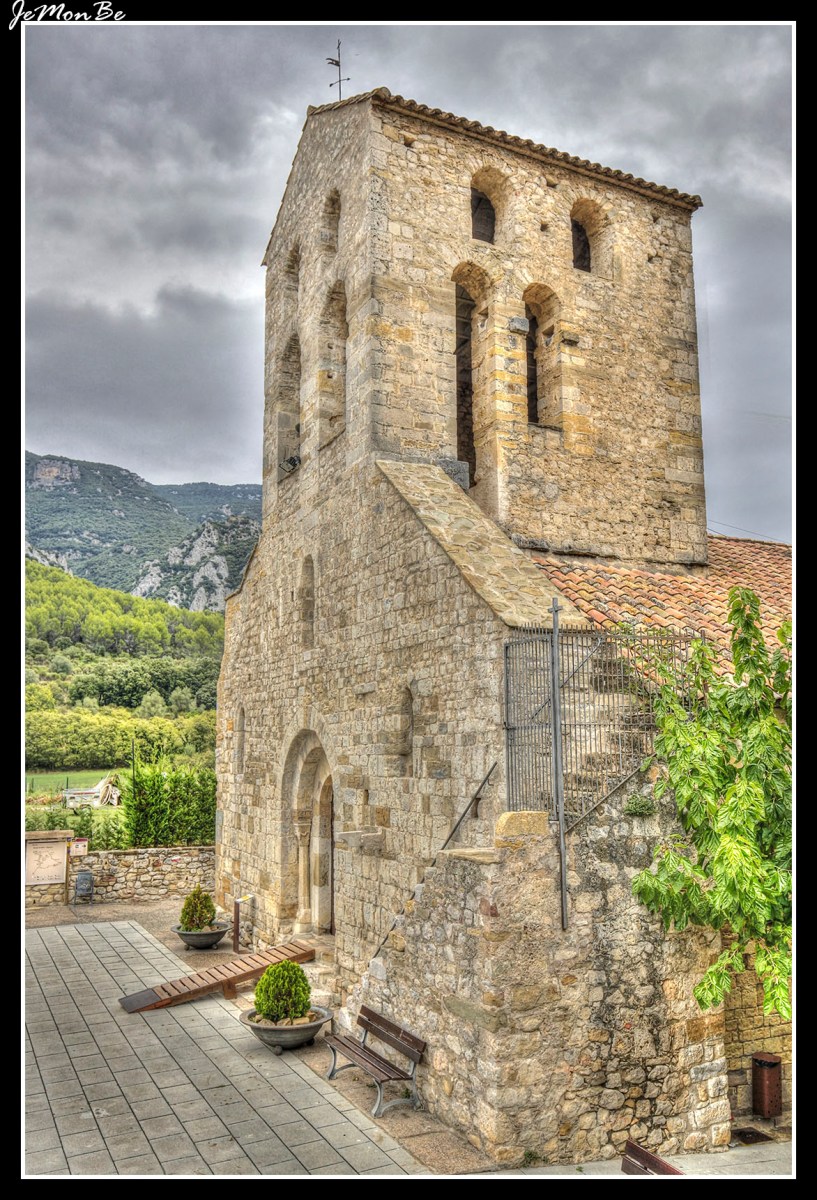 El templo tiene planta basilical con tres naves, que se hacen más estrechas a los pies de las naves, especialmente la del lado norte. La nave central, más alta que las otras dos, está cubierta con bóveda de cañón, mientras que las laterales tienen bóvedas de cuarto de círculo. Las tres naves se encuentran con un friso de dientes de sierra.