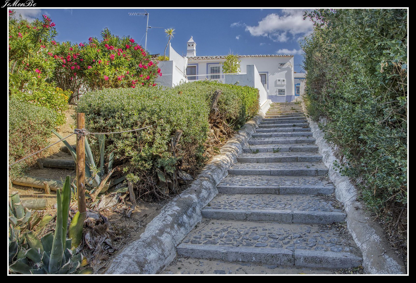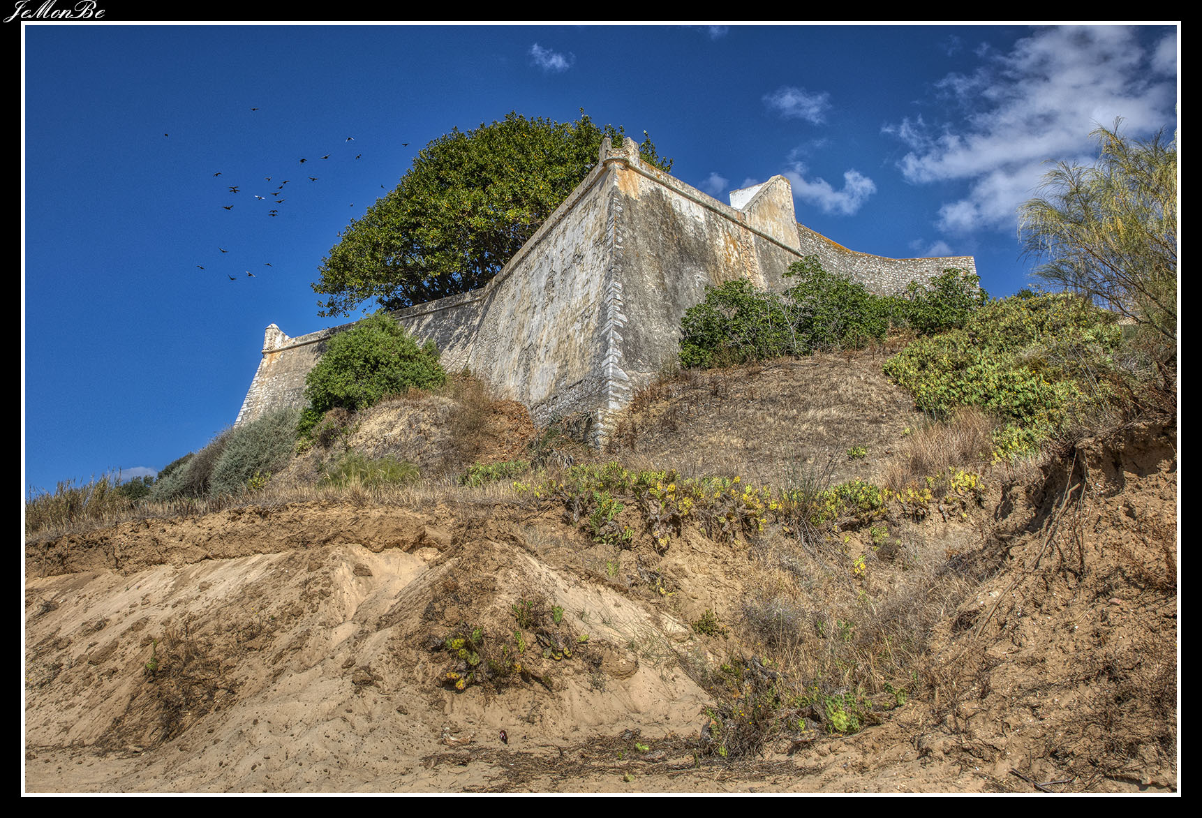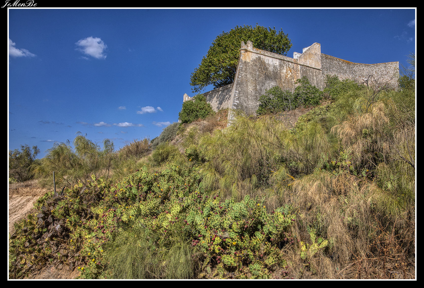 En torno a su plaza, se encuentra la Iglesia Matriz (de origen medieval y remodelada en los siglos XVI-XVIII), una fortaleza (del siglo XVII reconstruida tras el terremoto de Lisboa en 1755) y una pequeña noria que estuvo activa hasta mediados del siglo pasado. Esta aldea, construida sobre el acantilado costero, presenta el mejor mirador posible de los inmensos arenales del Parque Natural de la Ría Formosa.