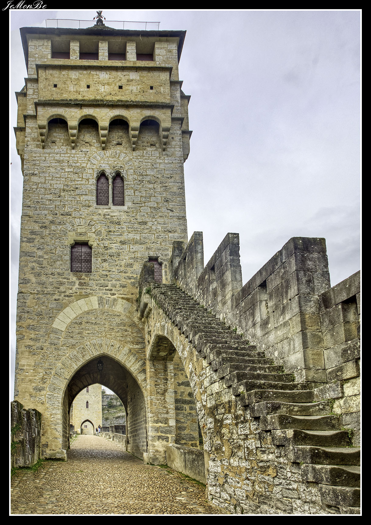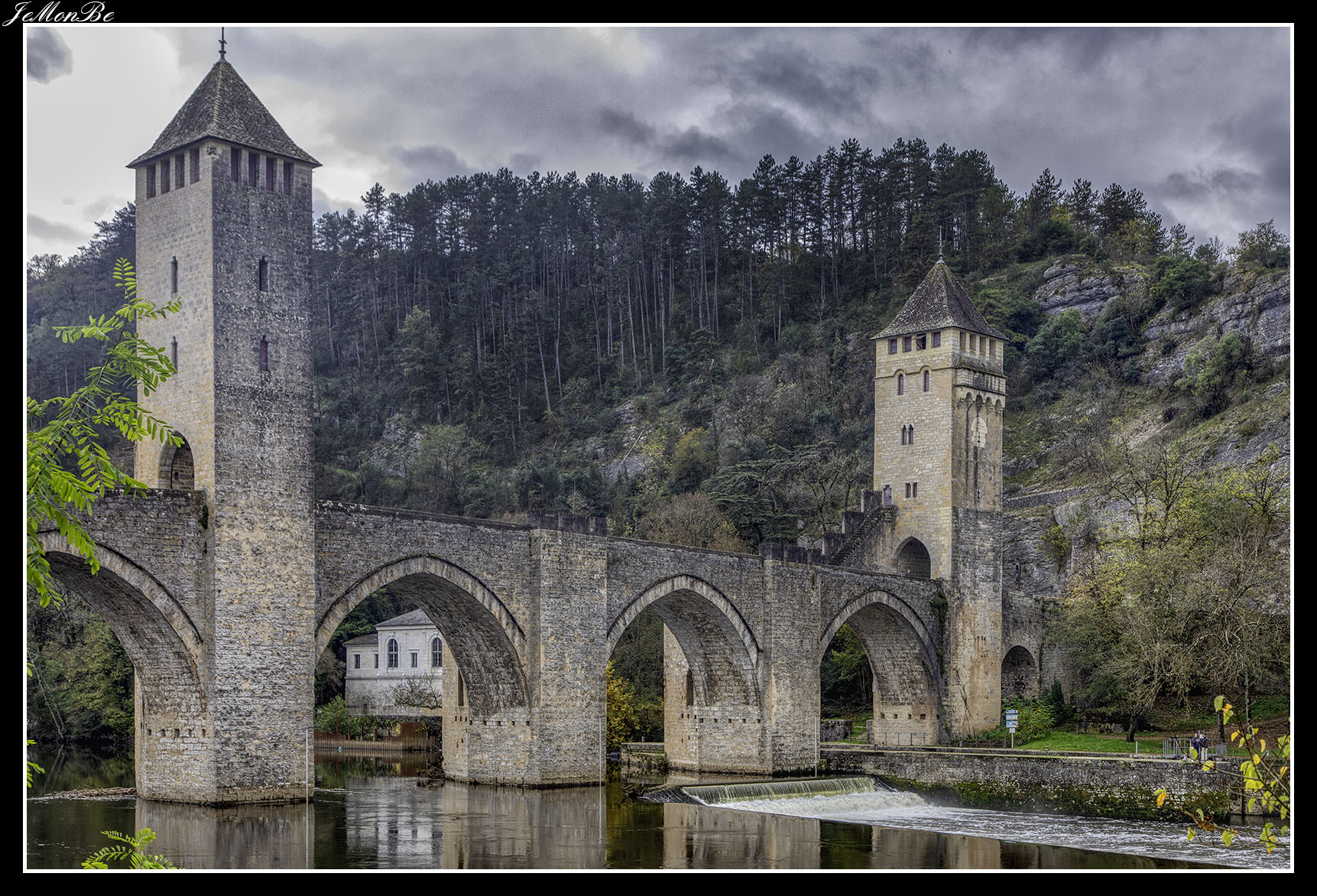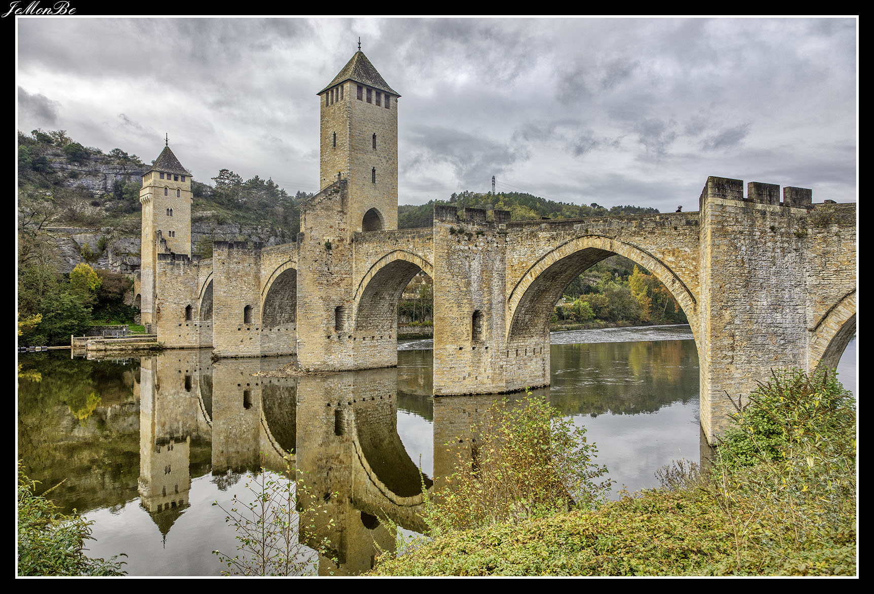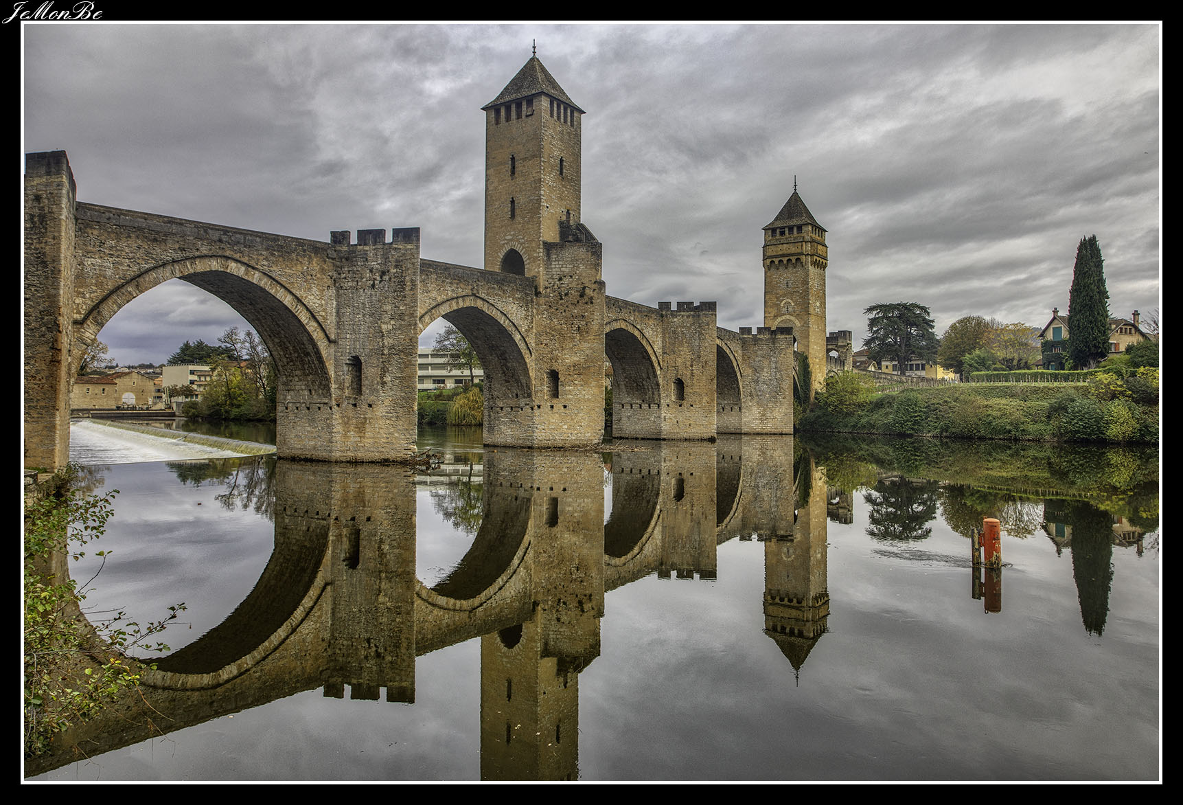 El famoso puente Valentré (en occitano: pont de Balandras) es un puente de piedra medieval que cruza el río Lot. Ofrece con sus tres torres fortificadas y sus seis arcos precedidos de pilares puntiagudos, un ejemplo de arquitectura defensiva medieval.
