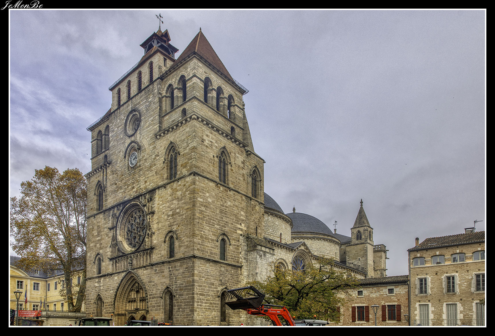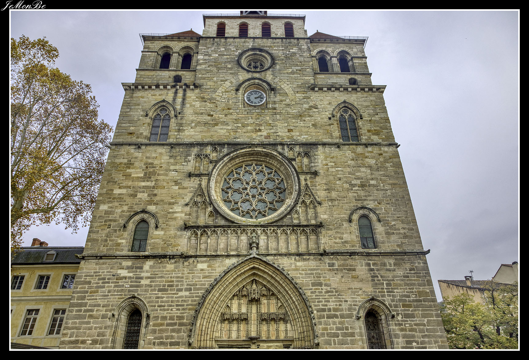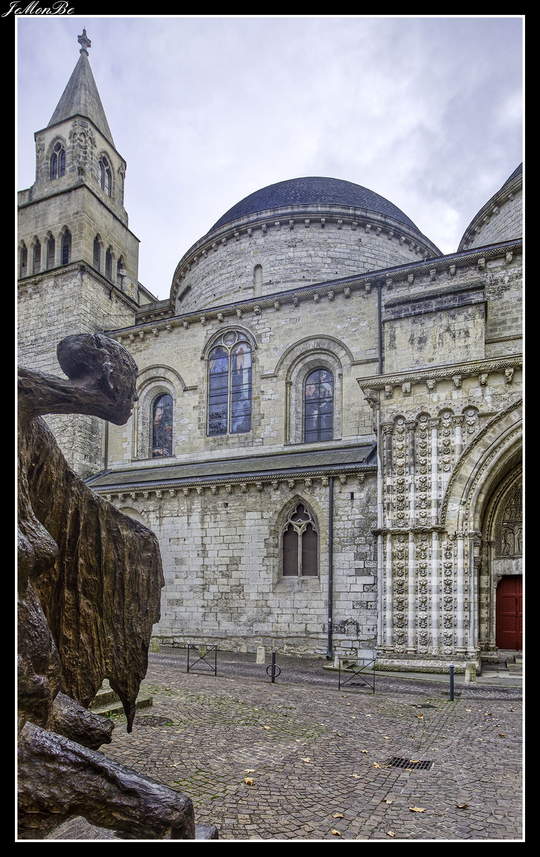 La catedral de Saint-Étienne es un edificio románico construido entre 1080 y 1135. La fachada da una impresión de pesadez, parecida a la muralla de un castillo; el nártex tiene por encima un campanario encuadrado por dos torres con seis aperturas estrechas, un portal de triple arquivolta y encima una galería y un rosetón. Tiene la cúpula a sudoeste. Con una fachada fortificada románica que forma un cuerpo saliente en la fachada norte.