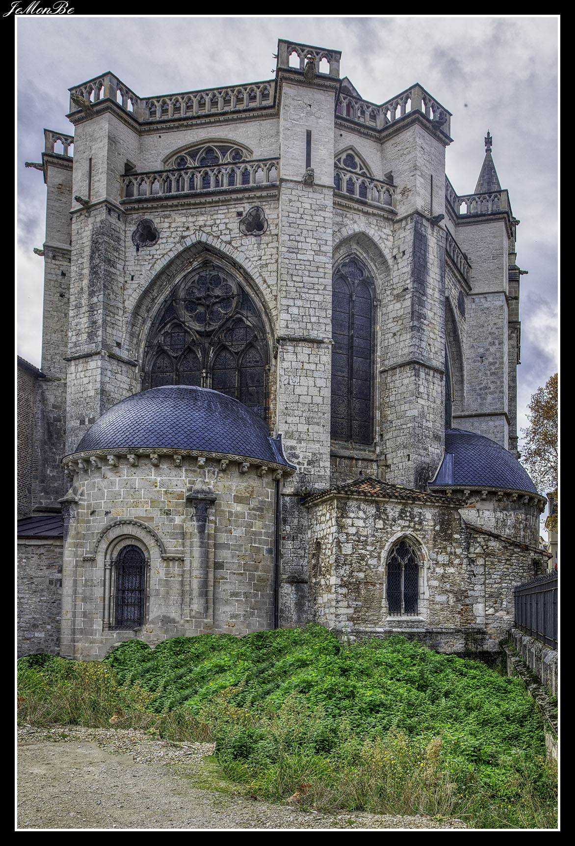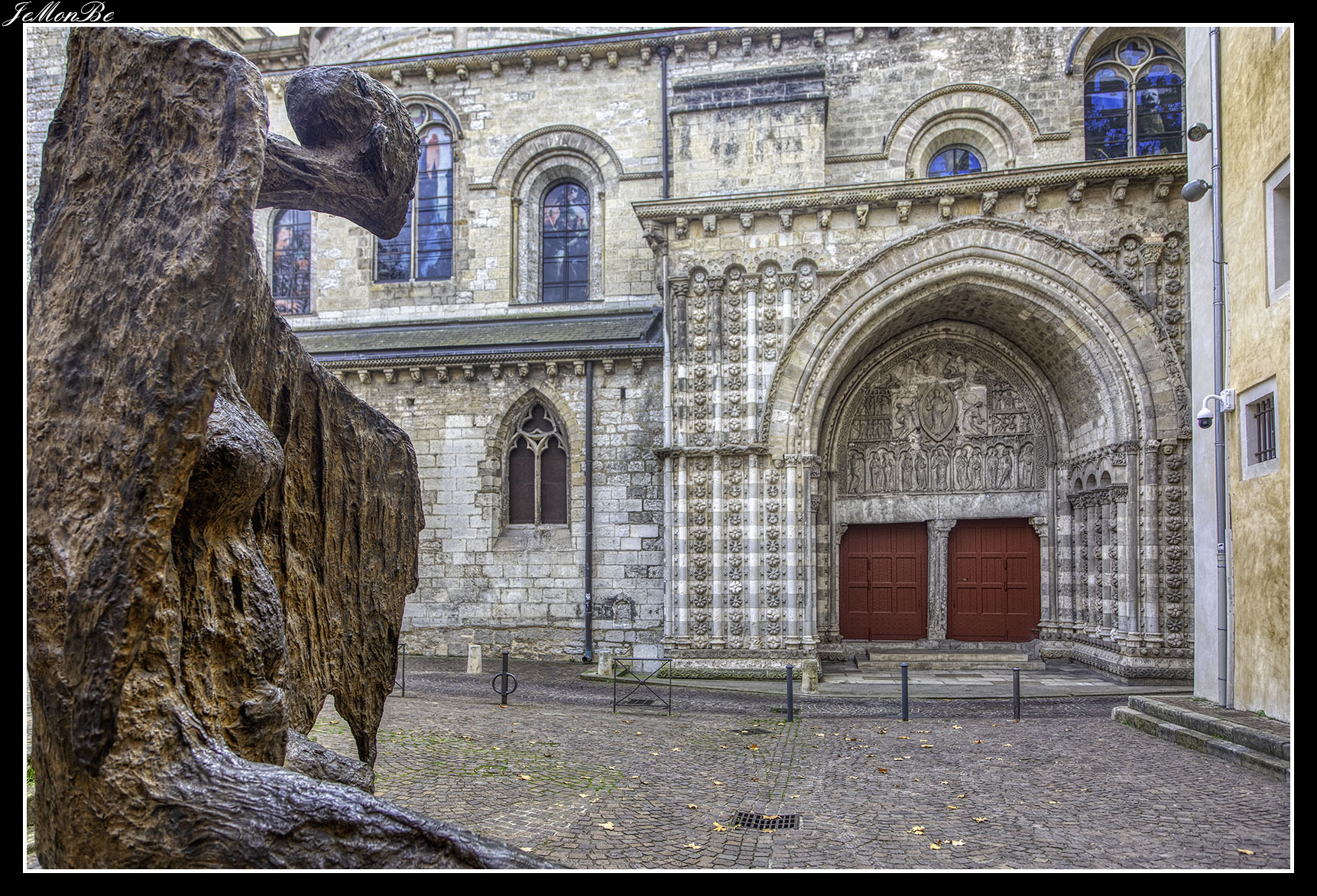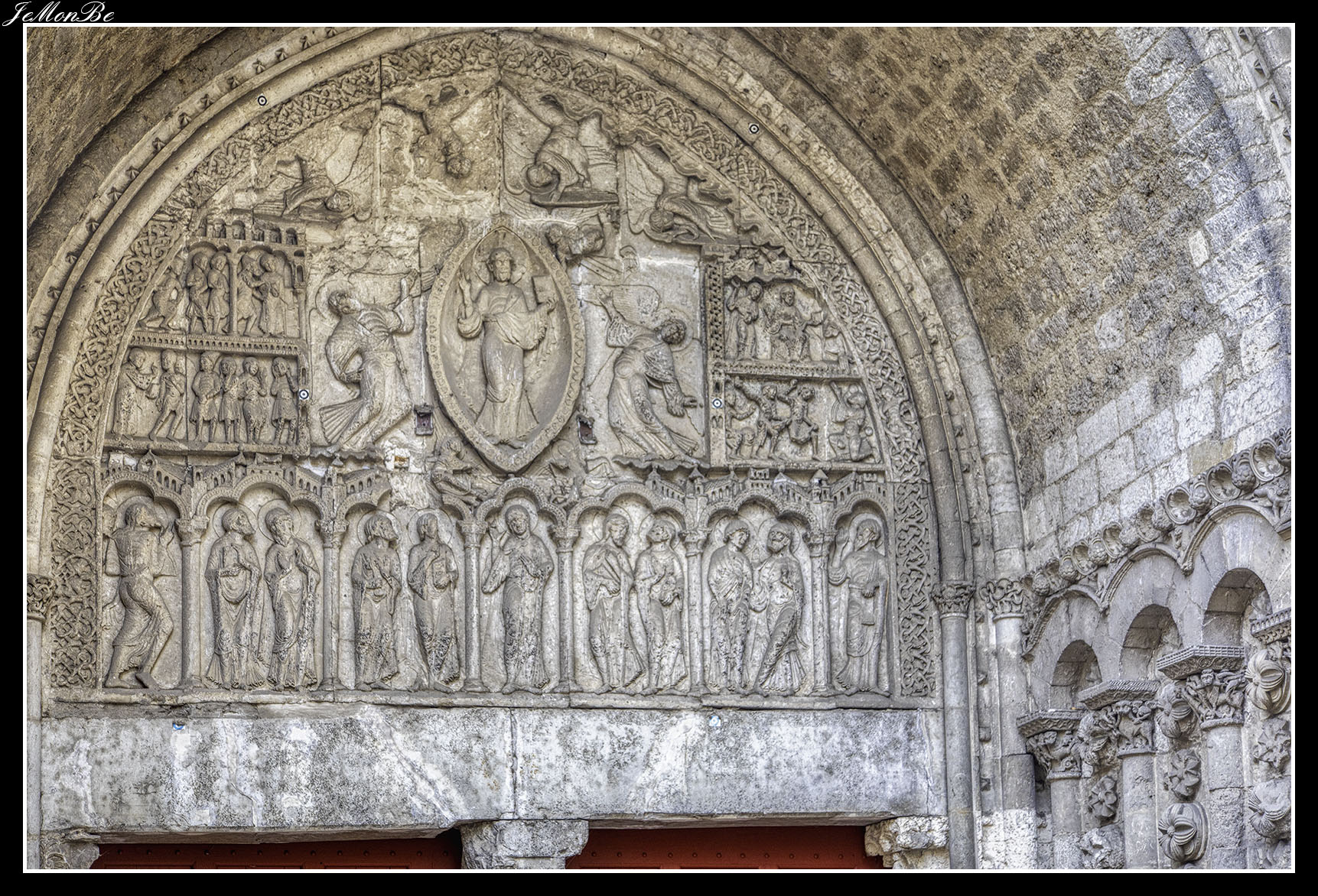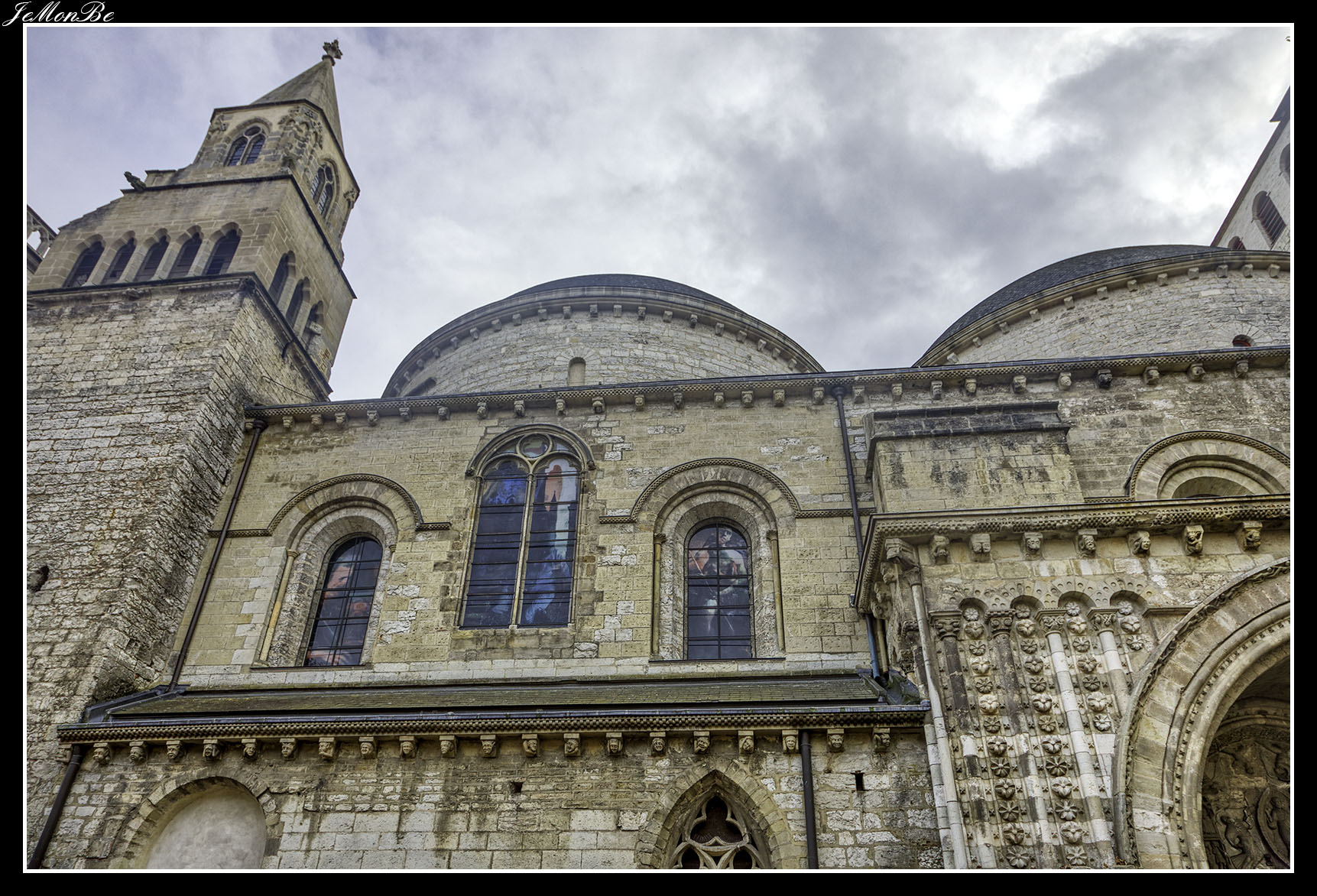 La catedral de Saint-Étienne es un edificio románico construido entre 1080 y 1135. La fachada da una impresión de pesadez, parecida a la muralla de un castillo; el nártex tiene por encima un campanario encuadrado por dos torres con seis aperturas estrechas, un portal de triple arquivolta y encima una galería y un rosetón. Tiene la cúpula a sudoeste. Con una fachada fortificada románica que forma un cuerpo saliente en la fachada norte.