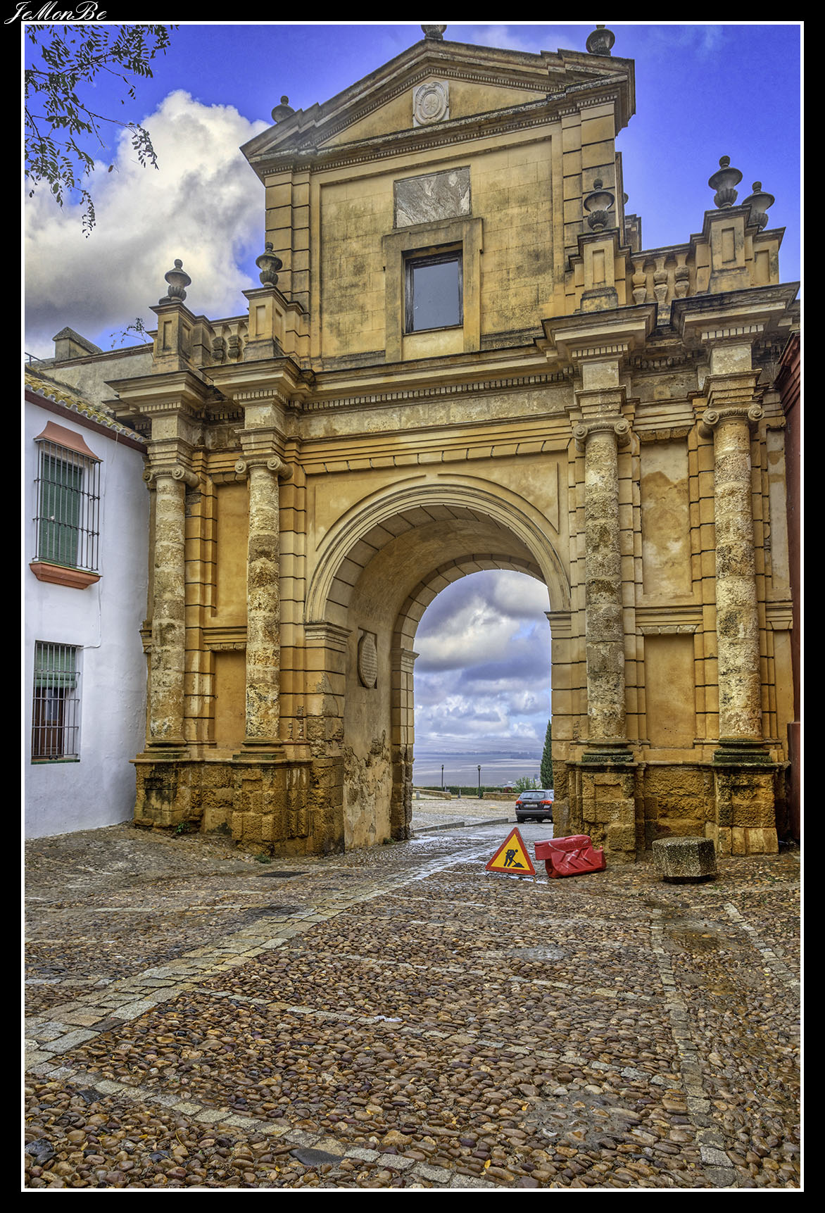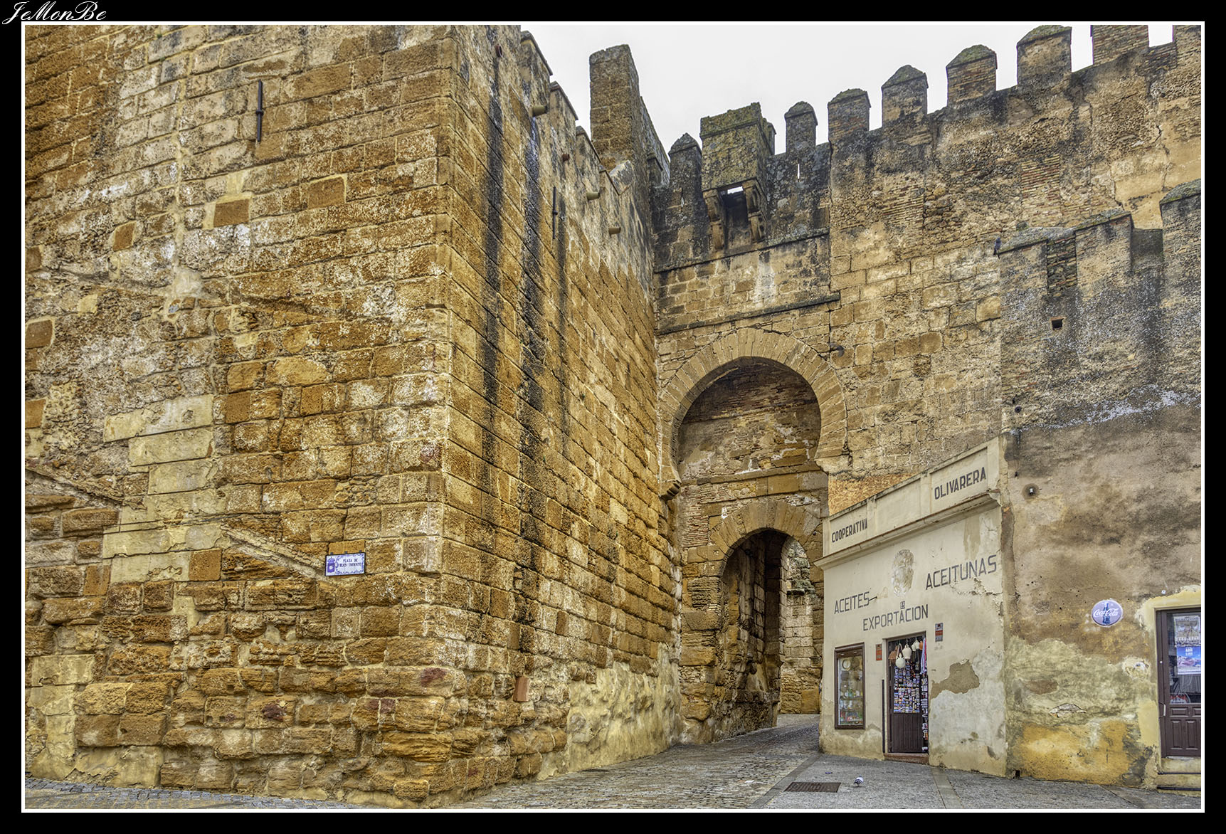 La puerta de Sevilla, situada en la zona de más fácil acceso a la ciudad se fortificó para hacerla casi inexpugnable, está enmarcada en una pequeña fortaleza conocida como Alcázar de Abajo, porque en la parte más alta de la ciudad está el Alcázar del Rey Don Pedro.