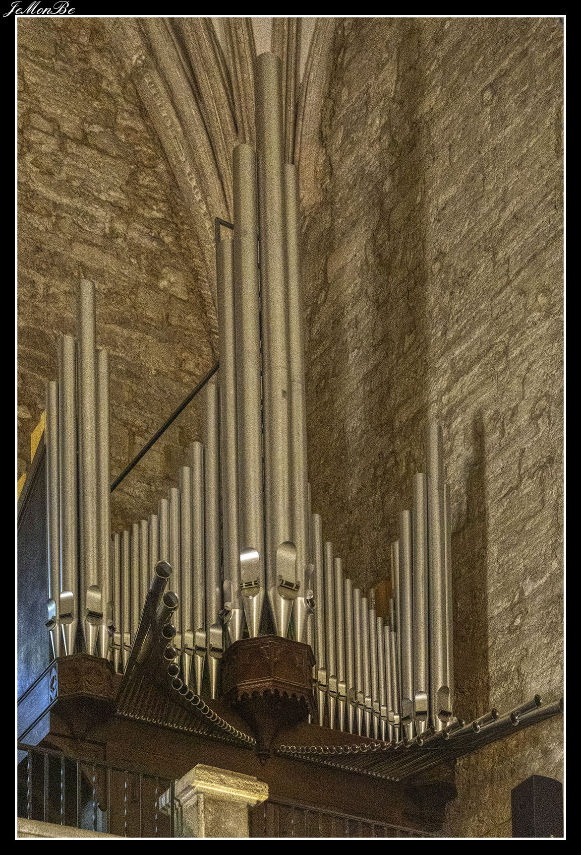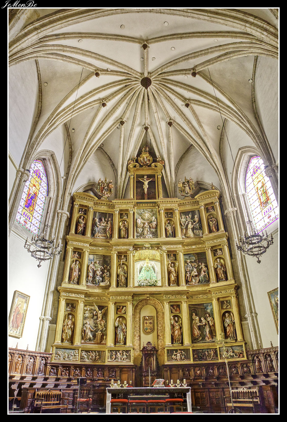 El interior es de una sola nave, siendo esta la única catedral de España de estas características, con una pseudo-crucería y su magnífico retablo de 1616 obra del escultor Giraldo de Merlo y del pintor Juan de Hasten.