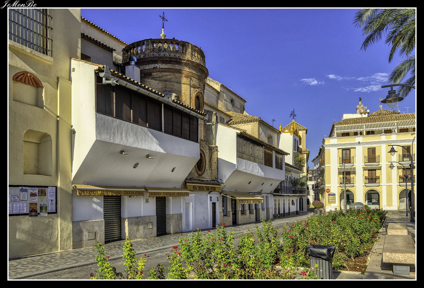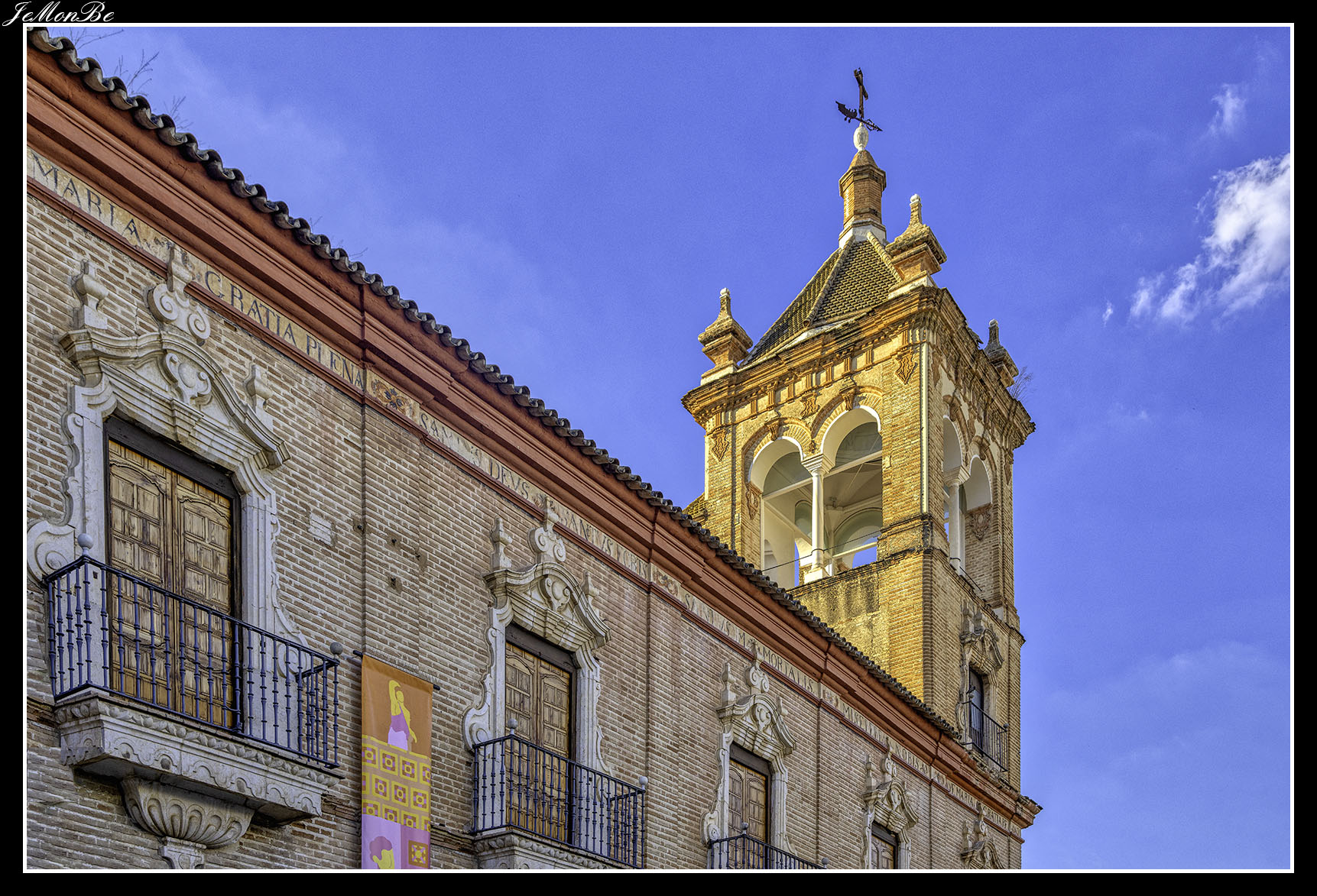 Arquitectónicamente la plaza queda enfatizada por la portada que presenta a ella la iglesia de Santa María, que protege la puerta de caoba y clavos de bronce dando paso a un “cancel” entre mudéjar y barroco, cilíndrico y cubierto con un cuarto de esfera de lacería, de los últimos años del siglo XVIII, que da acceso al interior del templo y por su esbelta torre, una de las más elegantes de cuantas integran el amplio conjunto de torres de iglesias con que cuenta esta localidad.