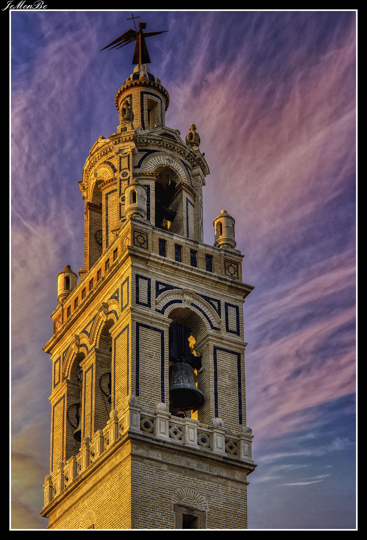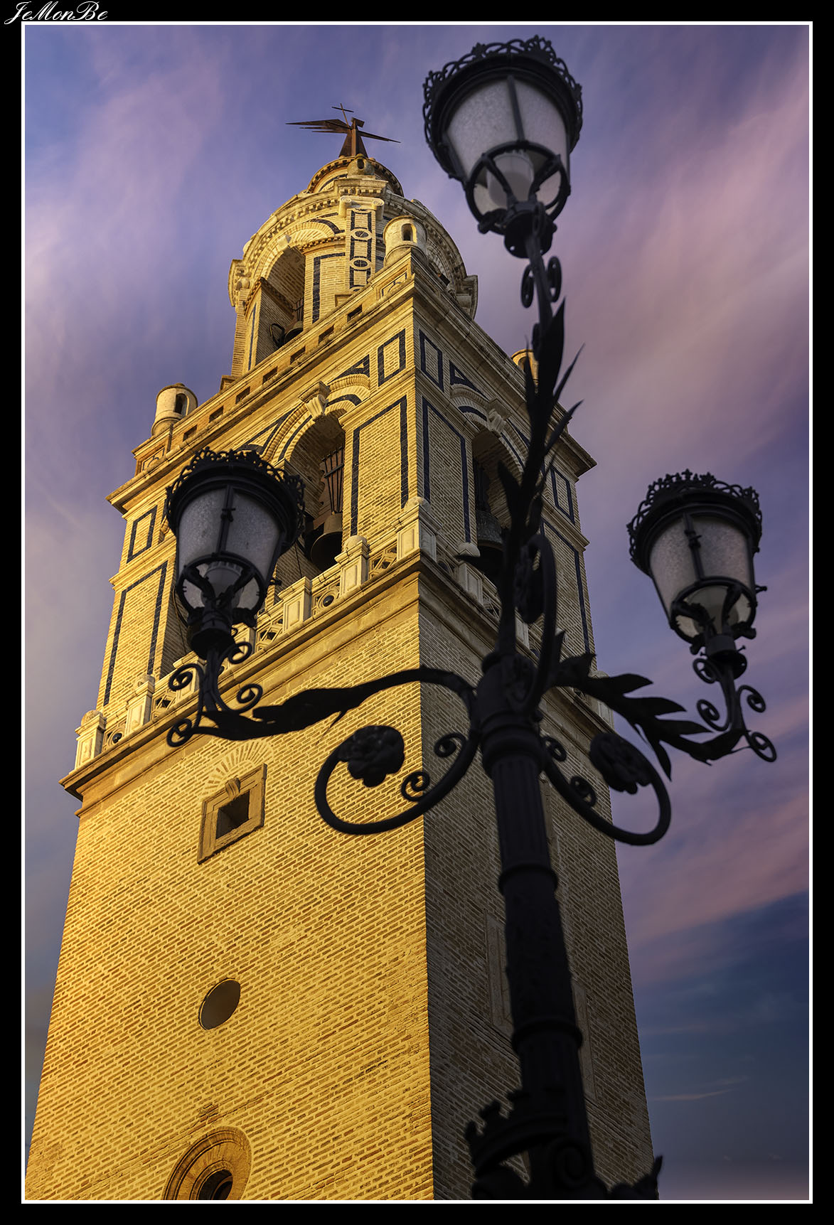 La iglesia parroquial de Nuestra Señora del Carmen, fue un antiguo convento perteneciente al orden de las Carmelitas. La torre se encuentra junto a la portada de la iglesia. Consta de seis cuerpos, en los cuatro inferiores, de planta cuadrada, se repite el mismo esquema, los dos superiores, uno octogonal y otro circular se ornamentan con arcos de medio punto. En el tercer cuerpo aparecen dobles hornacinas que albergan esculturas de mármol de santos de la Orden Carmelita.