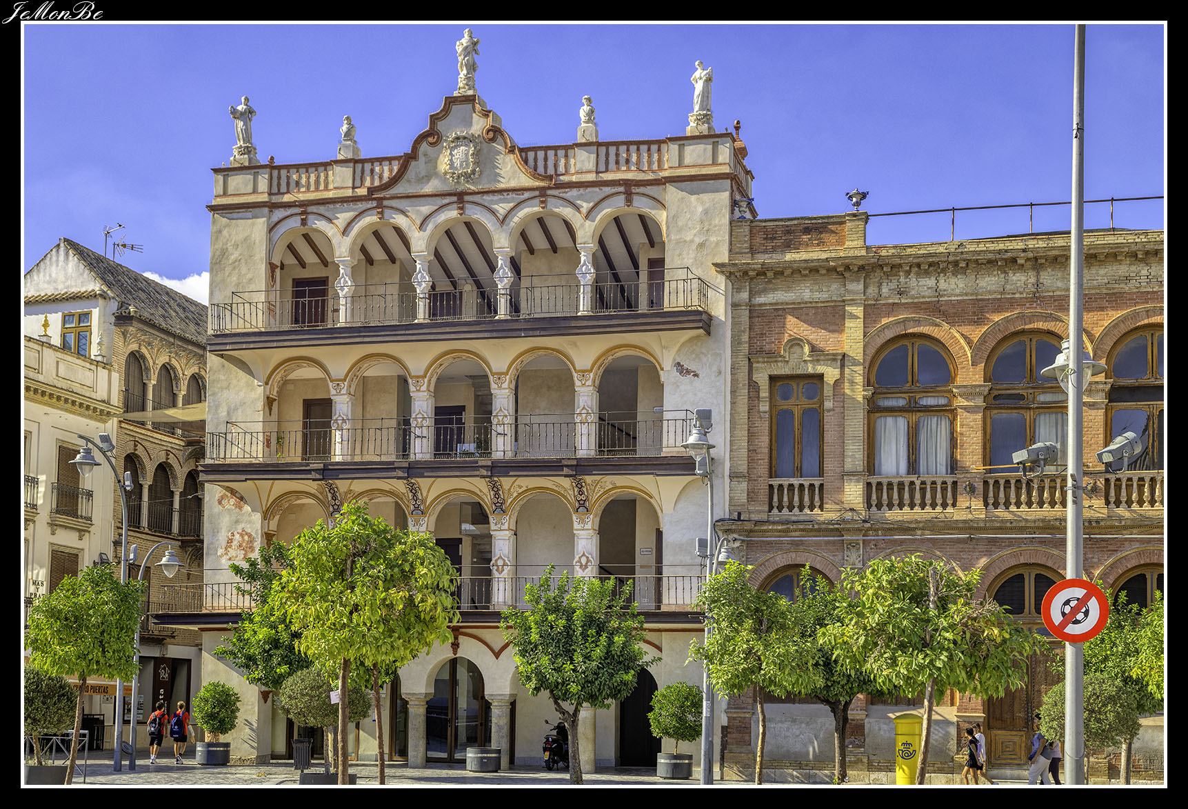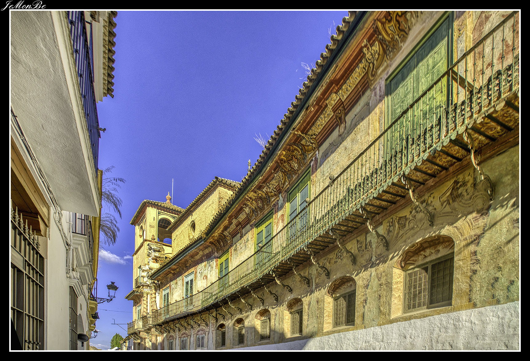 El Palacio de los marqueses de Peñaflor, construido a comienzos del siglo XVIII por el IV marqués de Peñaflor, es conocido como el palacio de los balcones largos, su llamativa fachada curva, (de más de 60 m de longitud) que se ajusta al trazado de la calle, está pintada con trampantojos de elementos arquitectónicos, falsos ventanales y figuras decorando los balcones corridos.