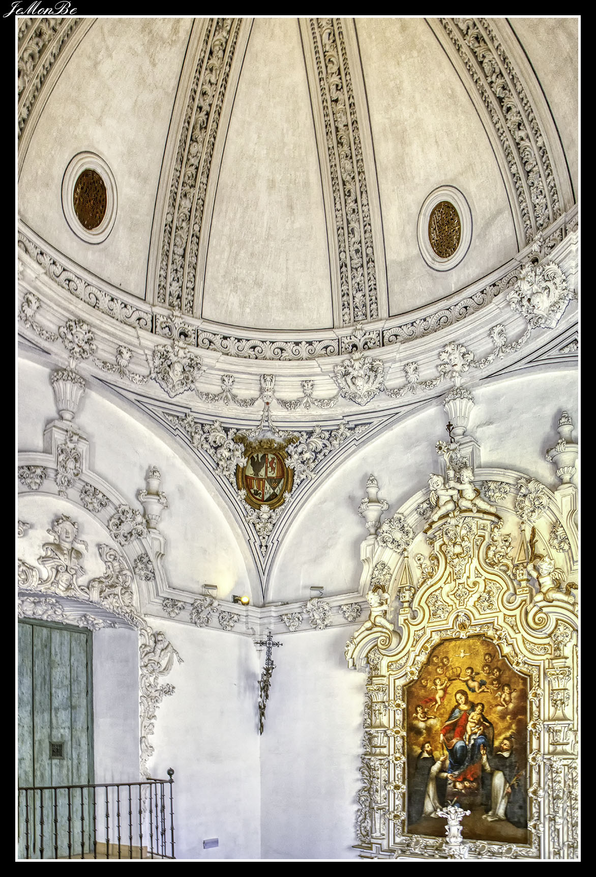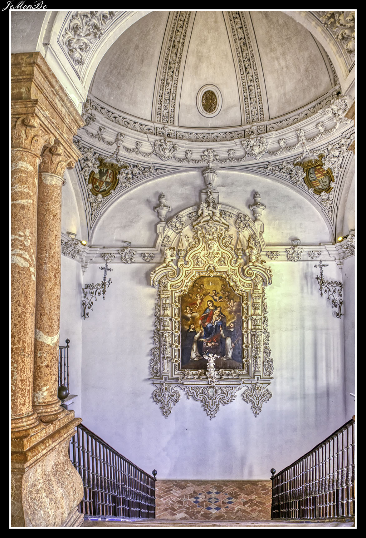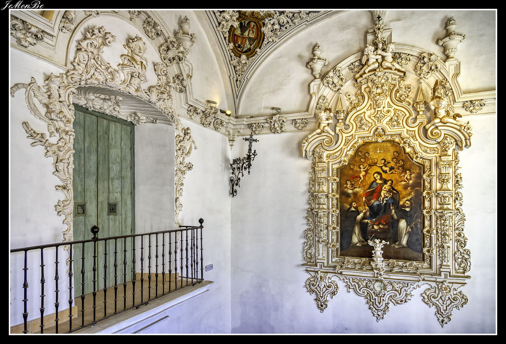 En su interior alberga una soberbia escalera con ocho columnas toscanas y bóveda de media naranja ricamente decorada con yeserías. En su testero principal se halla una pintura de la Virgen del Rosario.