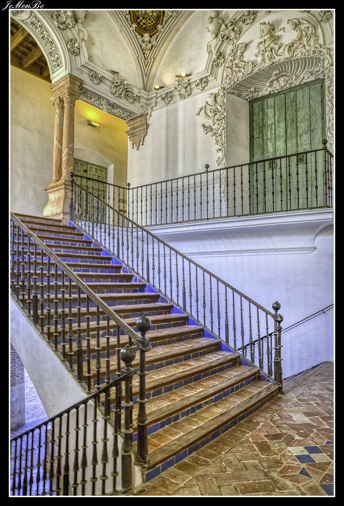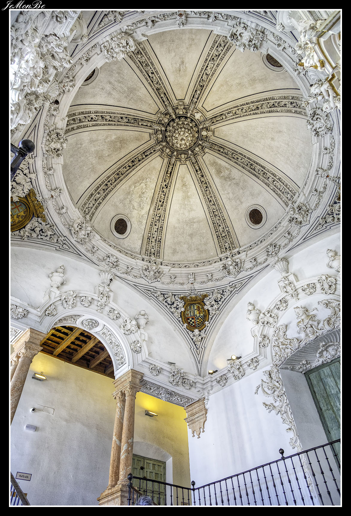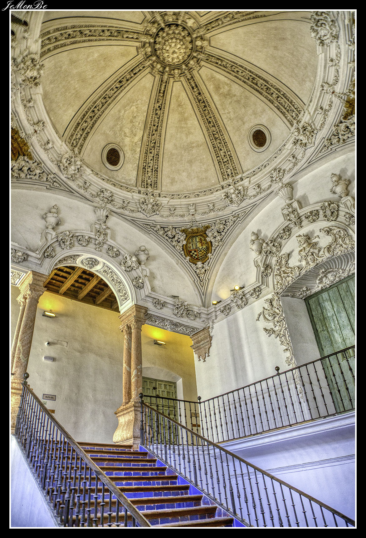 En su interior alberga una soberbia escalera con ocho columnas toscanas y bóveda de media naranja ricamente decorada con yeserías. En su testero principal se halla una pintura de la Virgen del Rosario.