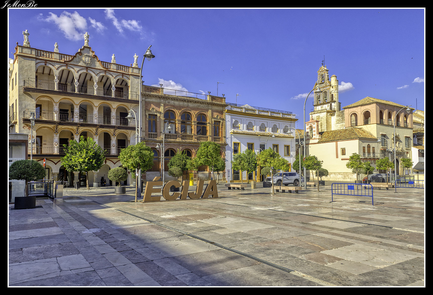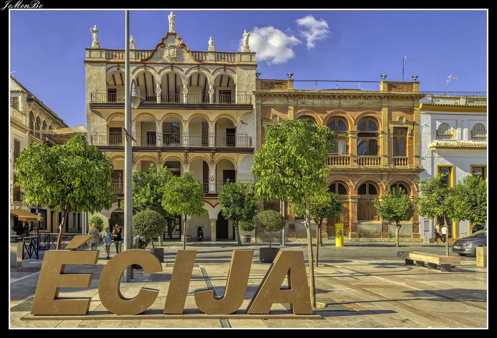 La Plaza de España, conocida popularmente como «El Salón», es una amplia plaza rectangular, punto de encuentro y celebración para los ecijanos. Rodeada de edificios históricos como el Ayuntamiento, la espadaña franciscana, con su profusa decoración de azulejos, el estanque romano y otros edificios con solera y elegancia.