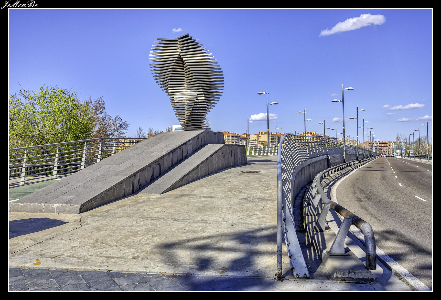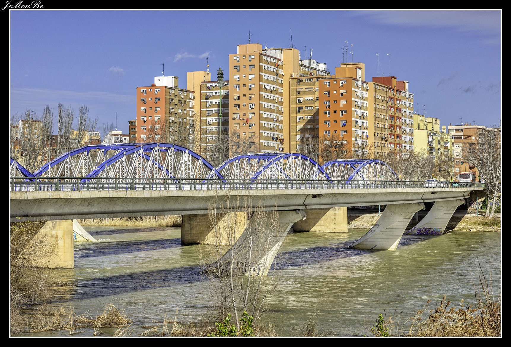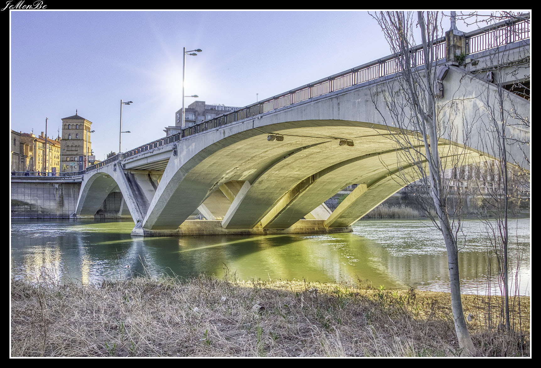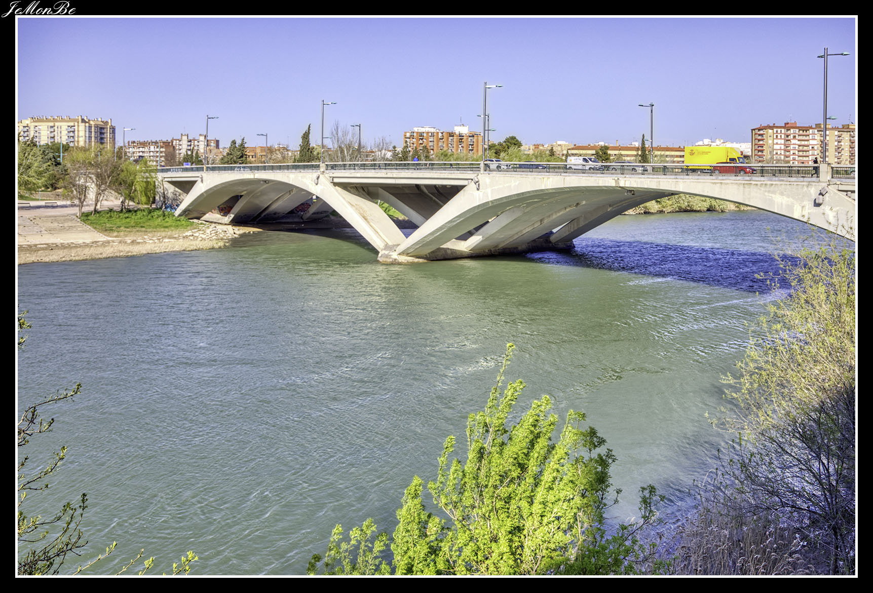 8. El puente de la Unión o puente de las Fuentes, conecta los barrios de Las Fuentes y La Jota. Fue diseñado para prolongar hacia el norte el Camino de las Torres a través del río hasta la calle del Marqués de la Cadena. Siendo el primero en Zaragoza que no se apoyó en el cauce del río.
