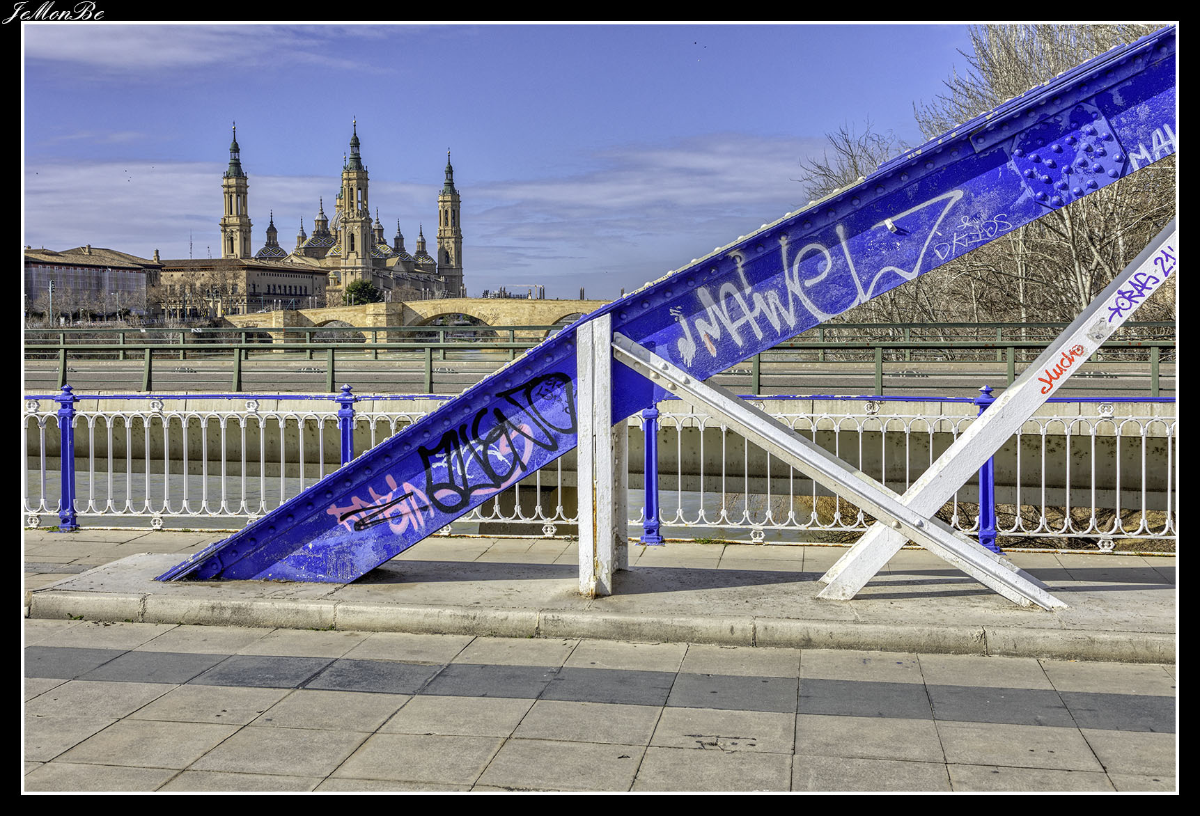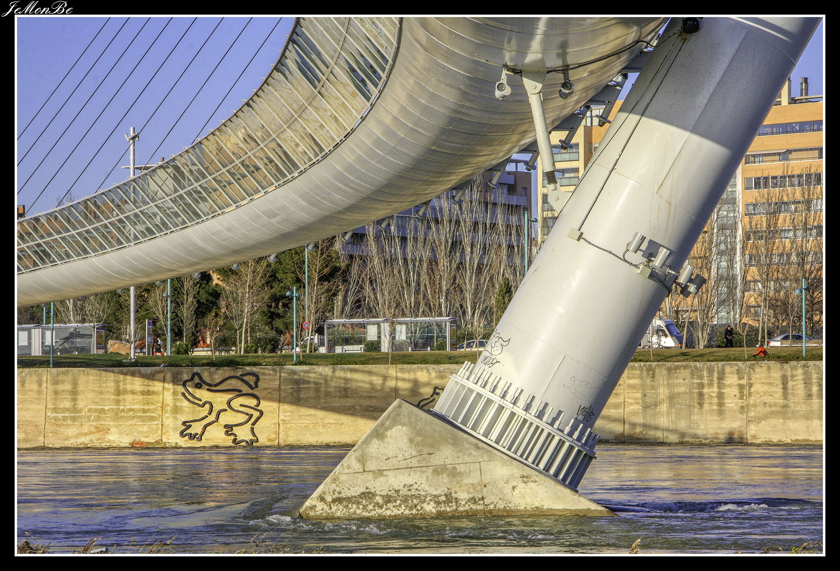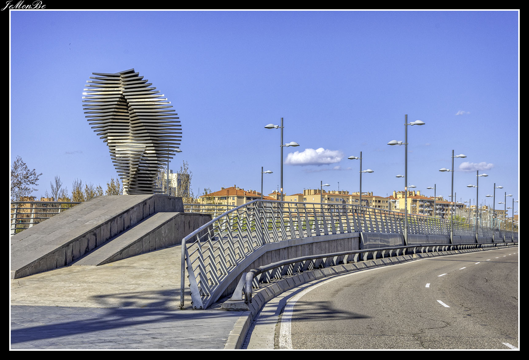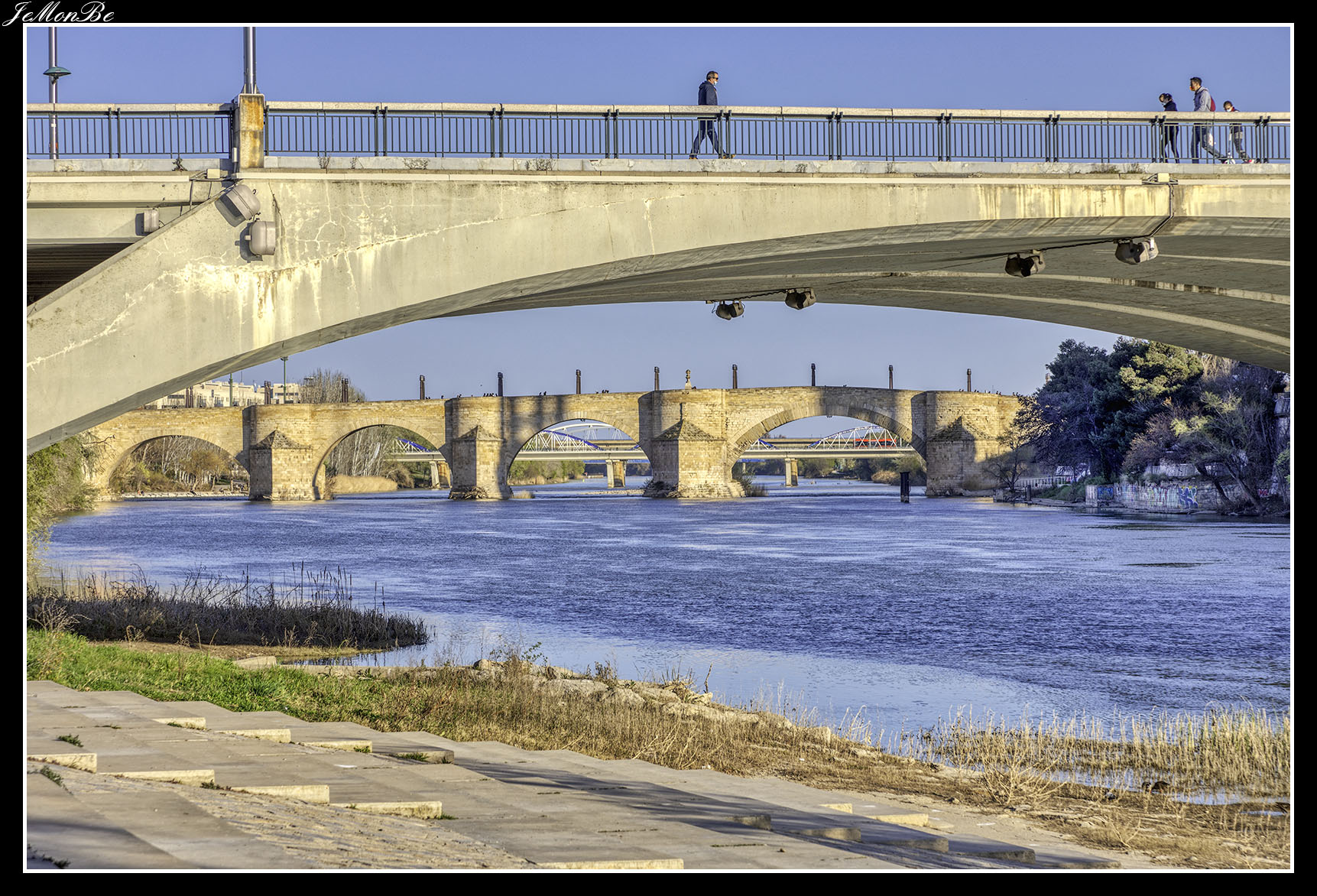 8. El puente de la Unión o puente de las Fuentes, conecta los barrios de Las Fuentes y La Jota. Fue diseñado para prolongar hacia el norte el Camino de las Torres a través del río hasta la calle del Marqués de la Cadena. Siendo el primero en Zaragoza que no se apoyó en el cauce del río.