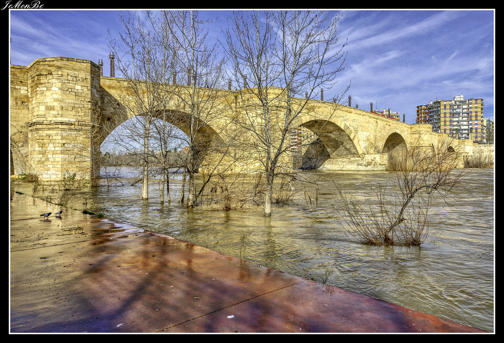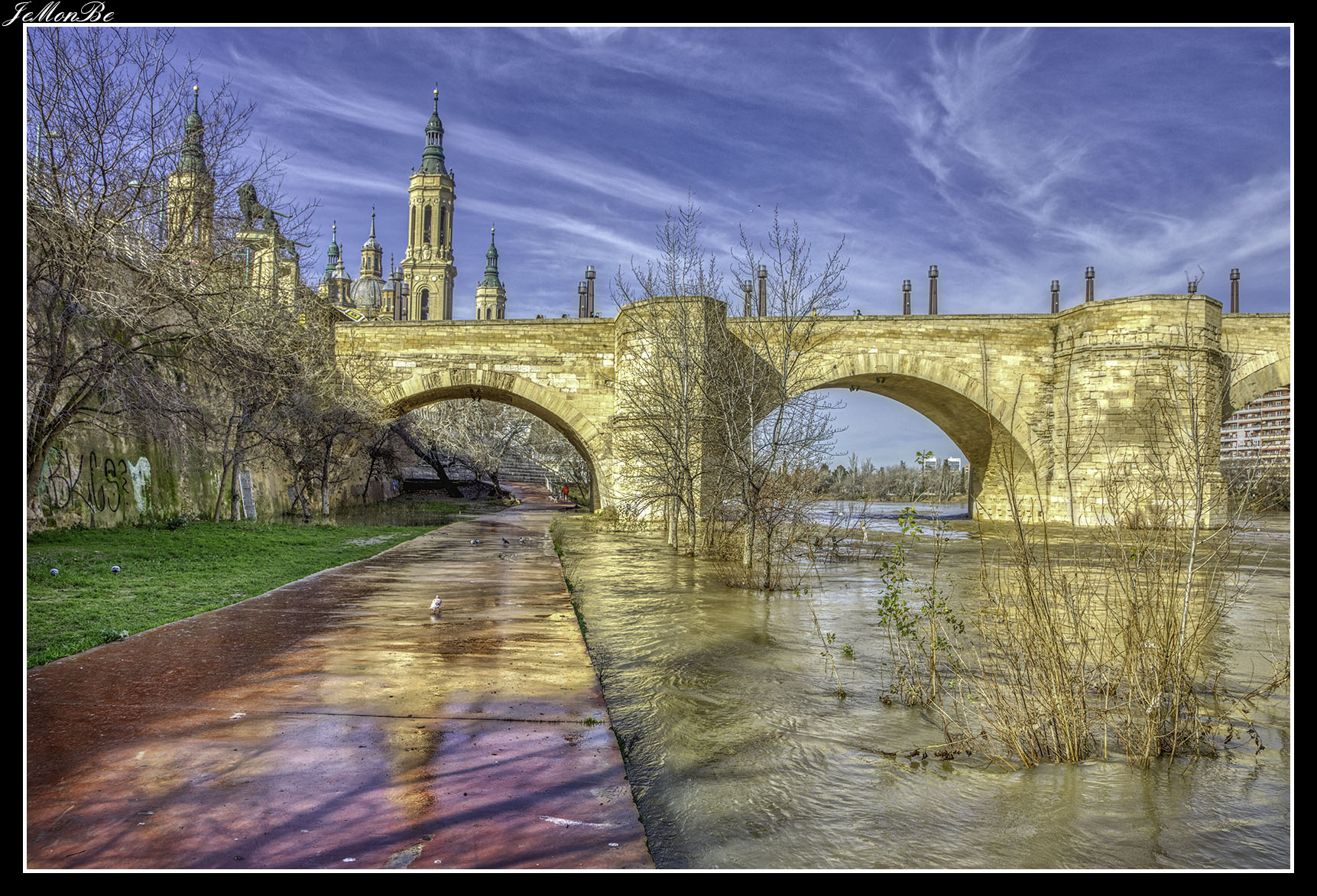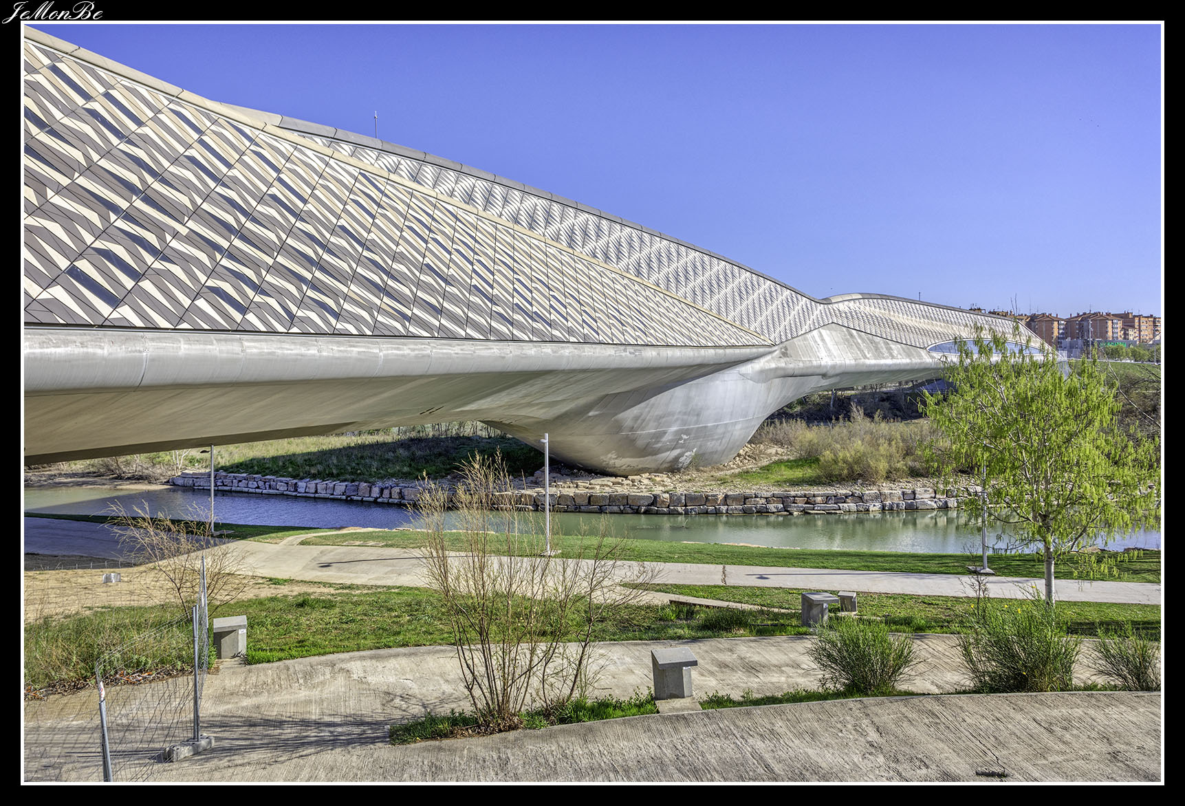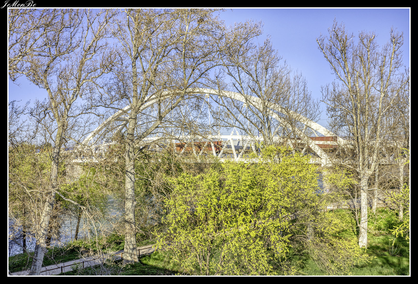 8. El puente de la Unión o puente de las Fuentes, conecta los barrios de Las Fuentes y La Jota. Fue diseñado para prolongar hacia el norte el Camino de las Torres a través del río hasta la calle del Marqués de la Cadena. Siendo el primero en Zaragoza que no se apoyó en el cauce del río.