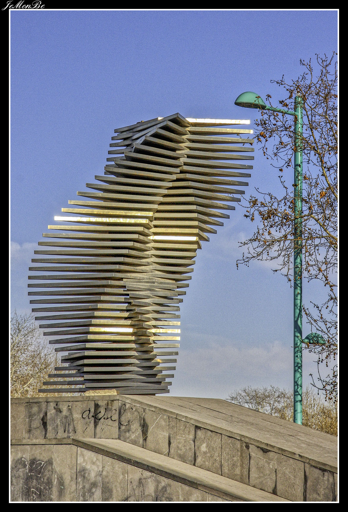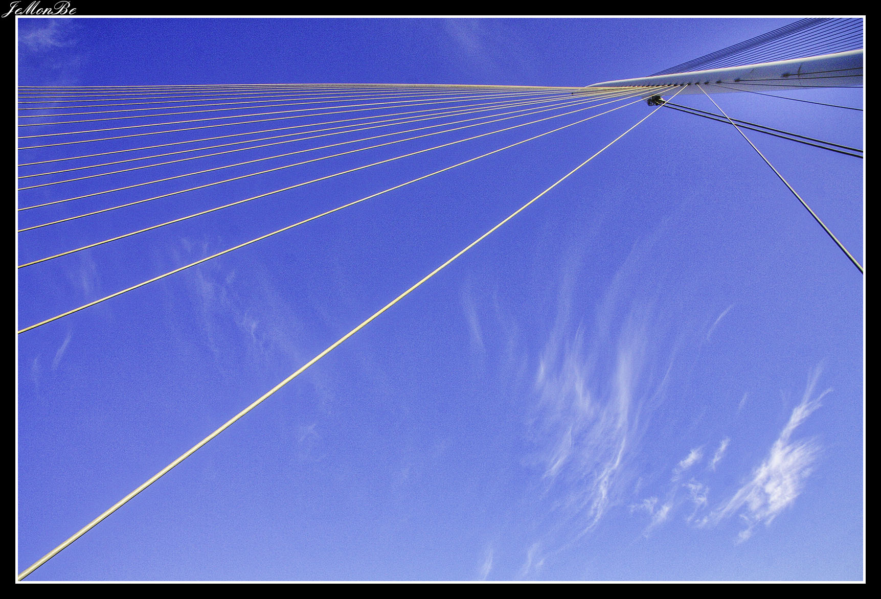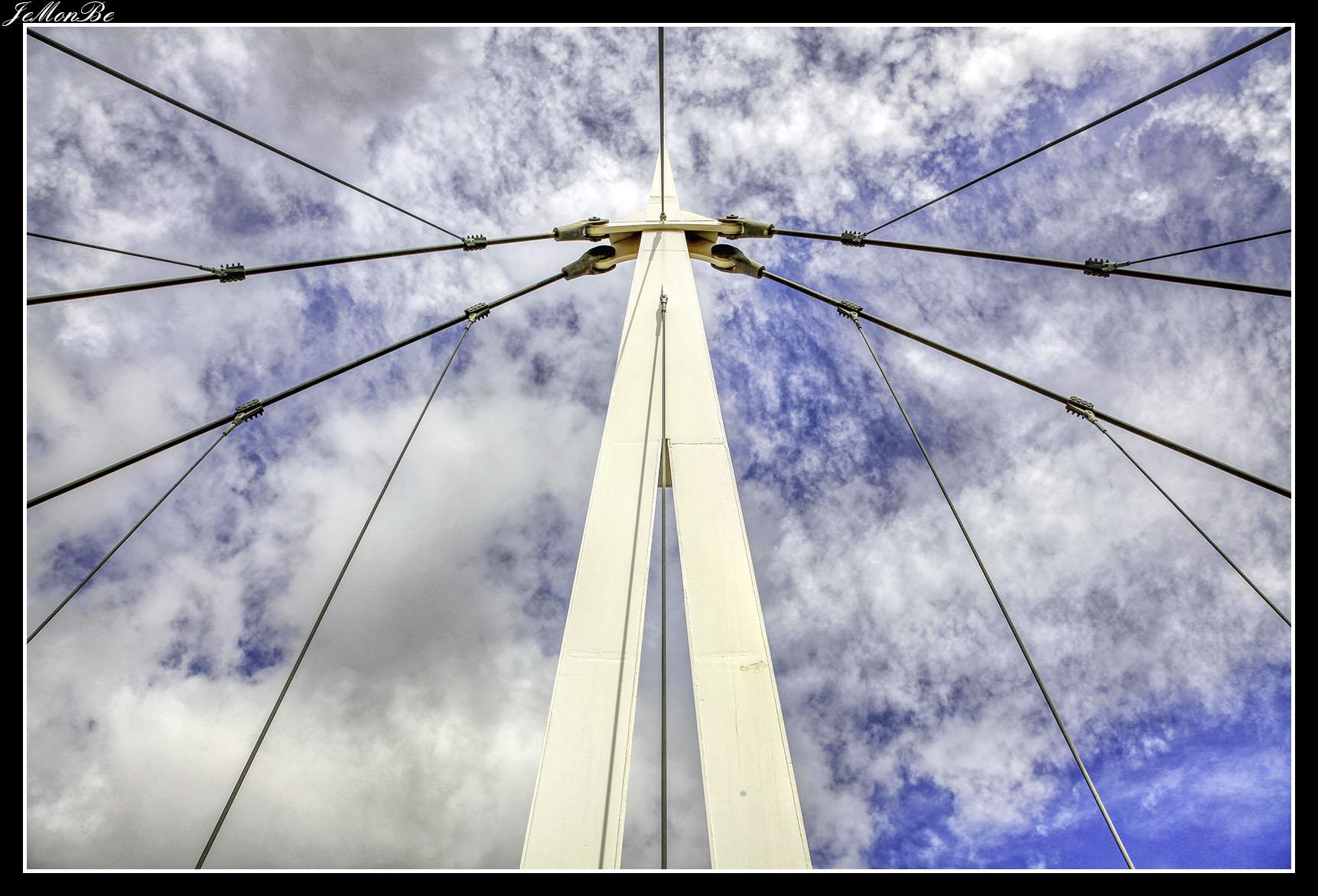 3. La pasarela del Voluntariado (del 2008), conocida popularmente como pasarela del pincho, es una pasarela peatonal que conecta los barrios zaragozanos de La Almozara y rey Fernando. El tablero tiene 277 metros de longitud, de los que 230 metros son en tramo curvo, atirantado desde un mástil central de 90 m. de longitud, 78,3 m. de altura respecto a su empotramiento en el cimiento y 30º de inclinación respecto a la vertical. La sección del mástil, es circular de radio variable, desde 1,1 m. en la base hasta 0,9 m. a 79,5 m desde este punto hasta la parte superior, el diámetro disminuye hasta hacerse nulo.