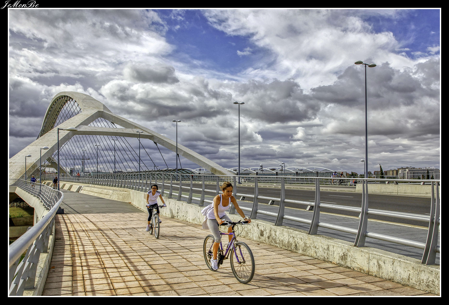 1. El puente del Tercer Milenio es un puente arco atirantado por el tablero, con una estructura de arco de 216 metros de luz, un tablero de 270 metros de longitud y 43 de ancho. Está constituido por 6 carriles de circulación de automóviles, 2 carriles para bicicletas y 2 paseos peatonales acristalados. Desde el arco y para soportar el tablero se distribuyen dos familias de 32 péndolas o cables (64 péndolas en total).