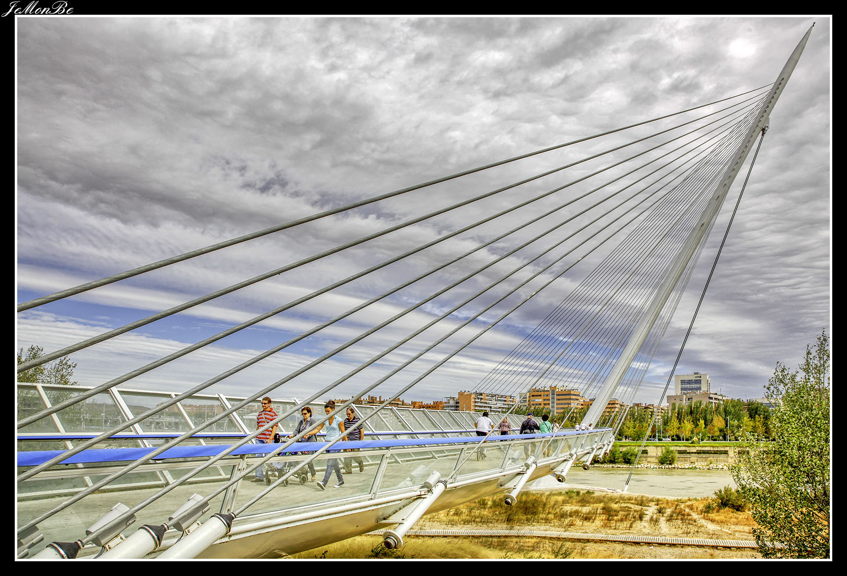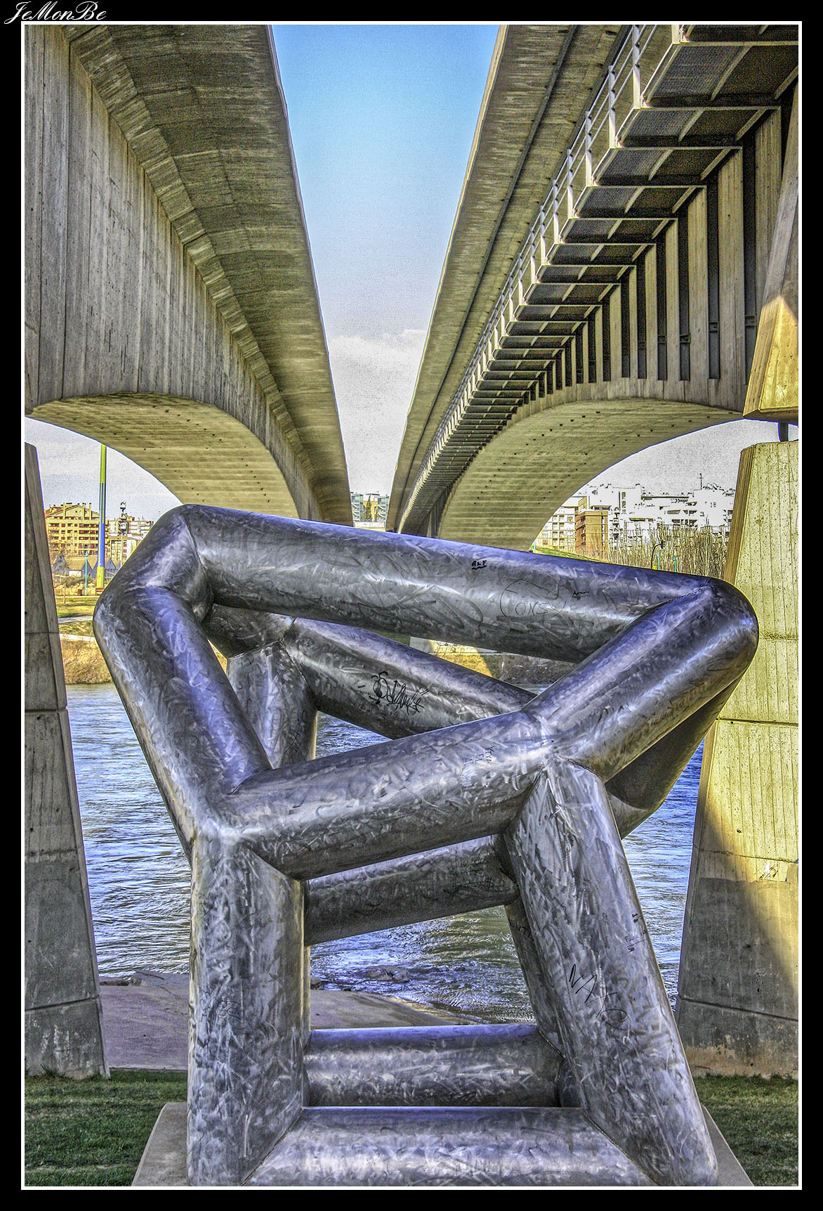 4. El puente de la Almozara es un puente sobre el río Ebro en la ciudad de Zaragoza. Discurre entre la plaza de Europa, en el barrio de la Almozara, y la calle Valle de Broto del barrio rey Fernando.