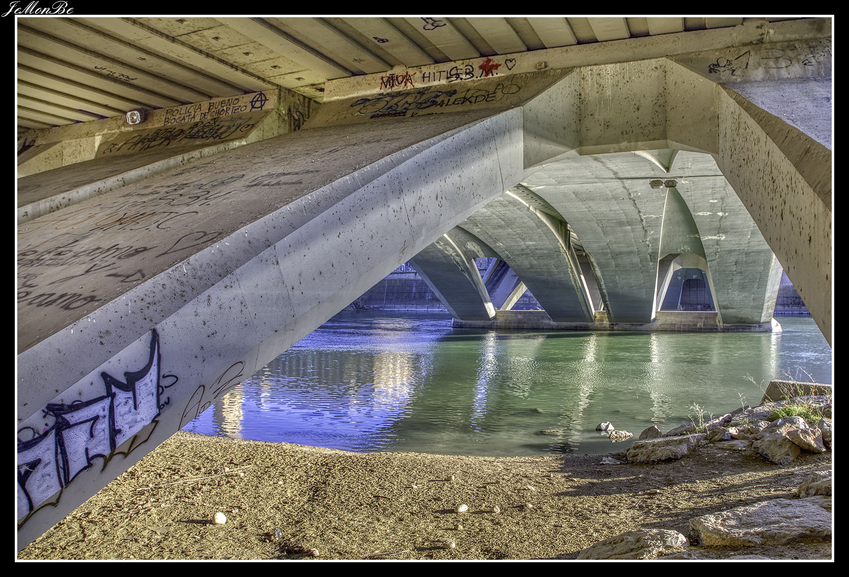 10. El puente Manuel Giménez Abad (asesinado por ETA) es un puente sobre el río Ebro en Zaragoza. Diseñado por Javier Manterola, en forma de arco a lo largo de toda su longitud supuso el cierre de la Z-30, cinturón de circunvalación de la ciudad, por el Este.