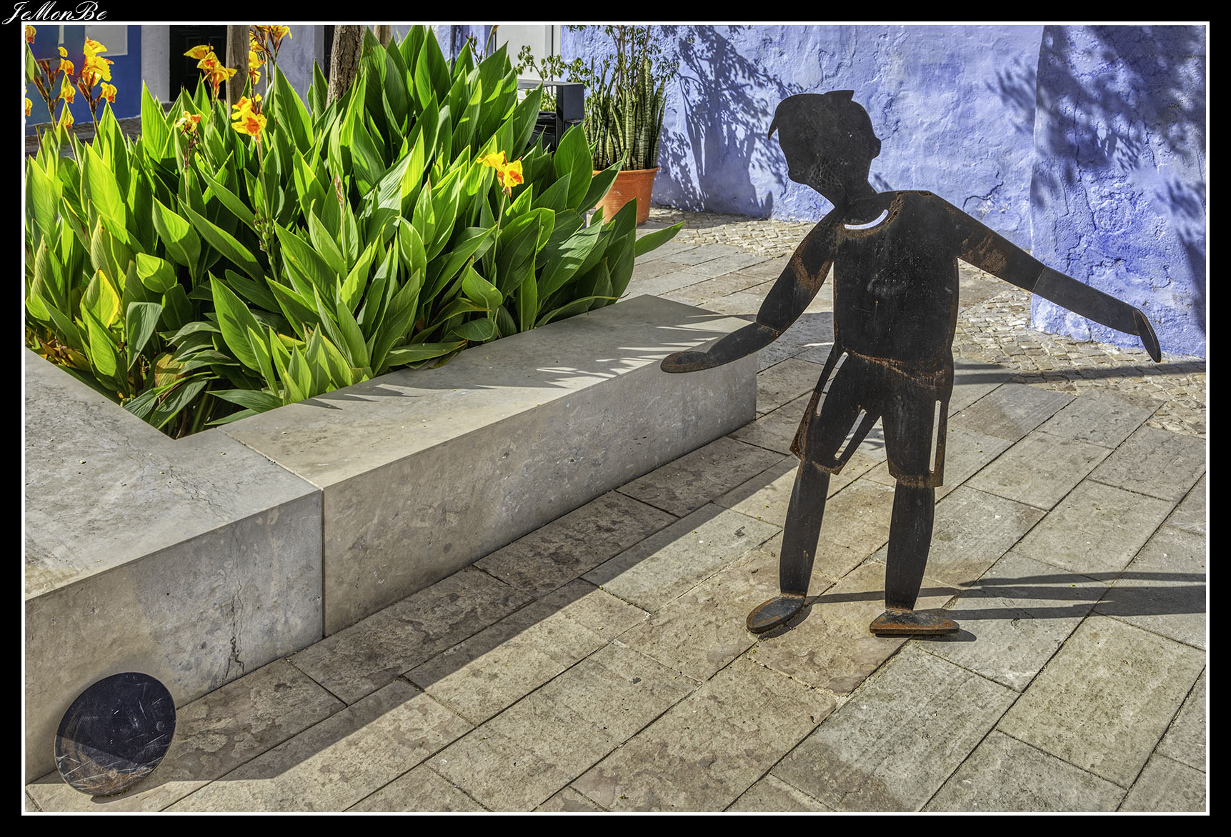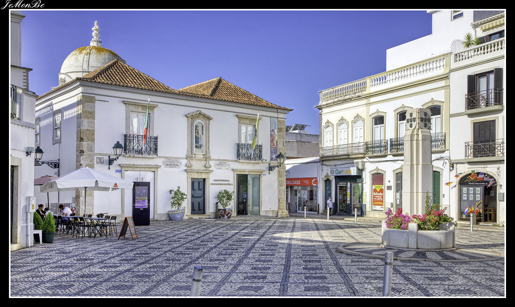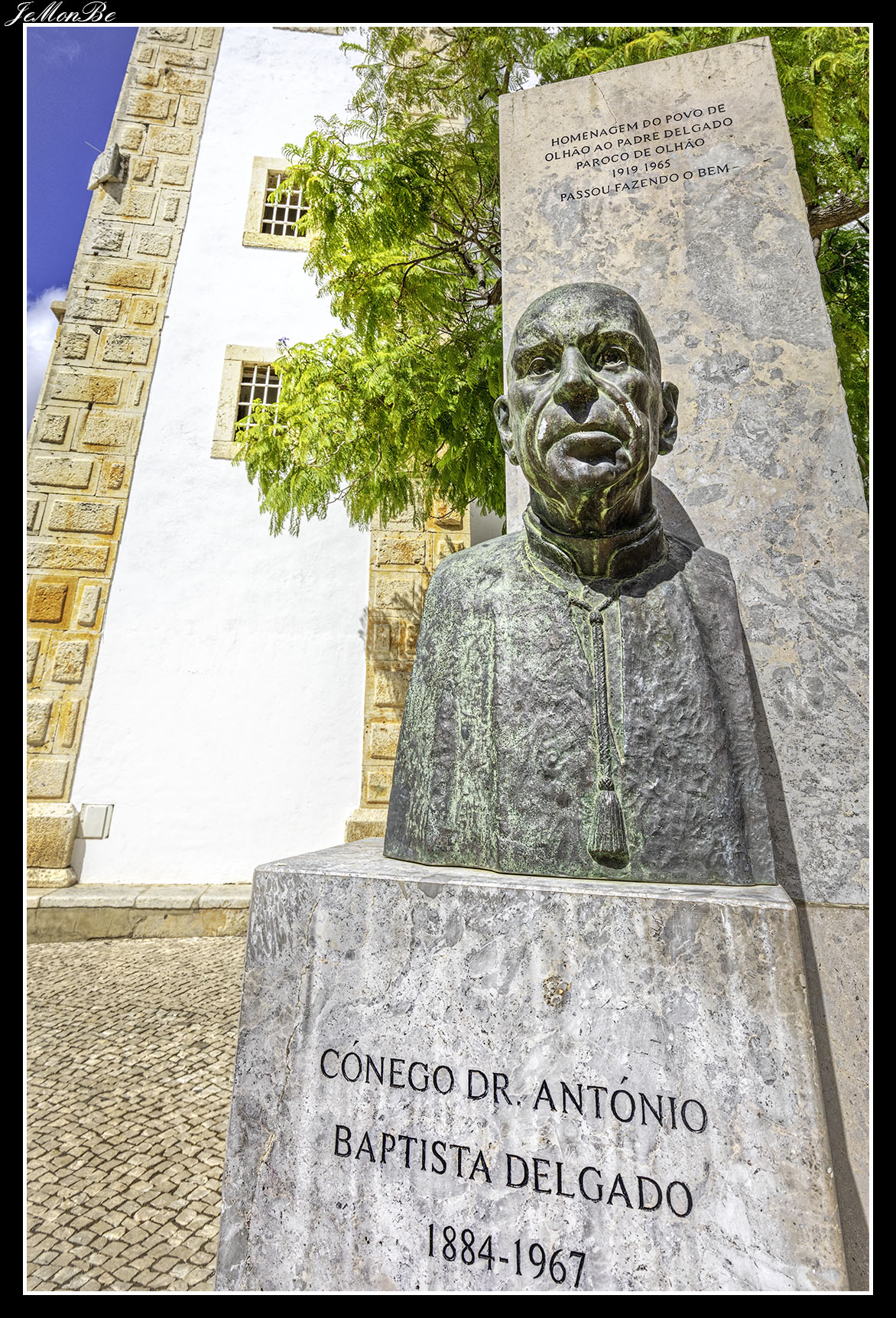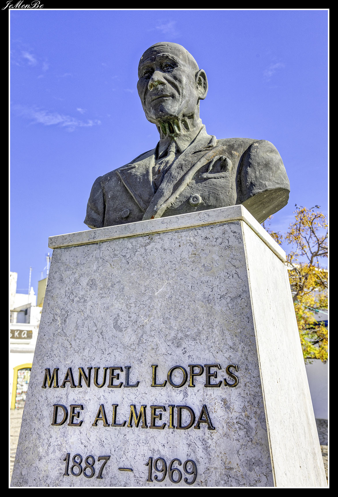 Antes de seguir por el paseo marítimo nos adentramos en el interior por la calle Doctor Alberto de Iria (Puesto de la policía) para encontrarnos en la plaza Joao de Deus, con Manuel Lopes de Almeida, auxiliar de farmacia, nacido en Viseu en 1887 y fallecido en Olhão en 1969.