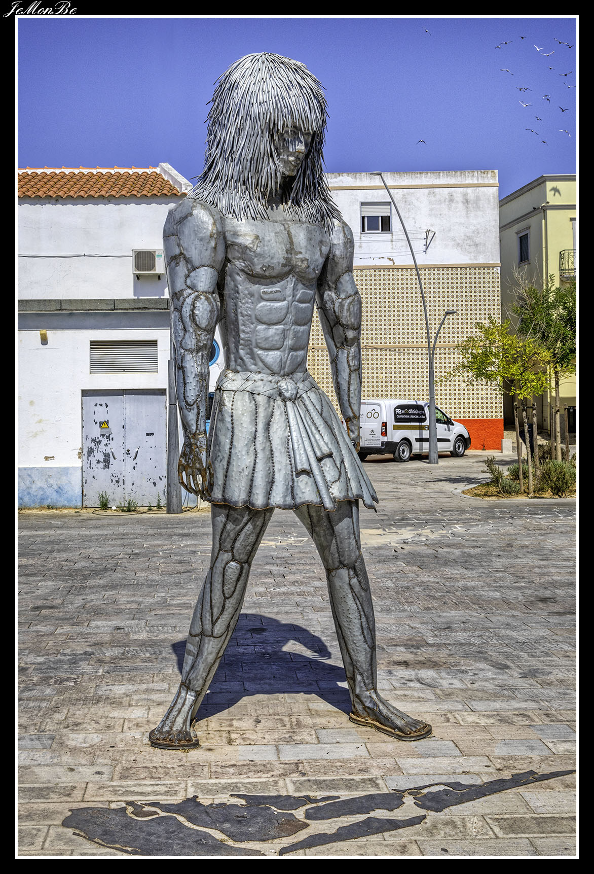 La iniciaremos por el poniente en el Largo João da Carma, una plaza escondida tras los cocederos de mariscos que dan a la Avenida 5 de Outubro, nos sorprende con la estatua gigante de Arraúl, que tiene mucho que ver con el origen de Olhão.