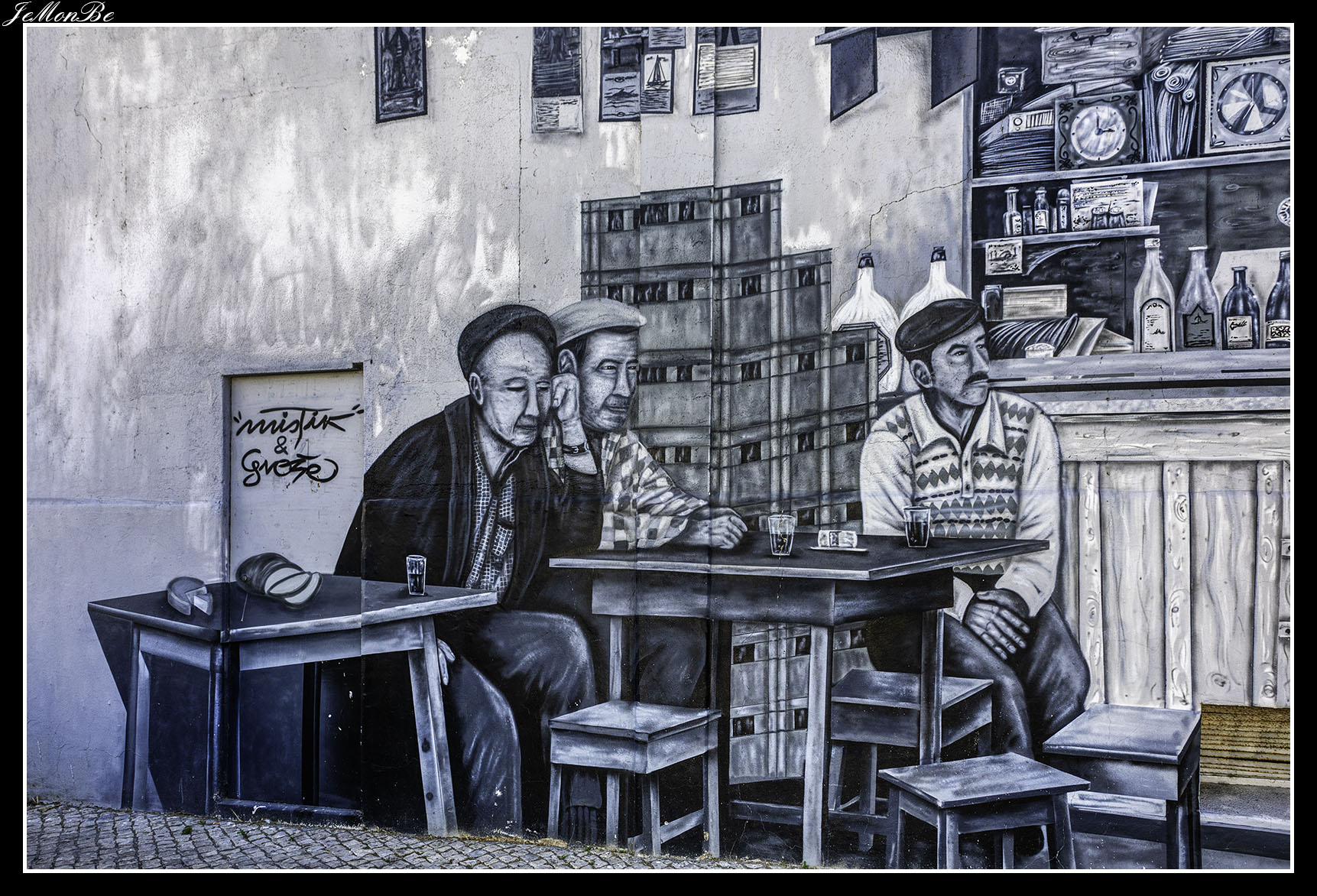 Por la rua Major Caldas, Sete Cotovelos y António Lopes llegamos a la zona de las antiguas fábricas conserveras, adornadas hoy con espectaculares grafitis que recuerdan las labores de estas naves. Este ha sido el lugar elegido para representar la Lenda do Marim.